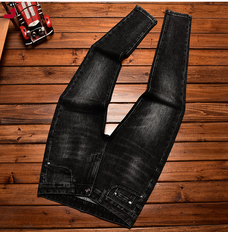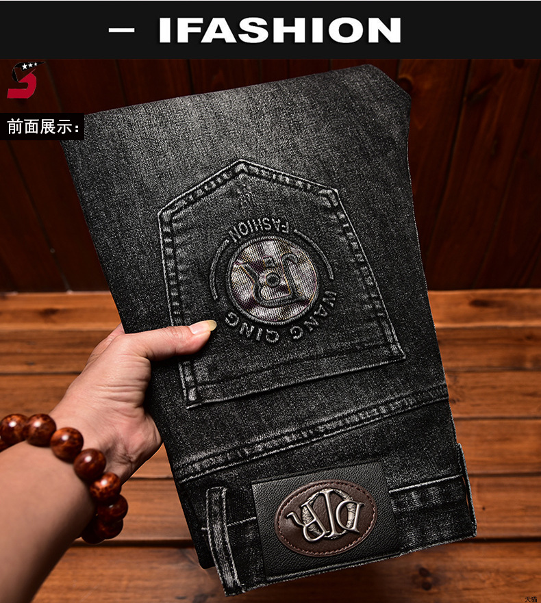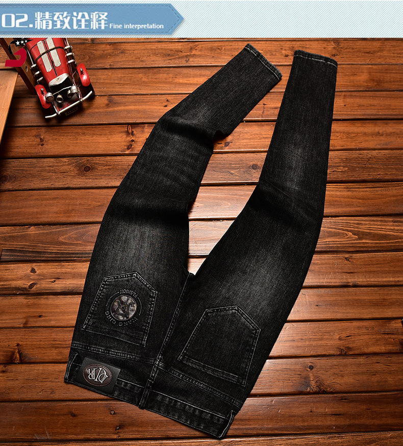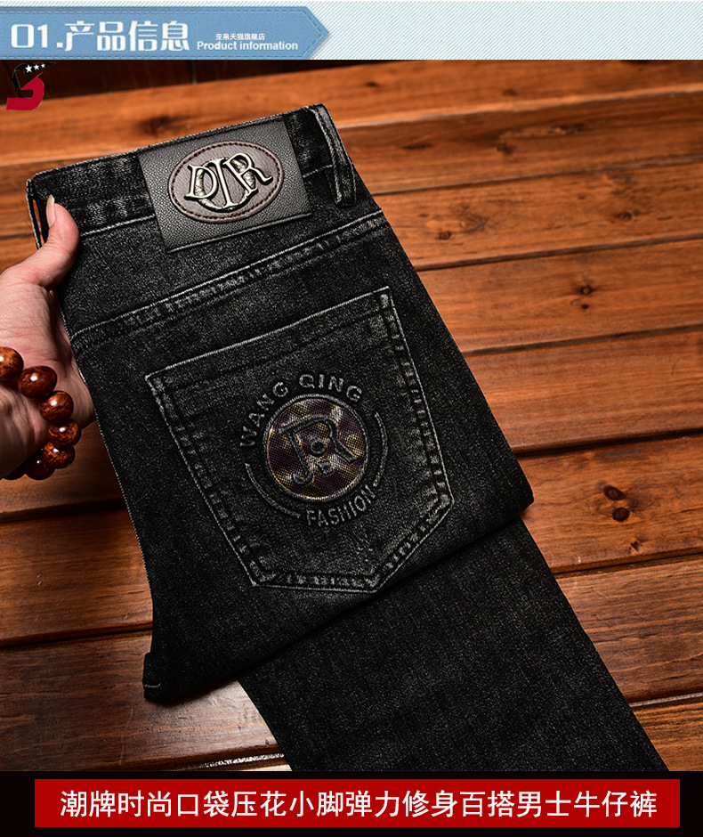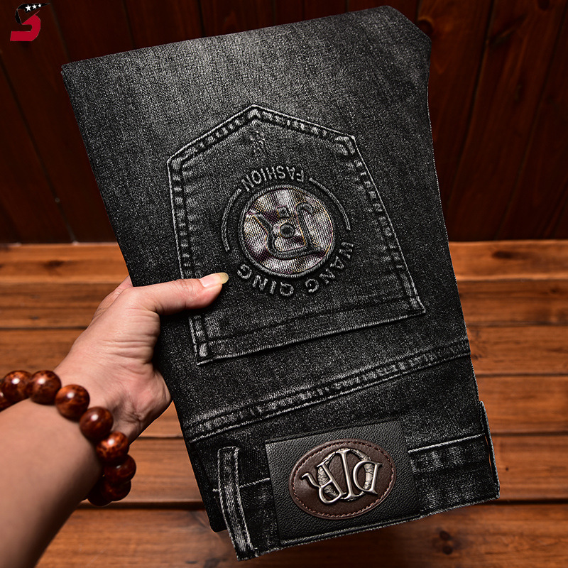 하이 엔드 트렌디 브랜드 라이트 럭셔리 청바지 남성용 포켓 양각 인쇄 슬림 핏 작은 발 스트레치 캐주얼 가을 겨울 바지스토어 가기