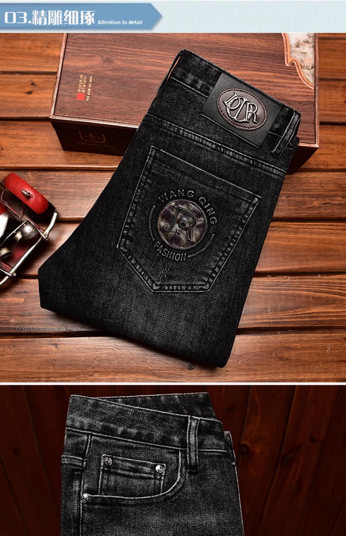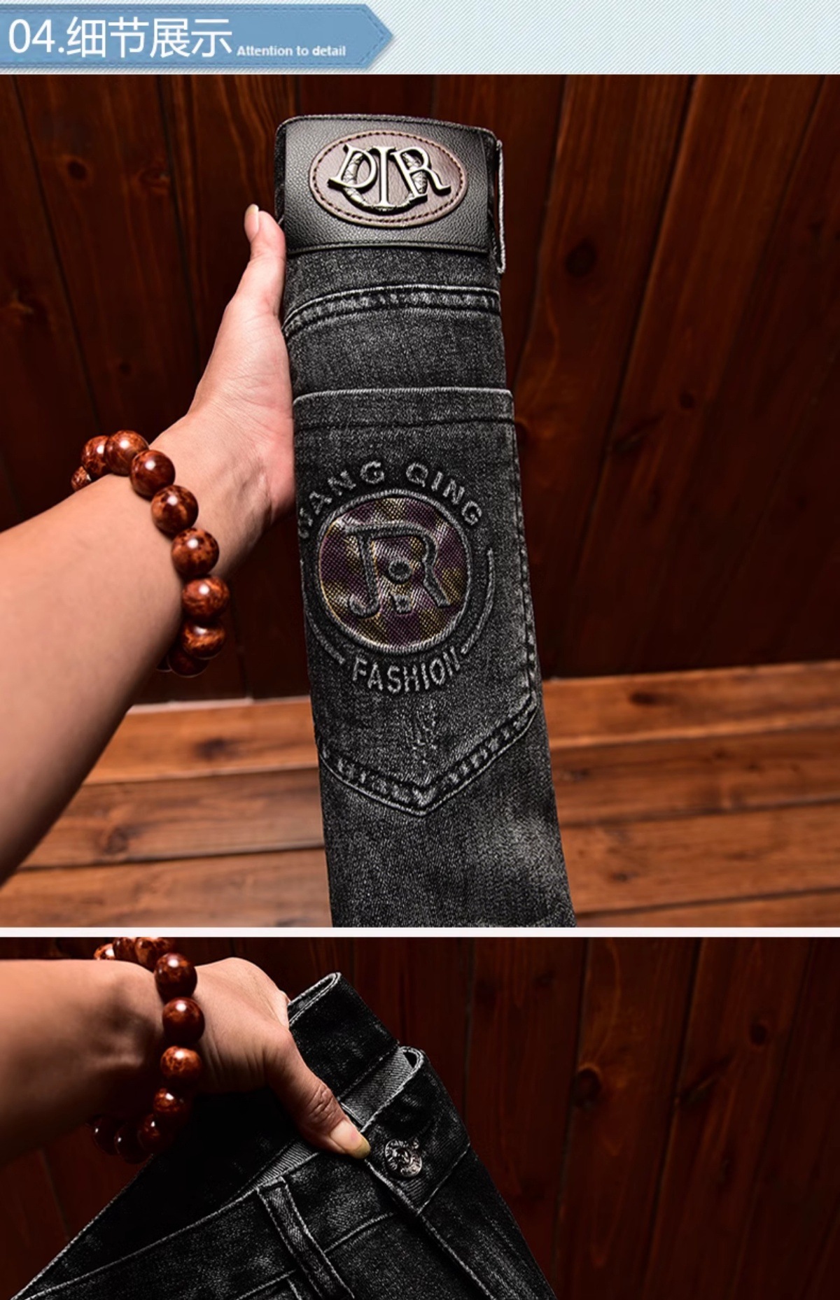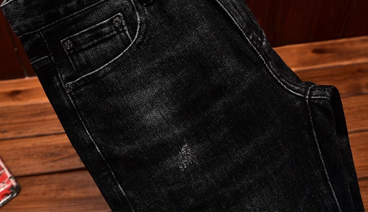 하이 엔드 트렌디 브랜드 라이트 럭셔리 청바지 남성용 포켓 양각 인쇄 슬림 핏 작은 발 스트레치 캐주얼 가을 겨울 바지스토어 가기