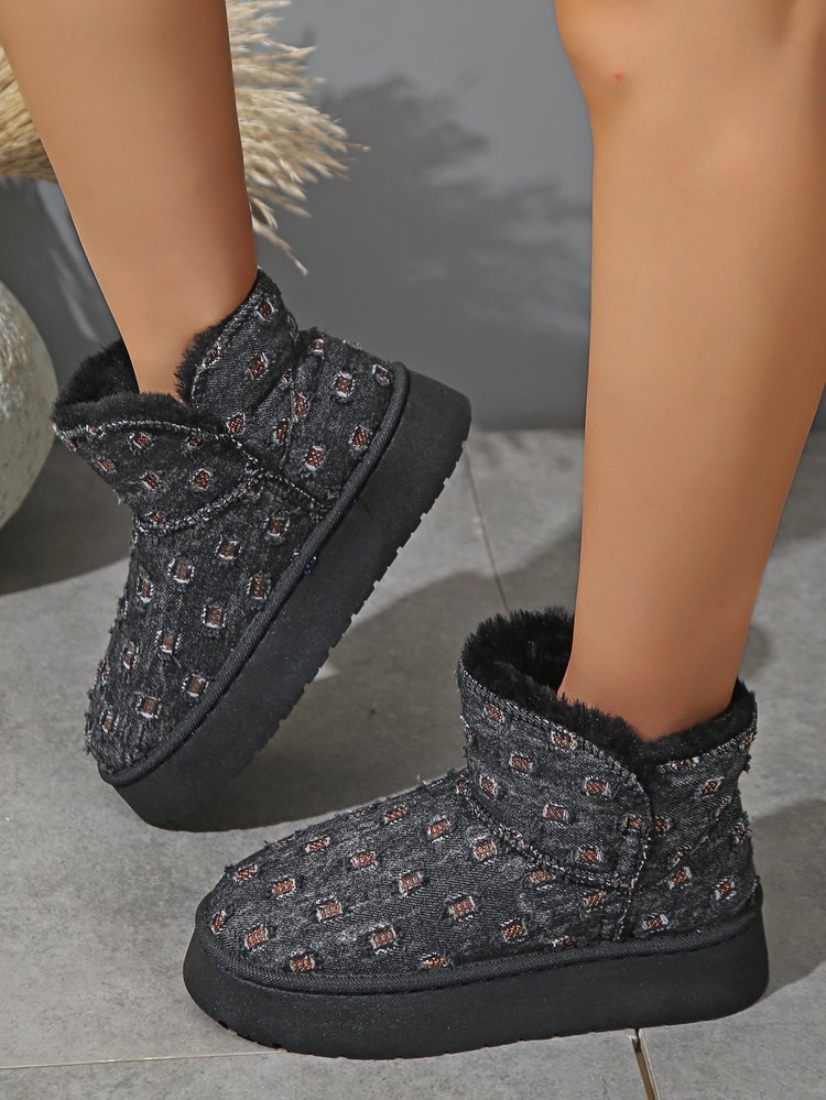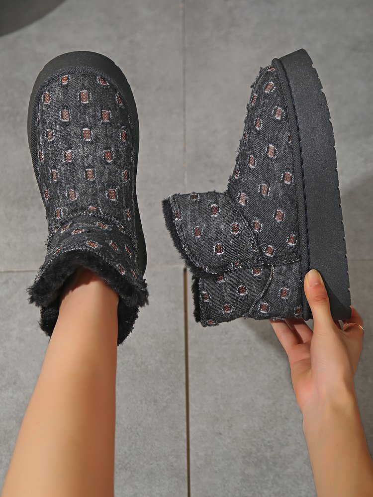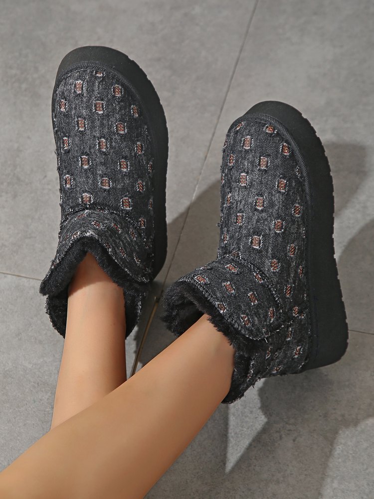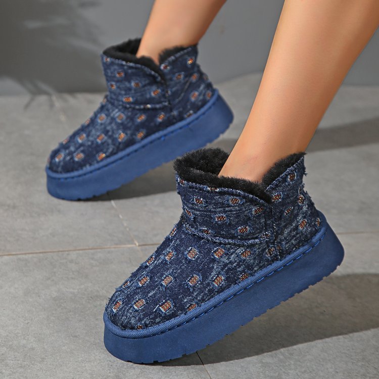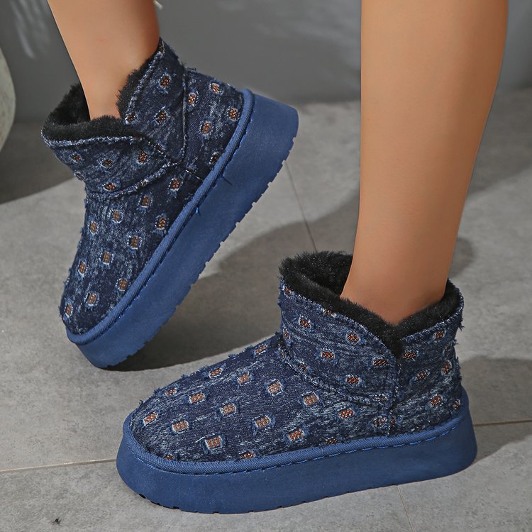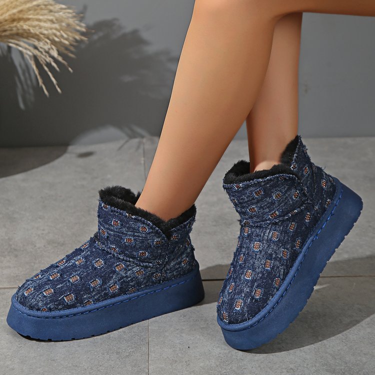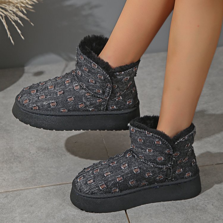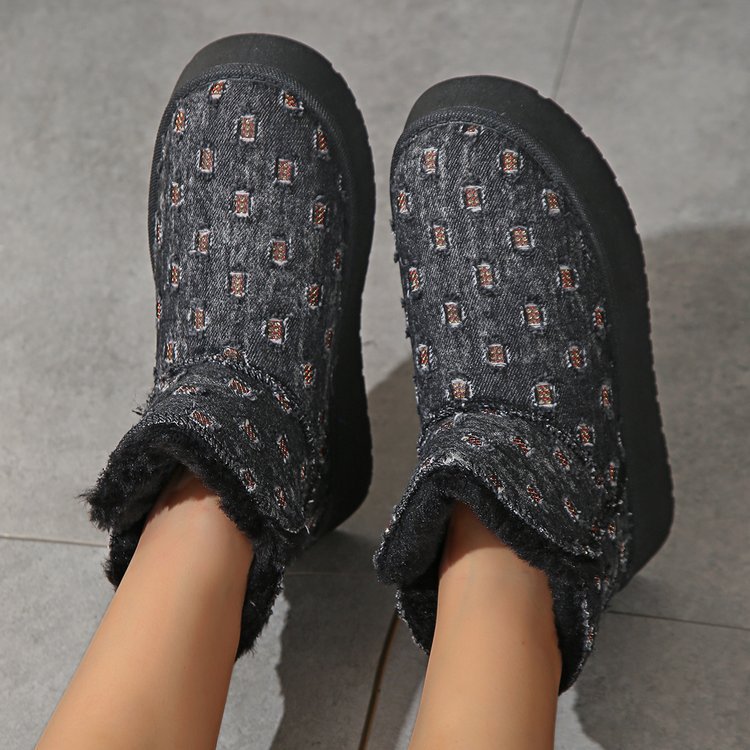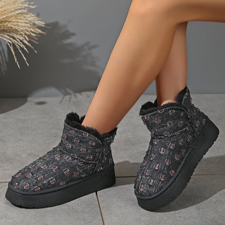 여자의 두꺼운 밑창 스노우 부츠 2024 새로운 겨울 기모 두꺼운 따뜻한 짧은면 신발스토어 가기