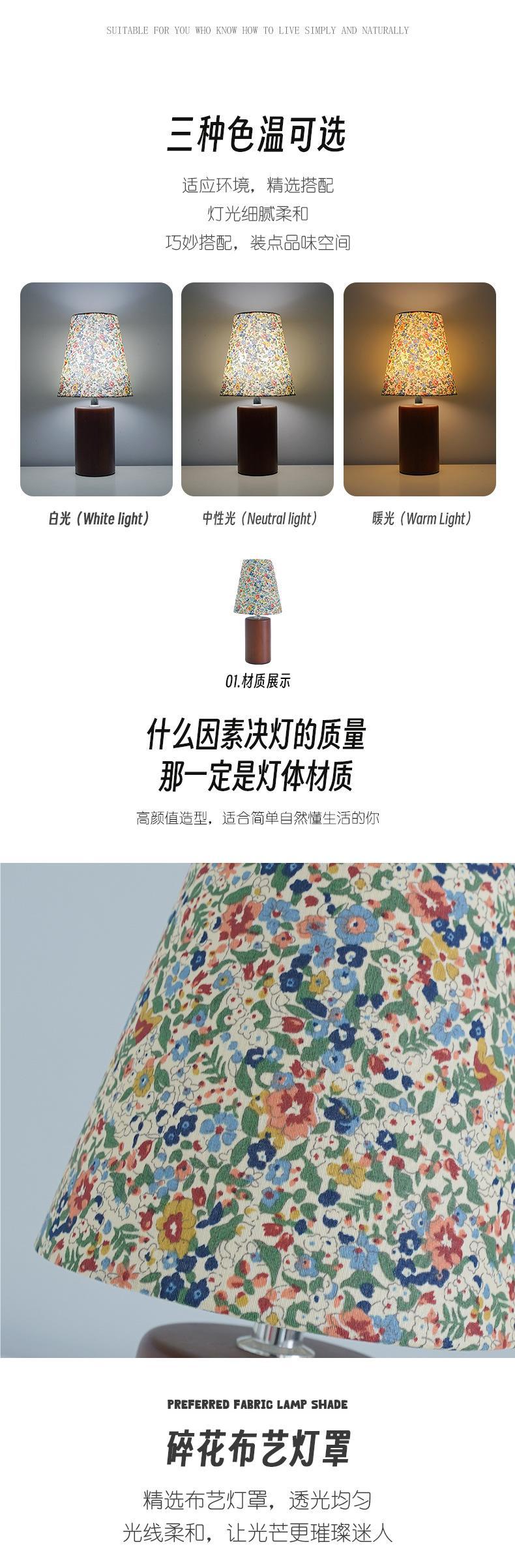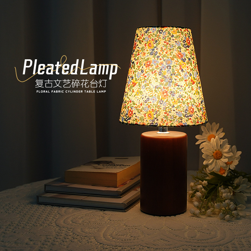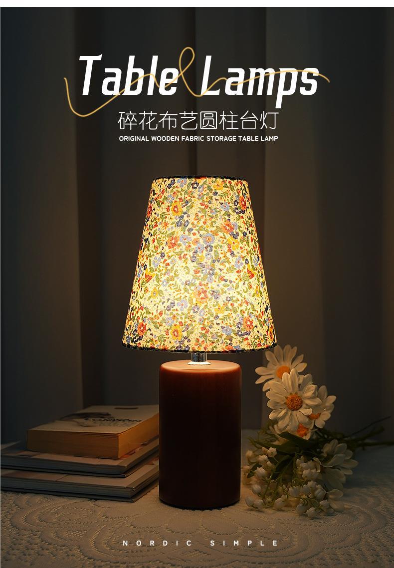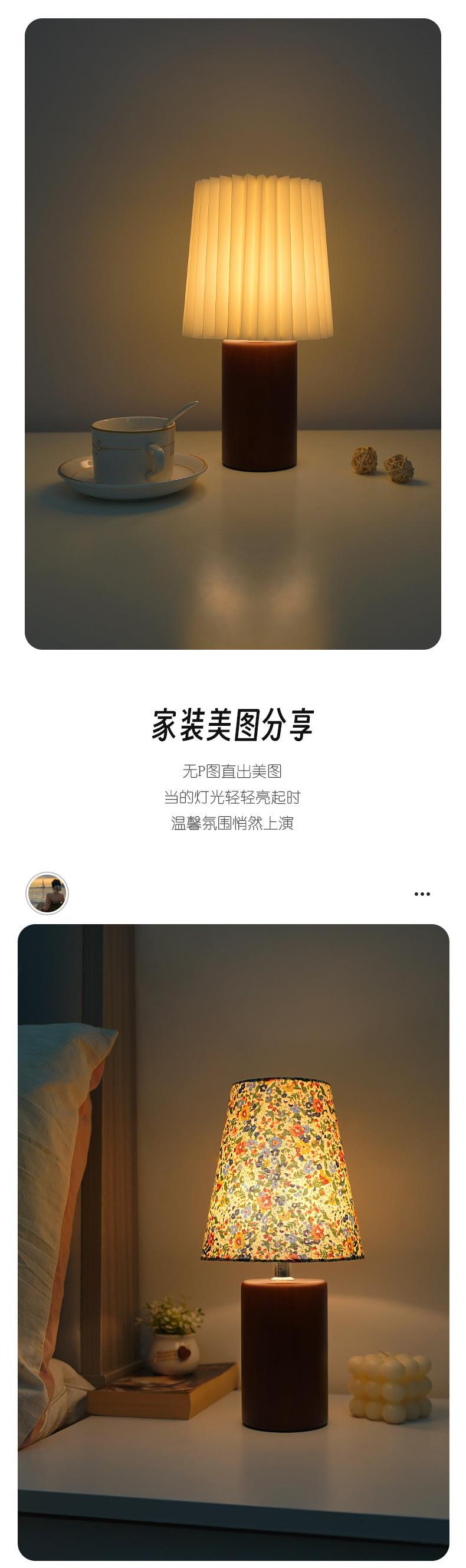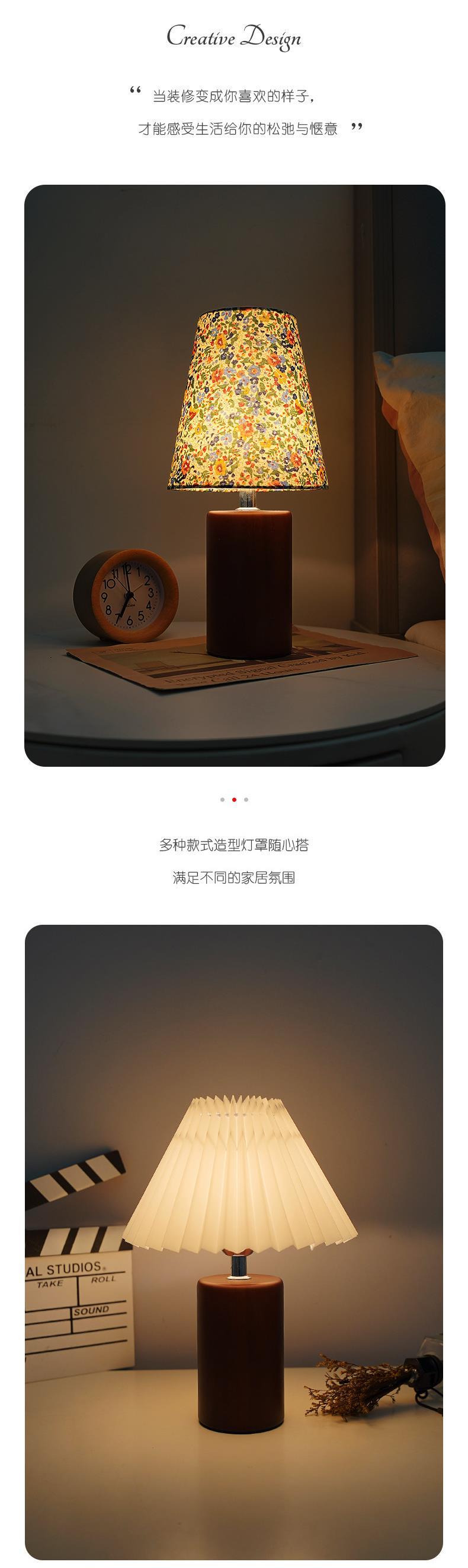 북유럽 주름 천 침실 침실 램프 프리미엄 센스 복고풍 테이블 램프 천연 단단한 나무 장식 주변 야간 조명