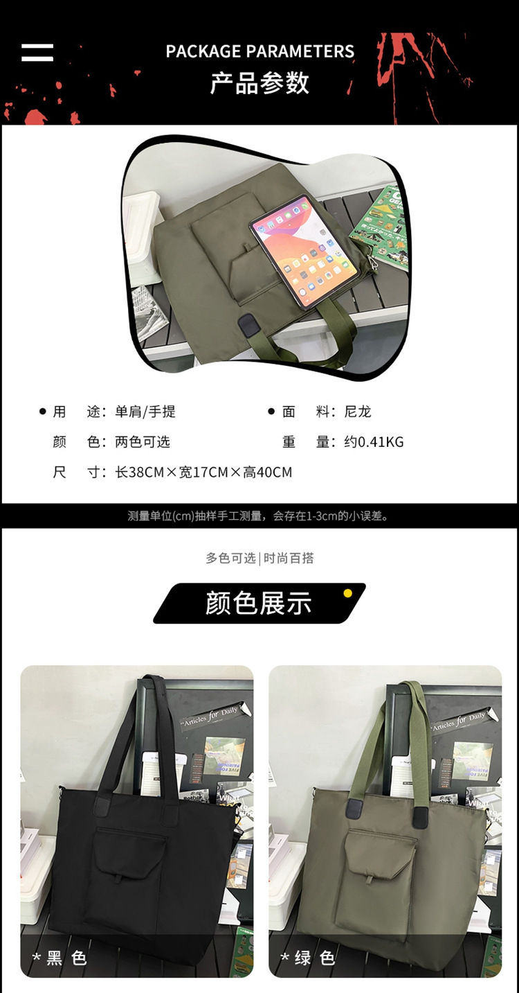 대용량 나일론 헝겊 핸드백 가을 겨울 2022 새로운 유행 캐주얼 여성 가방 통근 어깨 어깨 가방스토어 가기