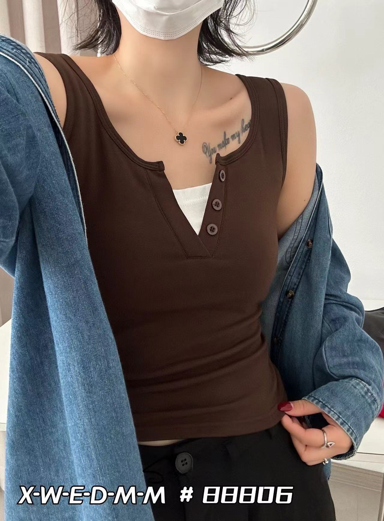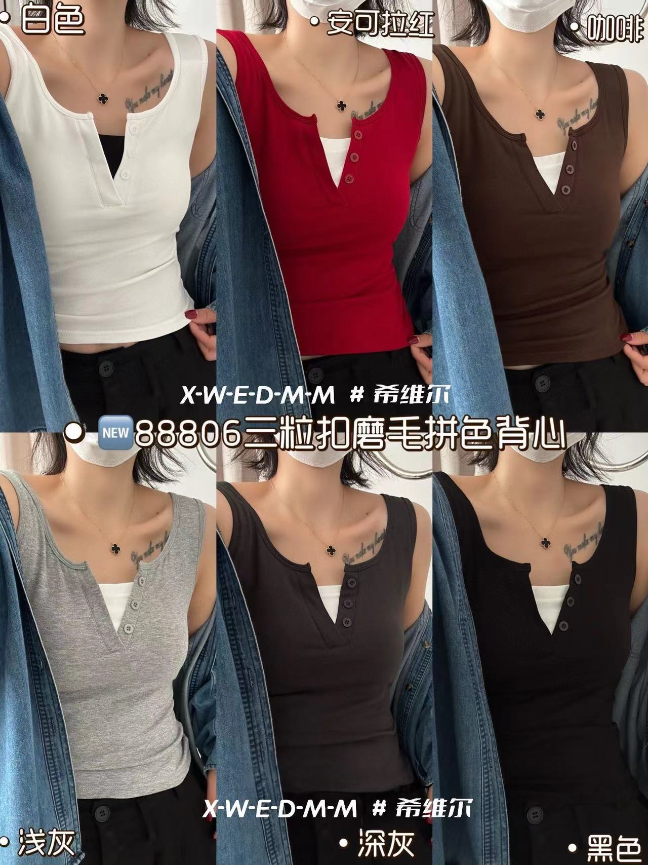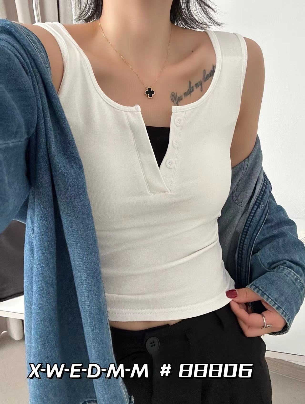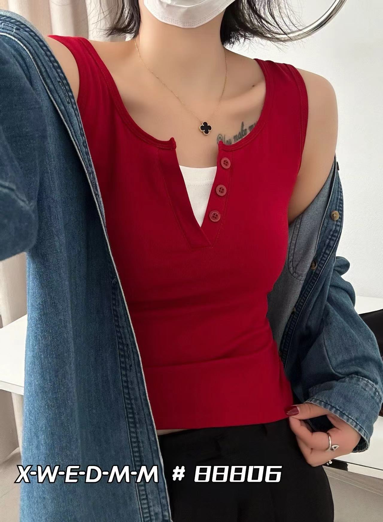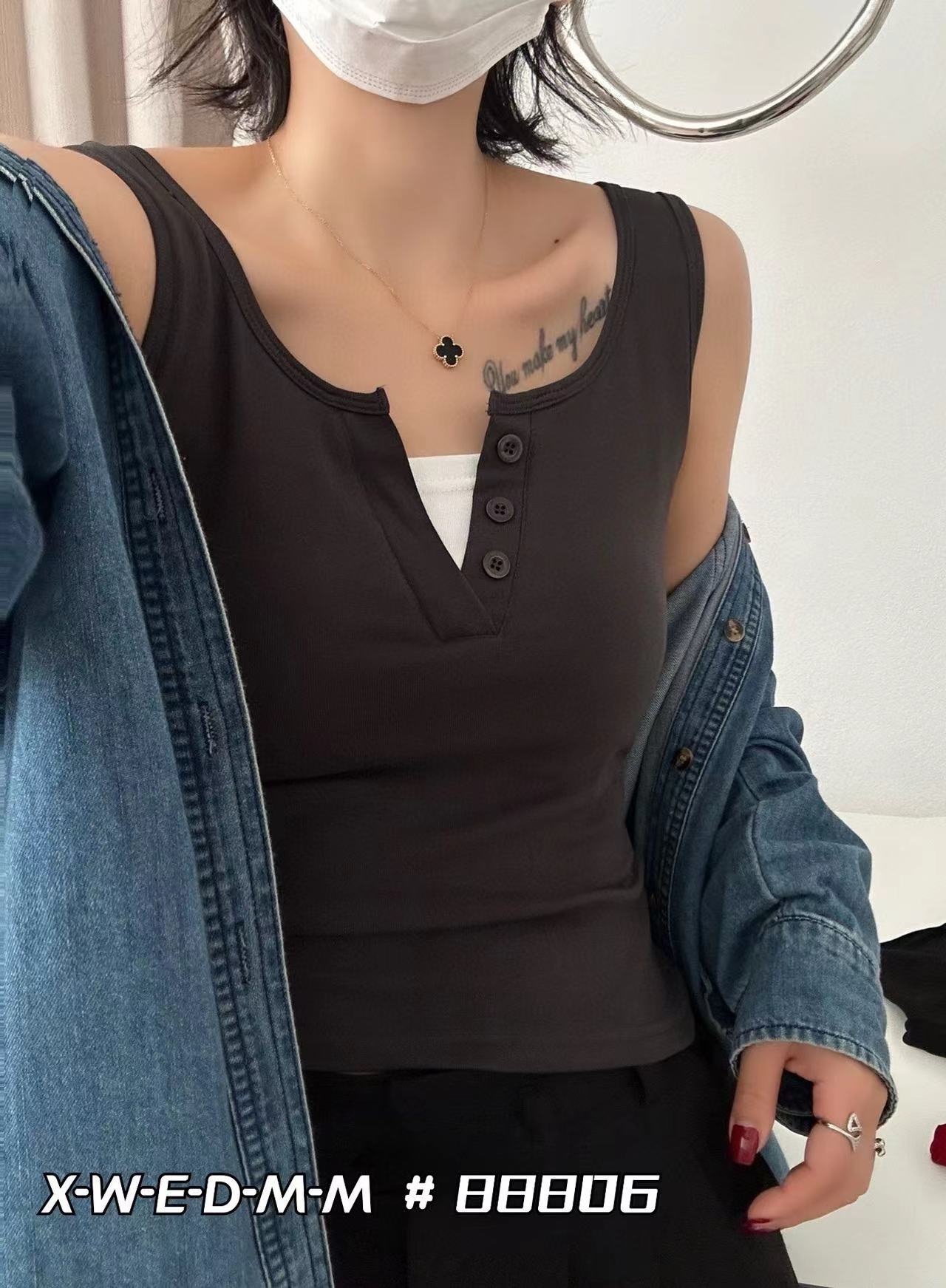 88806 간단하고 세련된 원피스 라운드 넥 가짜 투피스 와이드 숄더 조끼 여성 슬림핏 슬리밍 올매치 민소매 스레드스토어 가기
