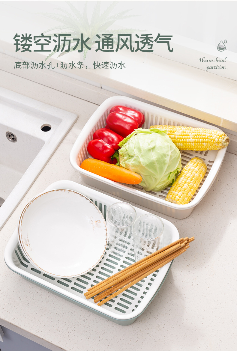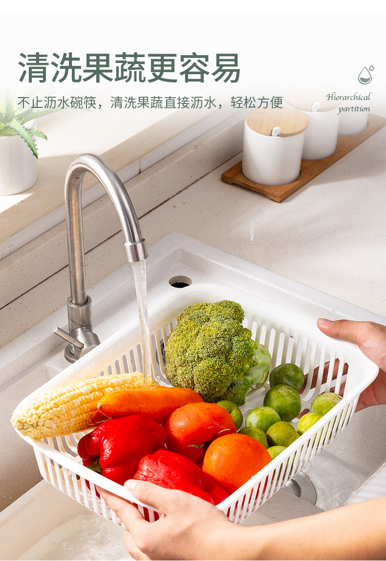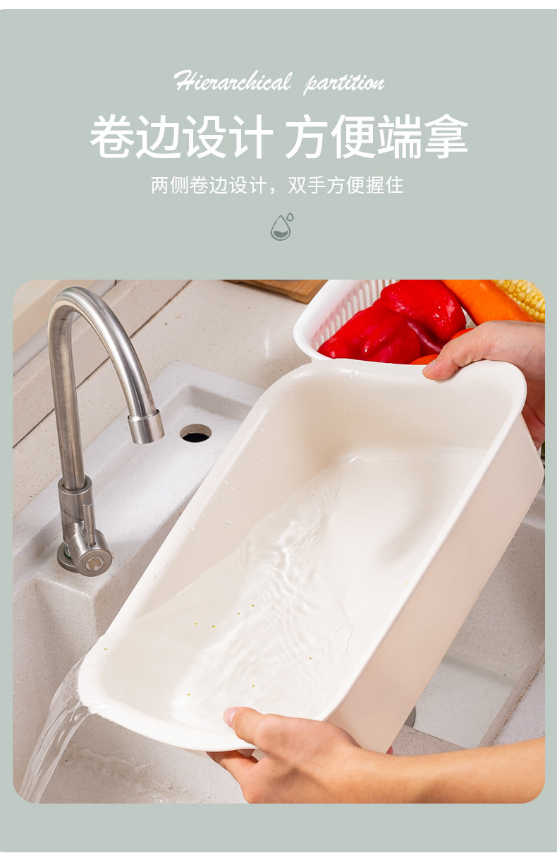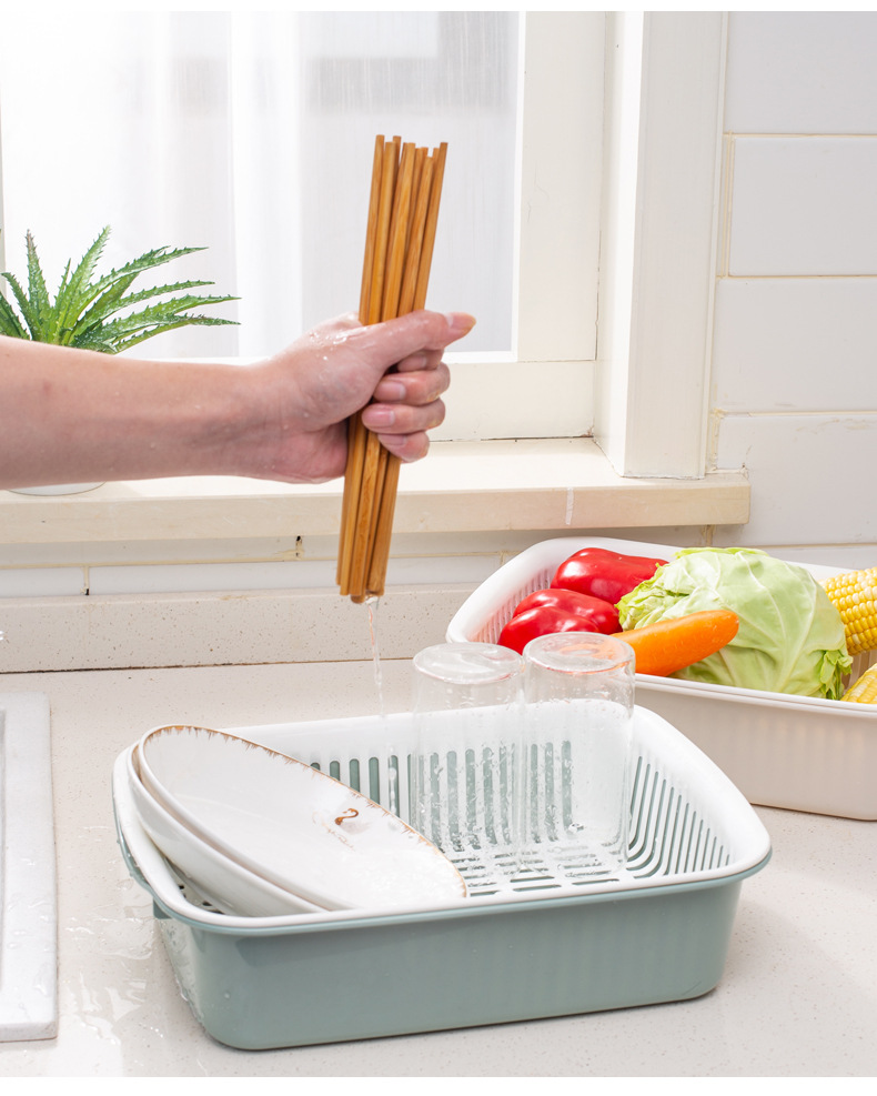 더블 레이어 야채 세척 분지 배수 바구니 가정용 플라스틱 야채 체 주방 다기능 과일 분지 과일 바구니 도매 야채 세척 바구니