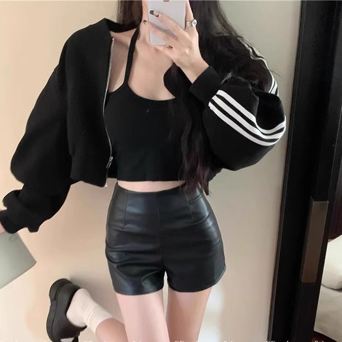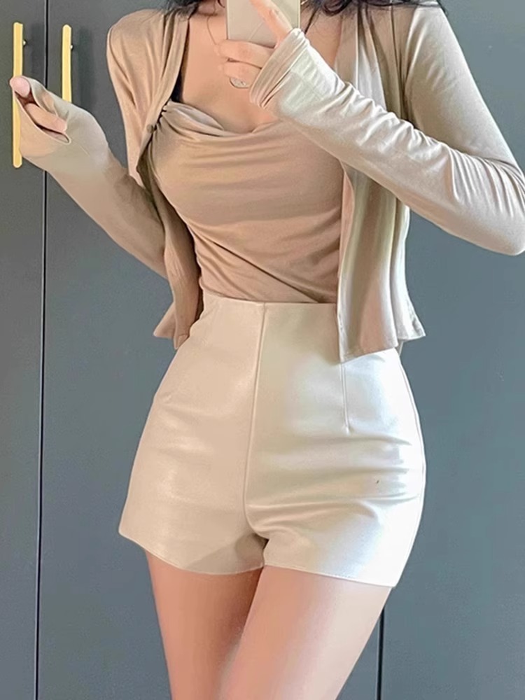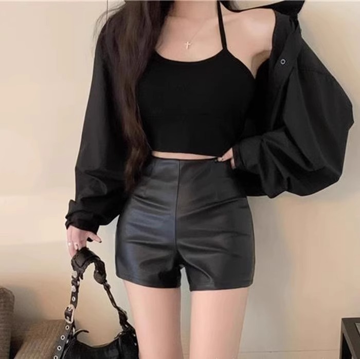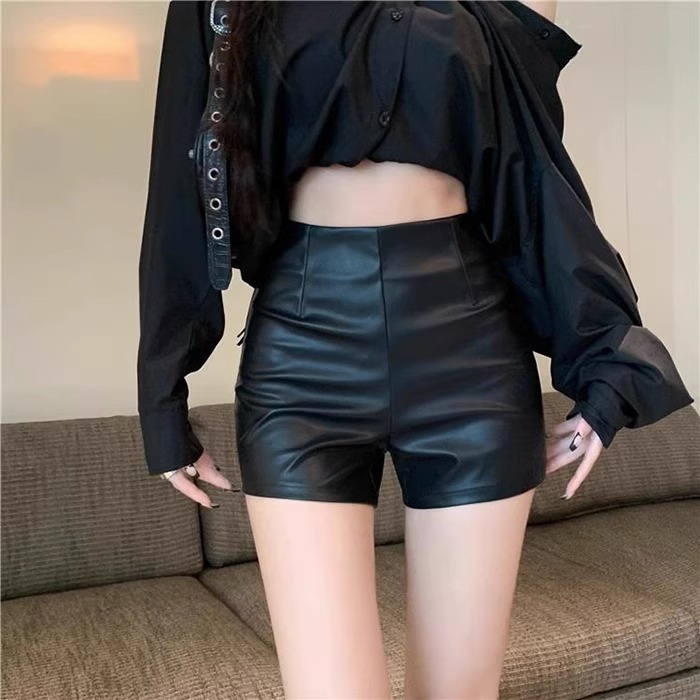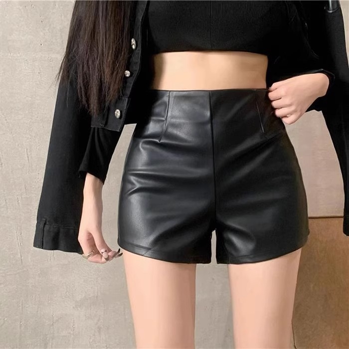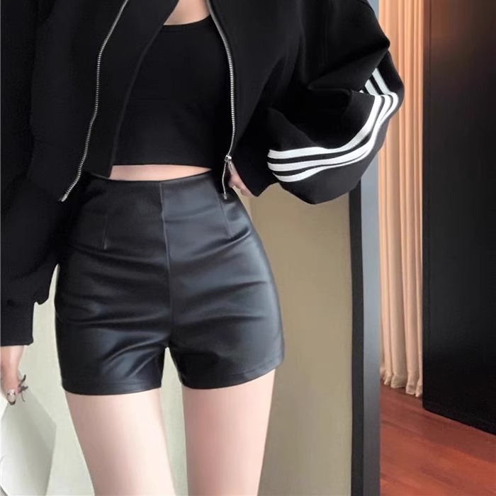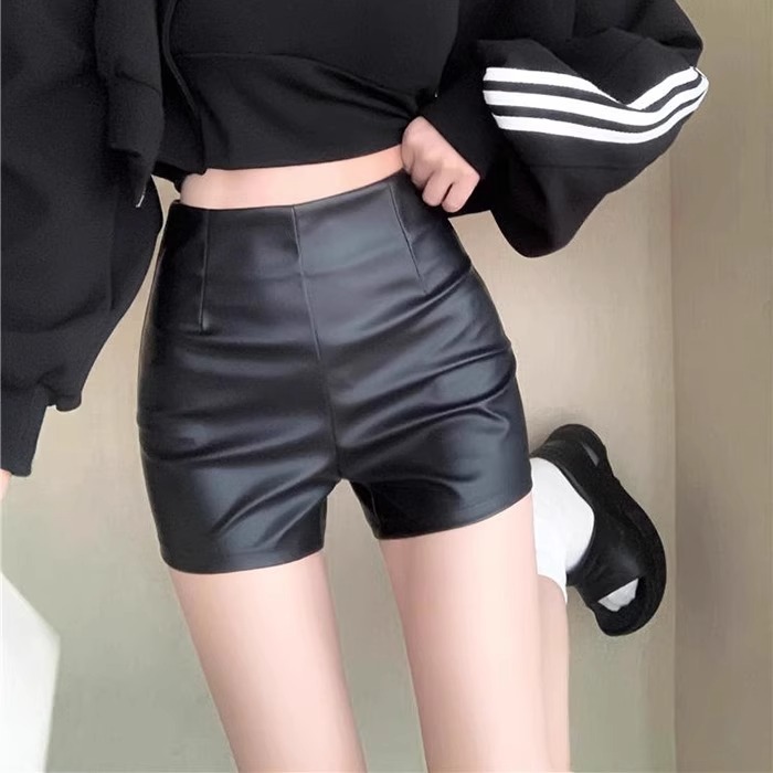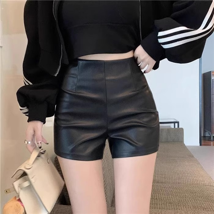 PU 가죽 반바지 여성 2024 년 가을 겨울 새로운 스키니 보텀 아우터 핫 팬츠 섹시한 스파이스 걸스 한국 스타일 A-신발 바지스토어 가기