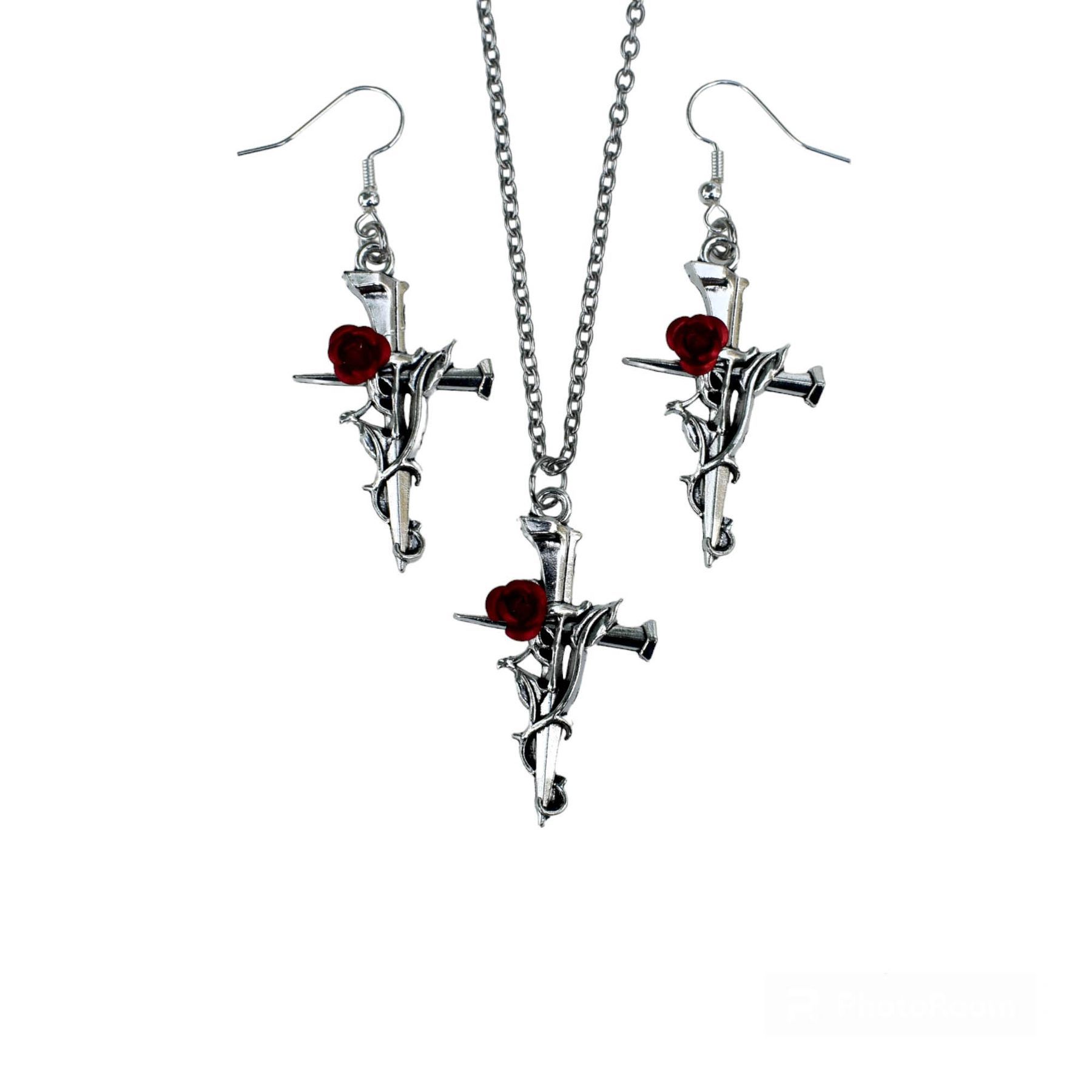 고딕 레드 로즈 크로스 귀걸이 목걸이 세트 레트로 스트리트 성격 유행 힙합 액세서리 도매