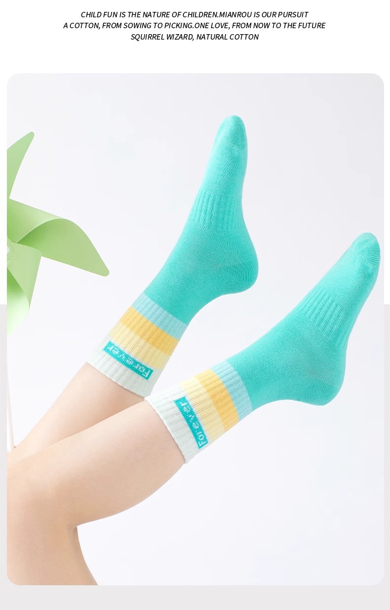 소녀 양말 봄과 가을 코튼 양말 무지개 뼈없는 트렌디 미드 튜브 양말 통기성 항균 탈취제 가을과 겨울 양말 흡수
