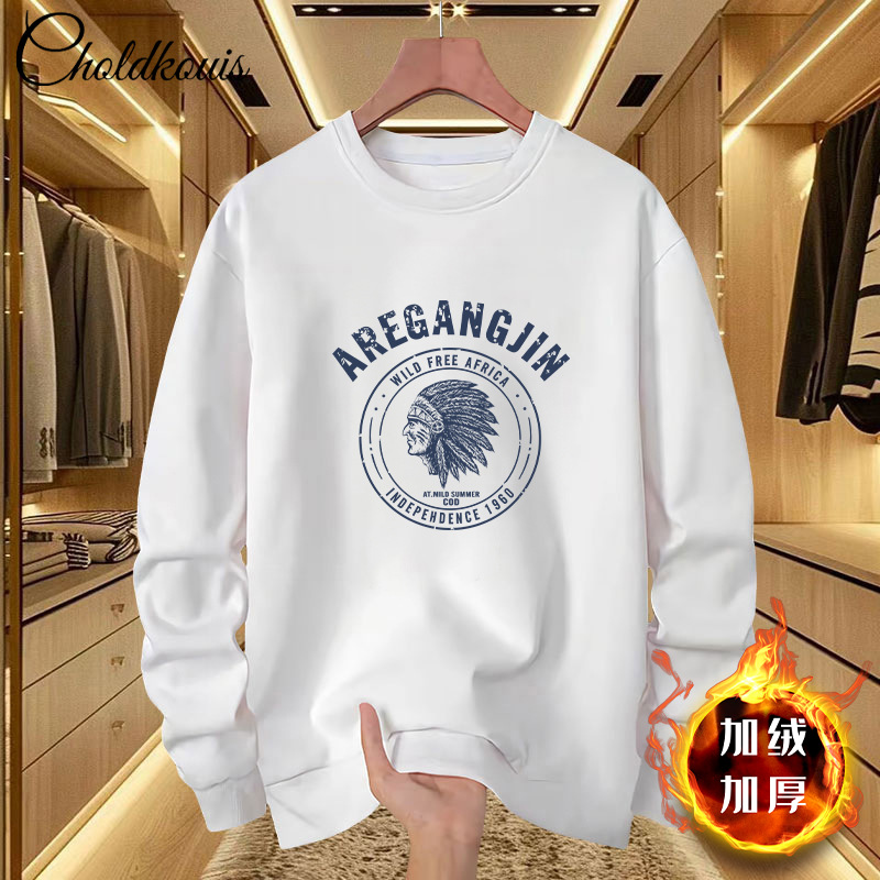 무거운 둥근 목 스웨터 남자의 미국 스타일 패션 브랜드 봄과 가을 후드 자켓 느슨한 인쇄 탑 커플 재킷