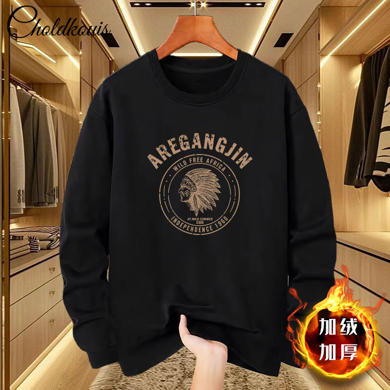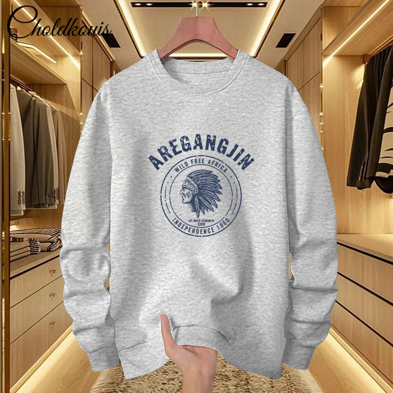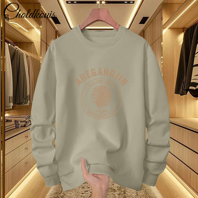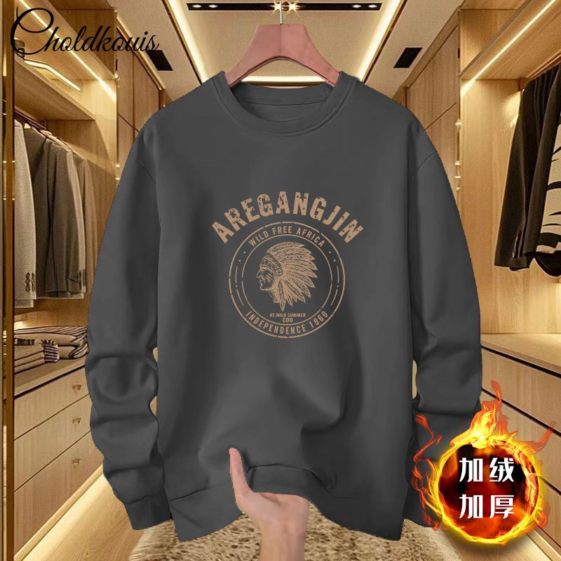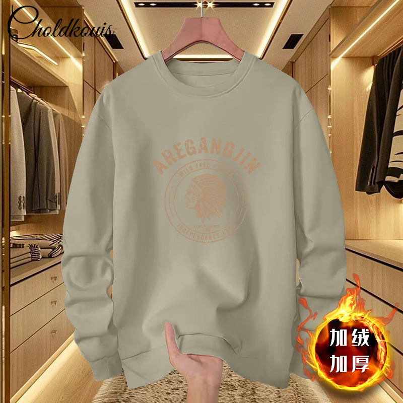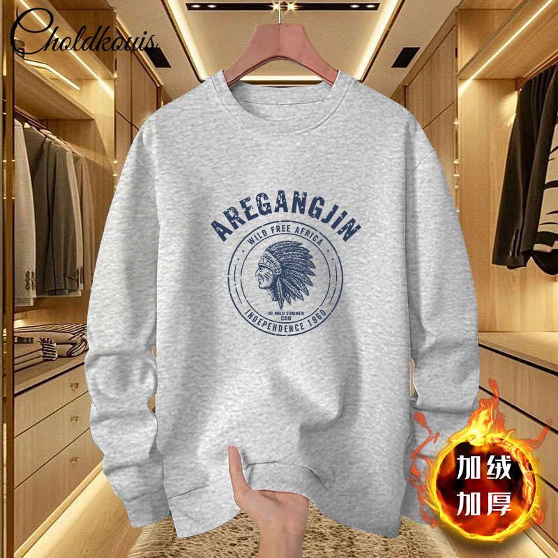 • 오트밀 그레이 라운드넥 스웨트셔츠 플러스 플리스 스타일-929【GL】
