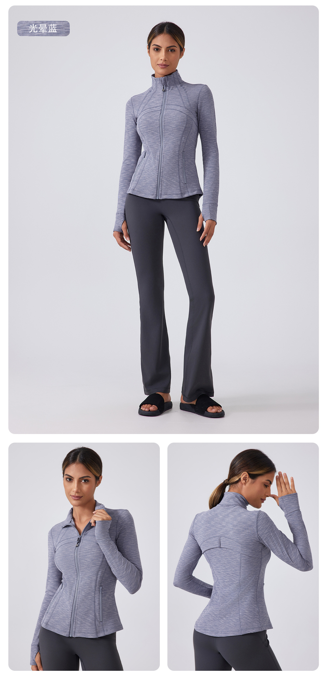 새로운 지퍼 요가 세트 여성용 슬림핏 슬리밍 스포츠 긴팔 러닝 사이클링 트레이닝 피트니스 세트 재킷 DAW182스토어 가기
