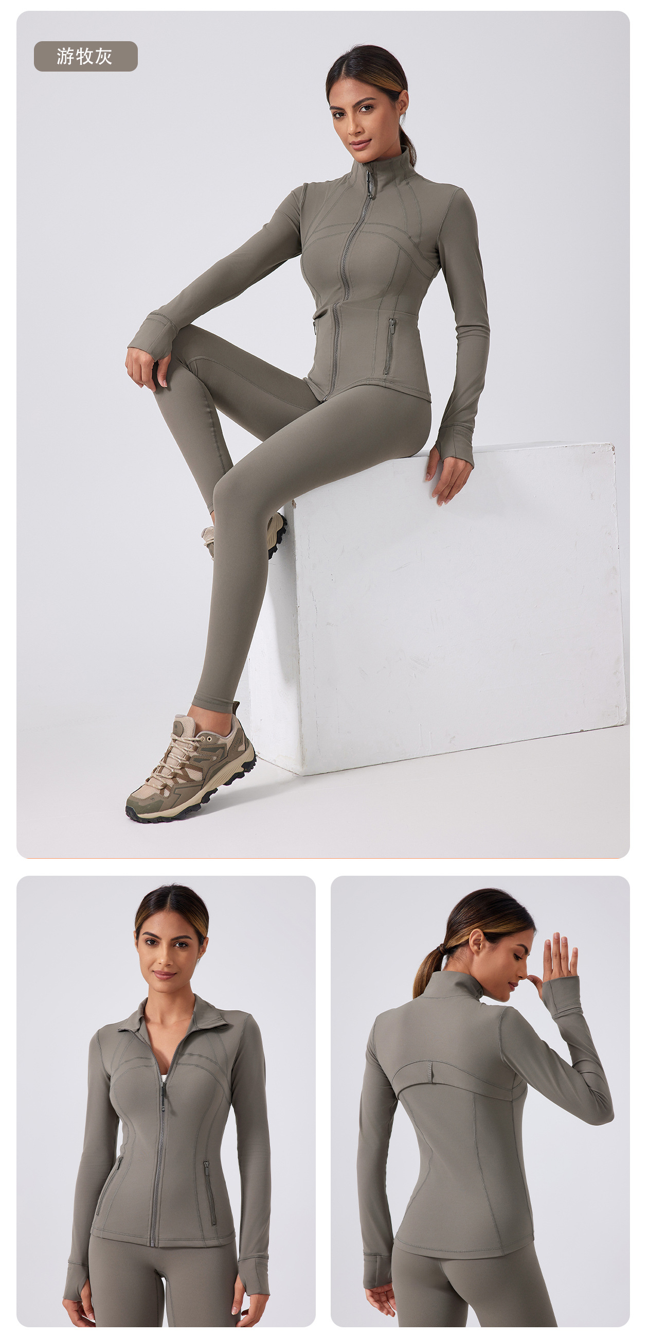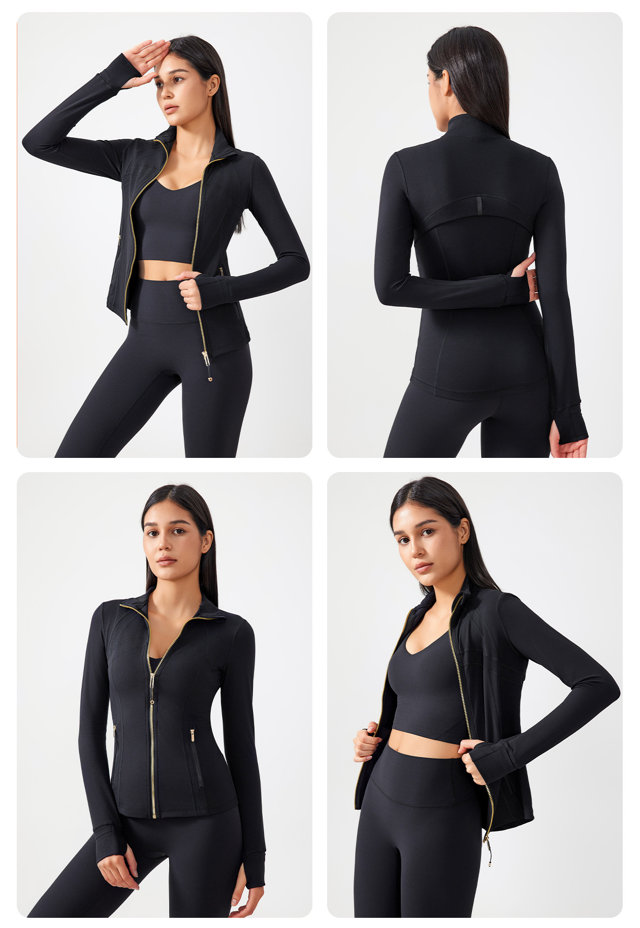 새로운 지퍼 요가 세트 여성용 슬림핏 슬리밍 스포츠 긴팔 러닝 사이클링 트레이닝 피트니스 세트 재킷 DAW182