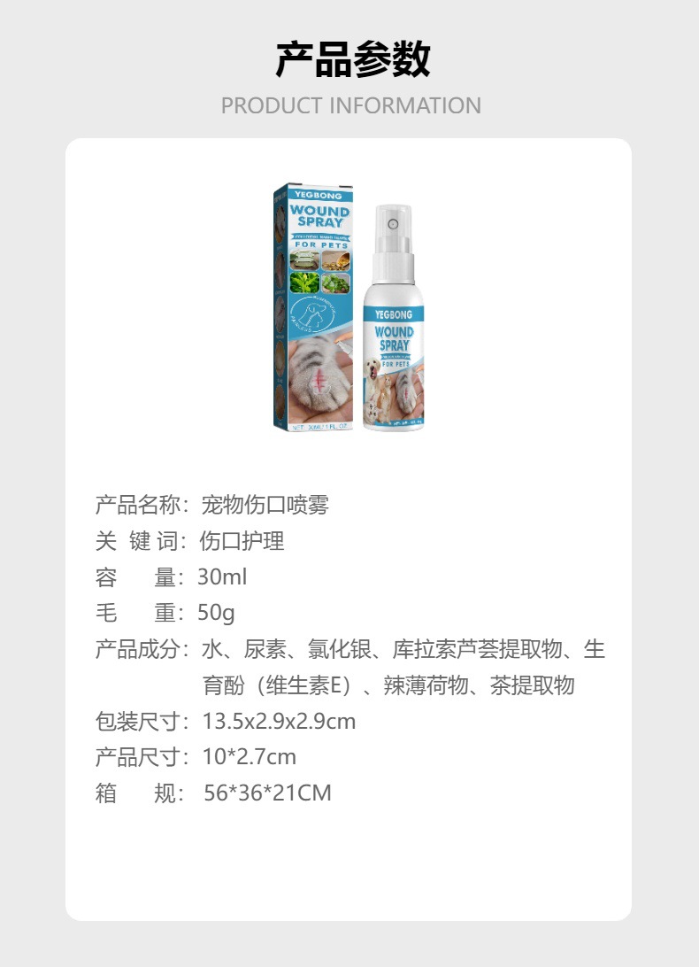 예봉 애완 동물 상처 스프레이 개 고양이 피부 발진 이끼 상처 상처 치료 간호 박테리아 차단 액체