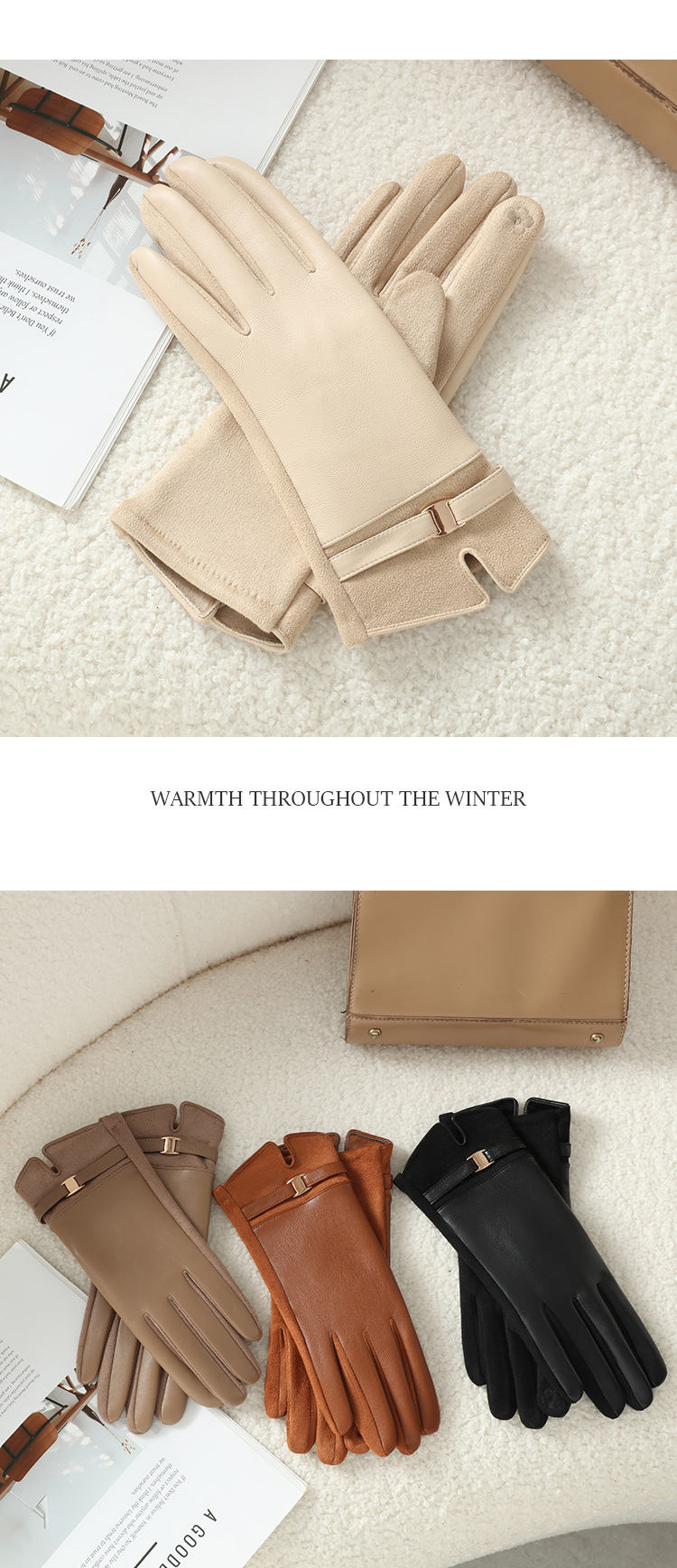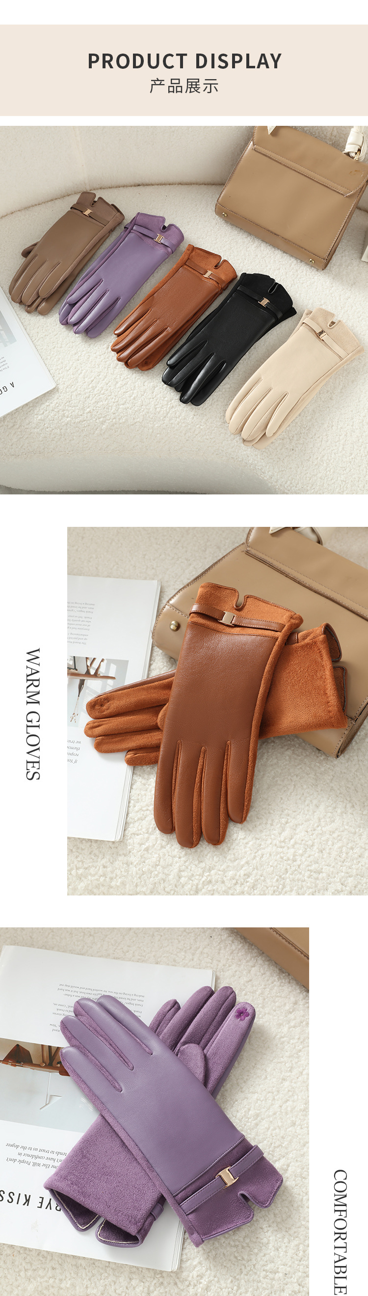 단열성 PU 장갑 도매 겨울용 두꺼운 플리스 안감 따뜻한 야외 라이딩 장갑 여성용 방한스토어 가기