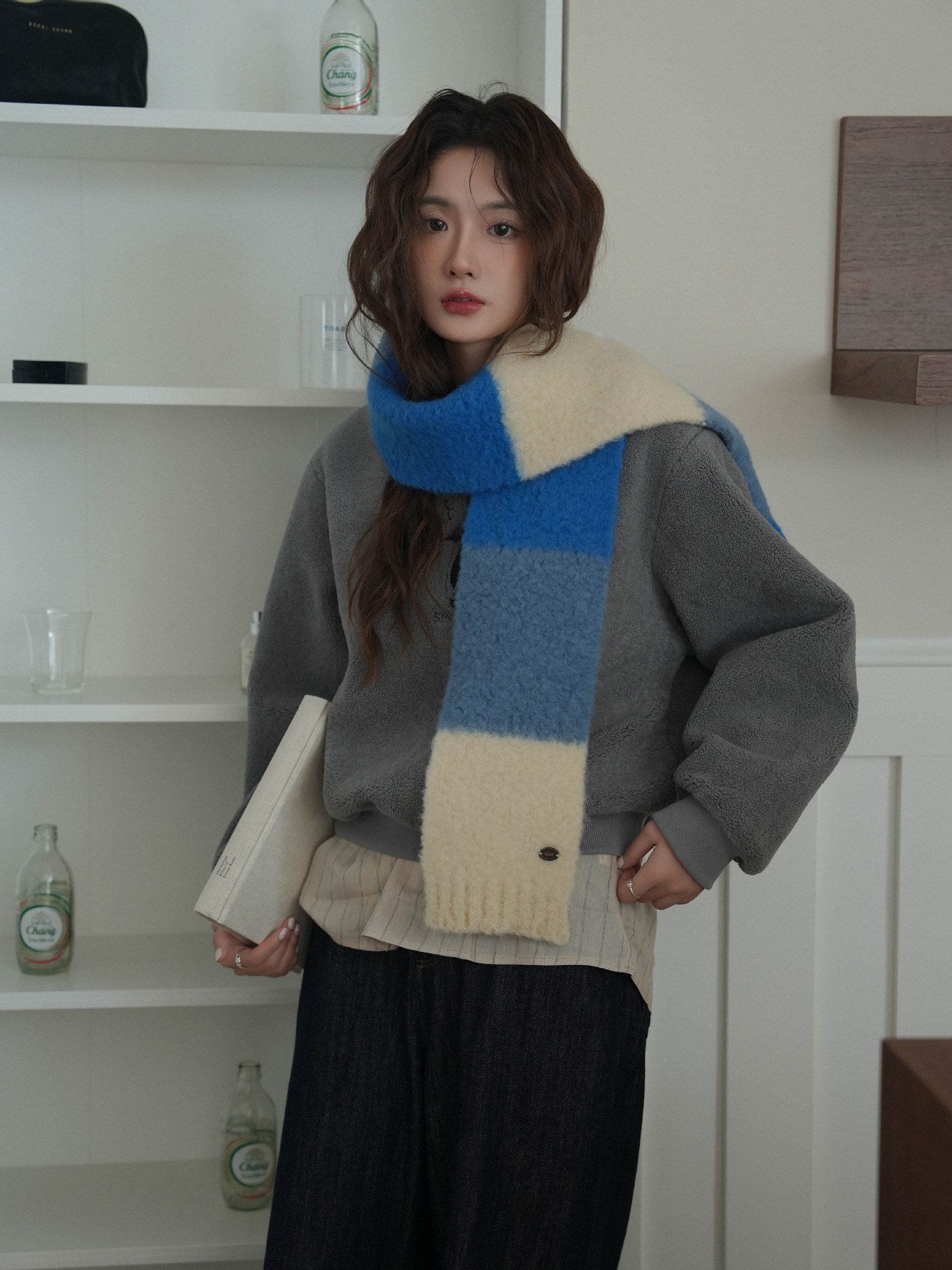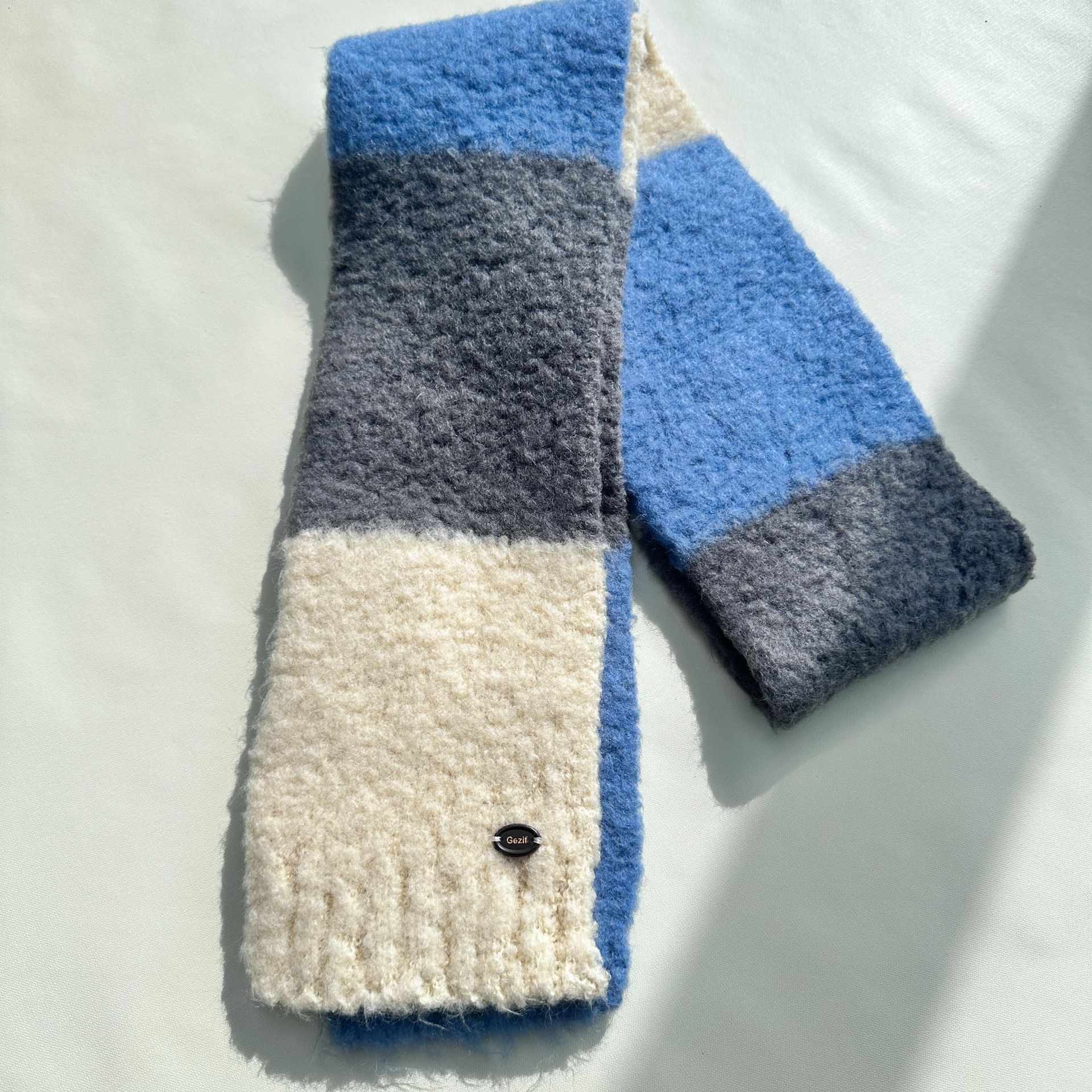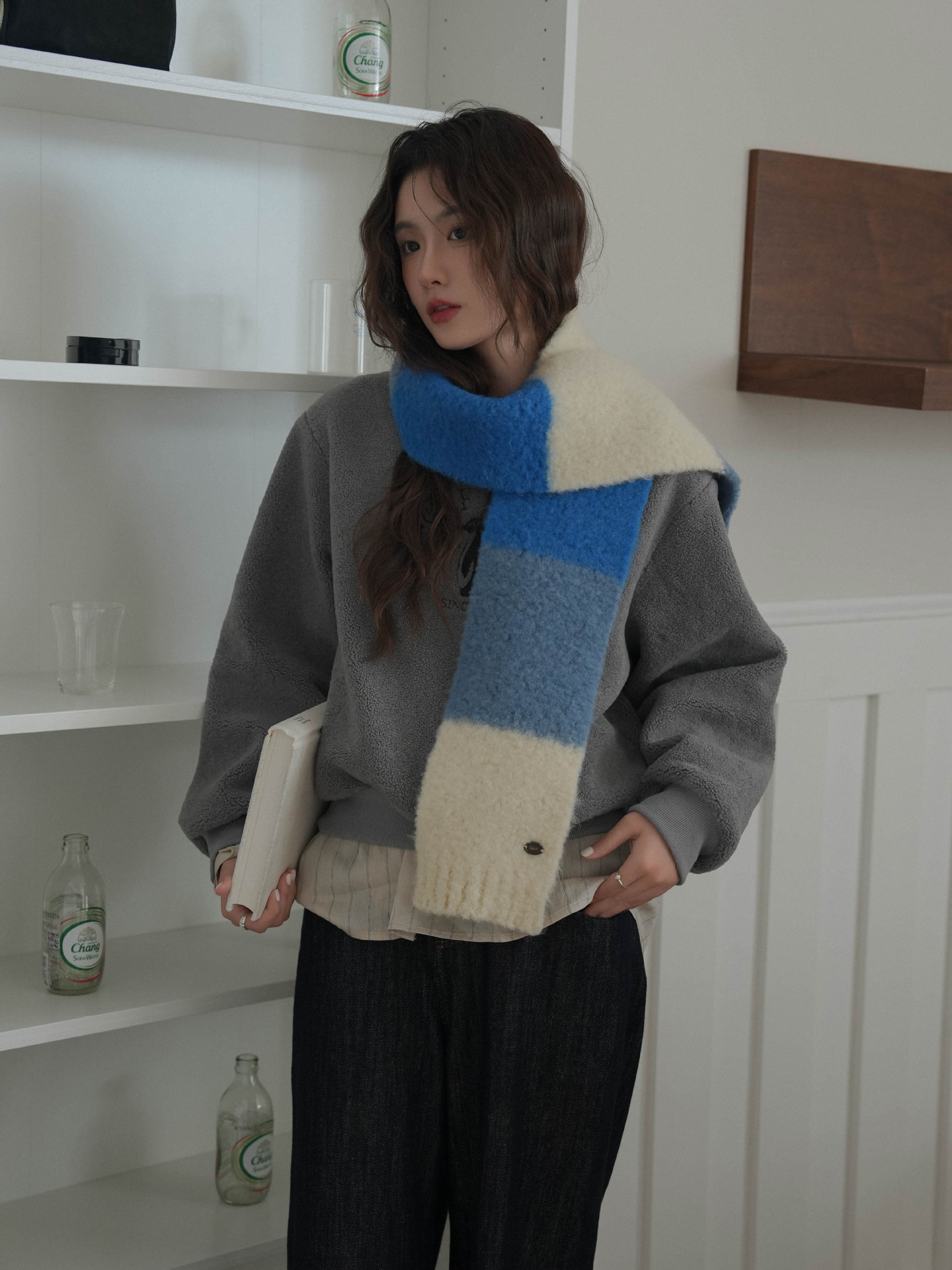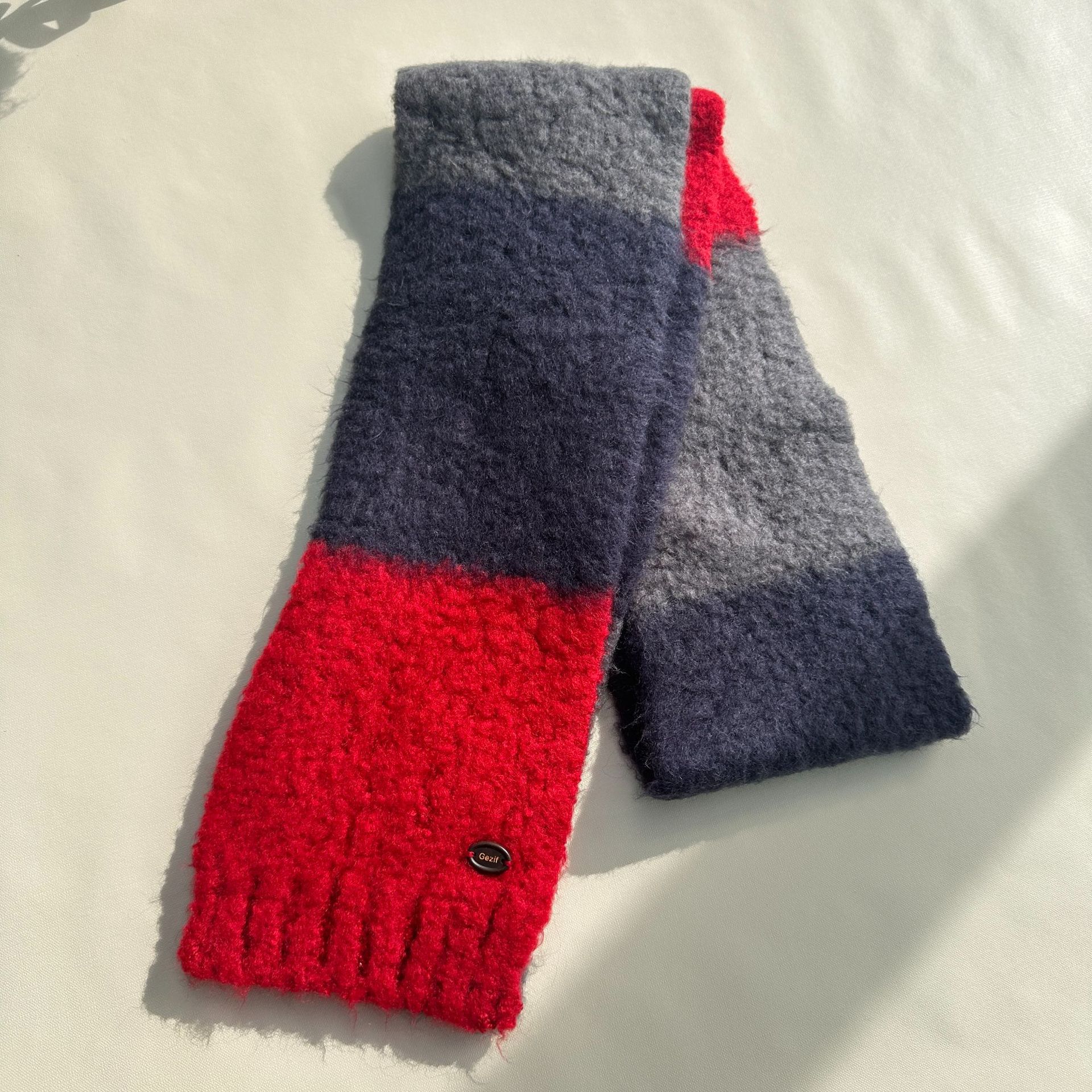 한국산 니트 울 따뜻한 겨울 컬러블록 인기 울 스카프 다용도 액세서리