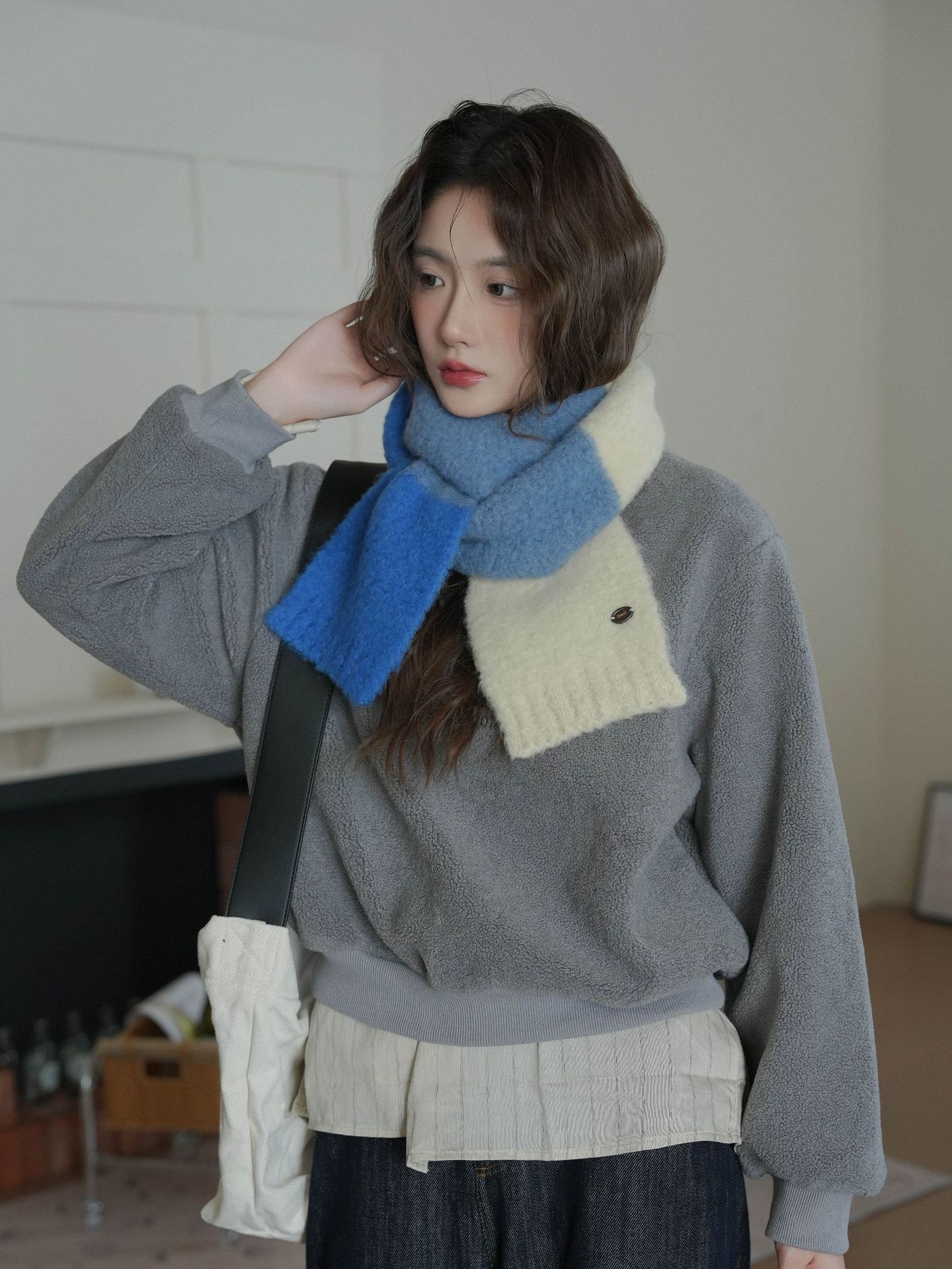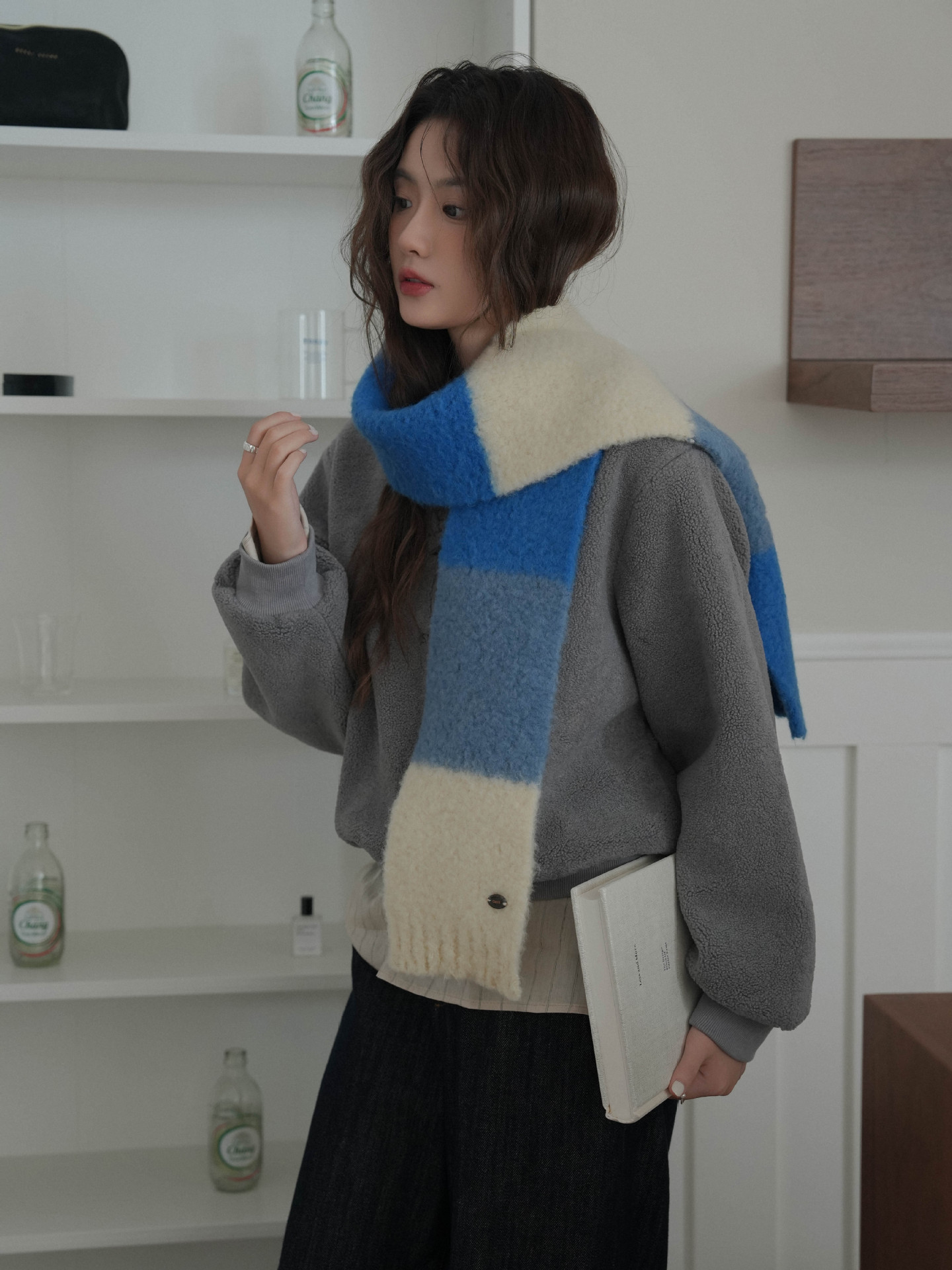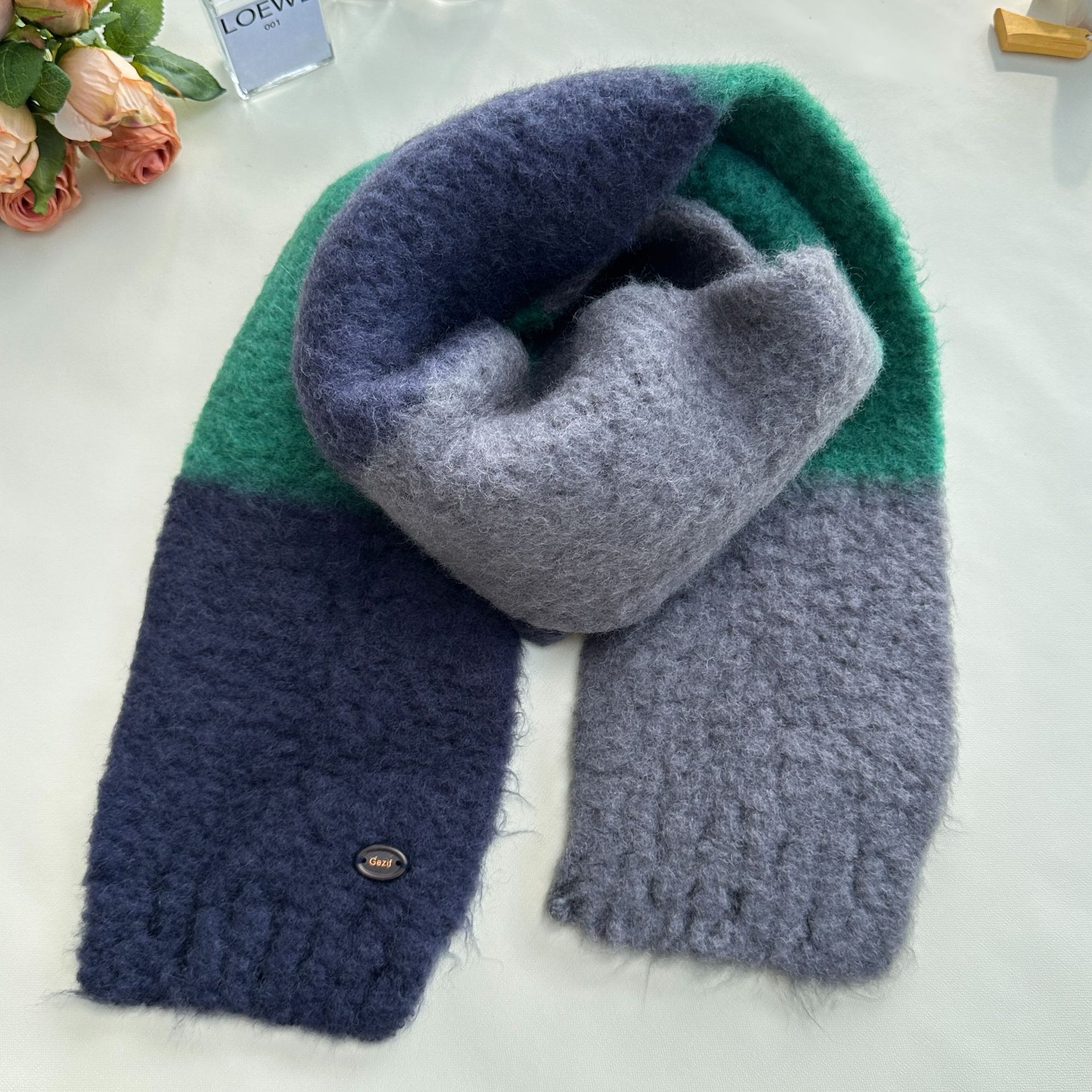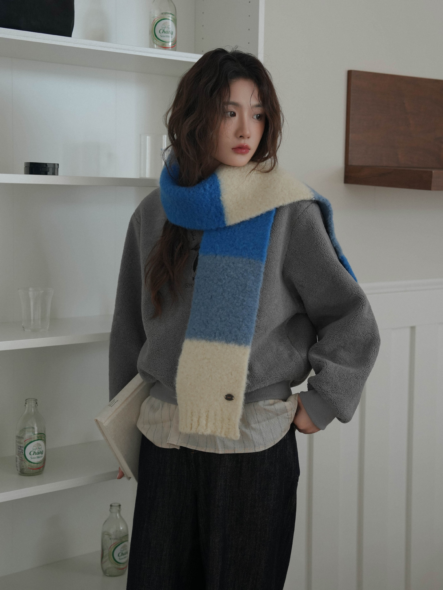 한국산 니트 울 따뜻한 겨울 컬러블록 인기 울 스카프 다용도 액세서리