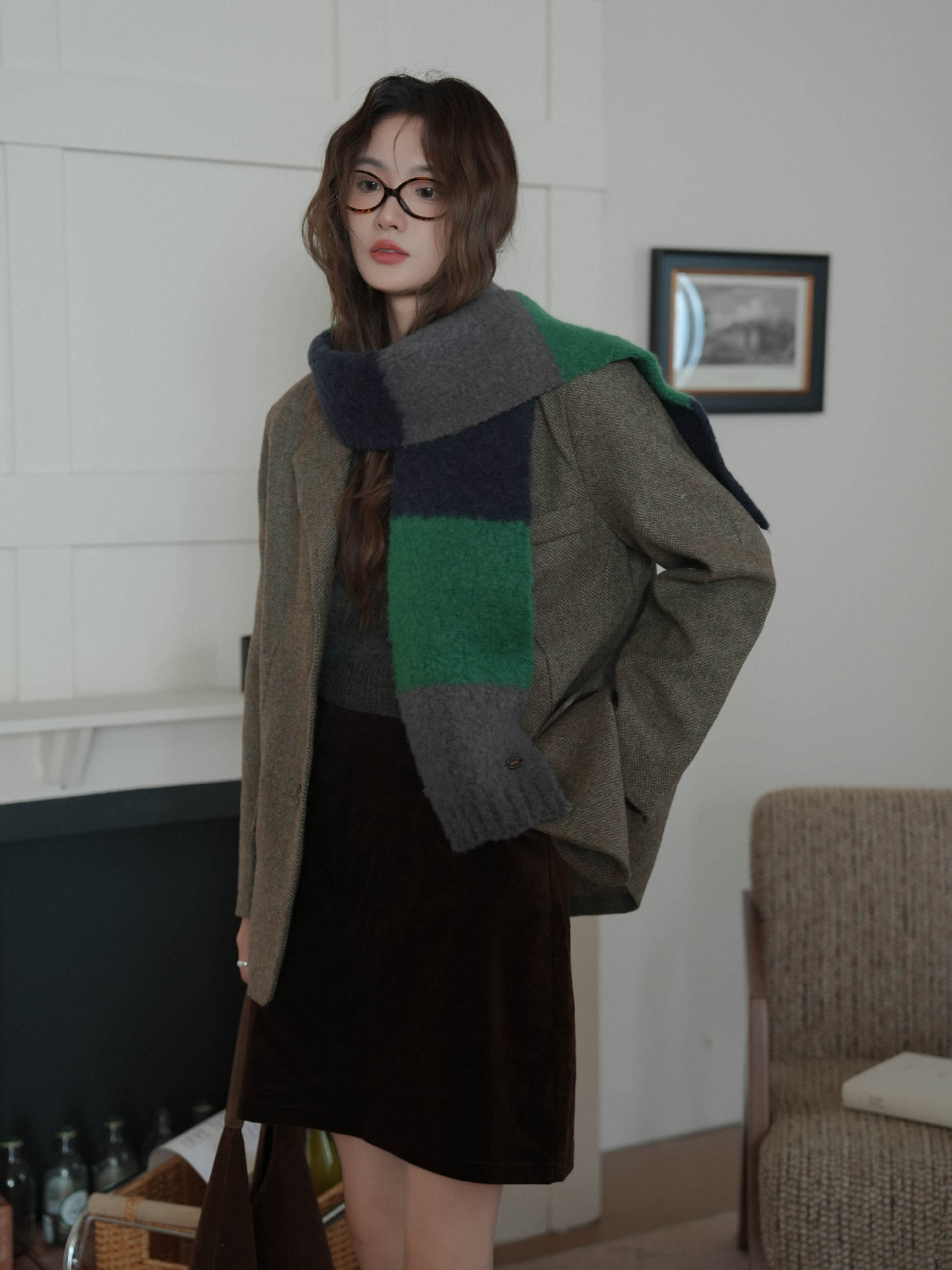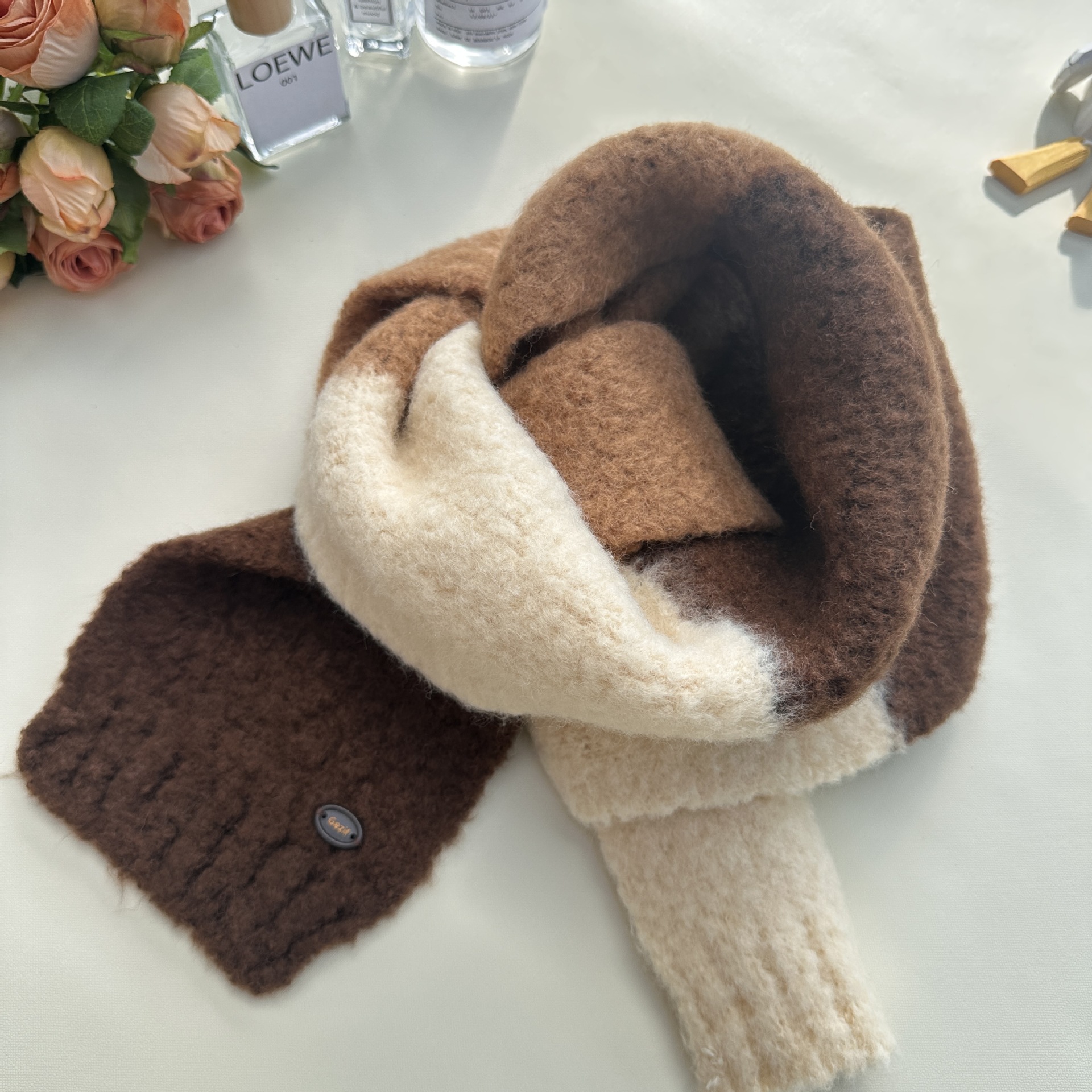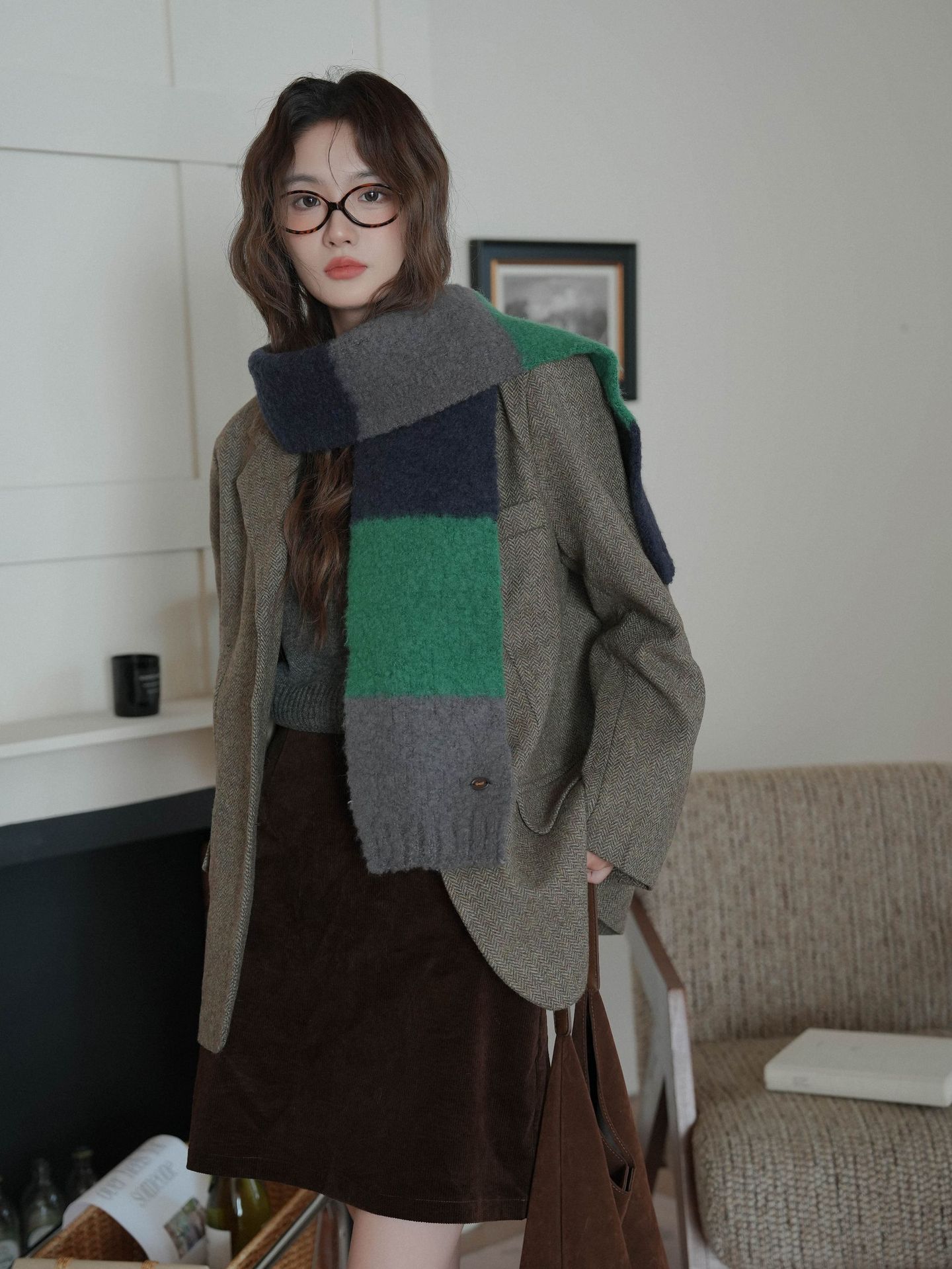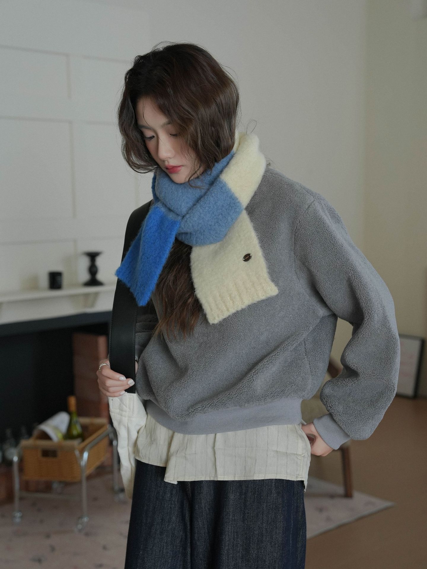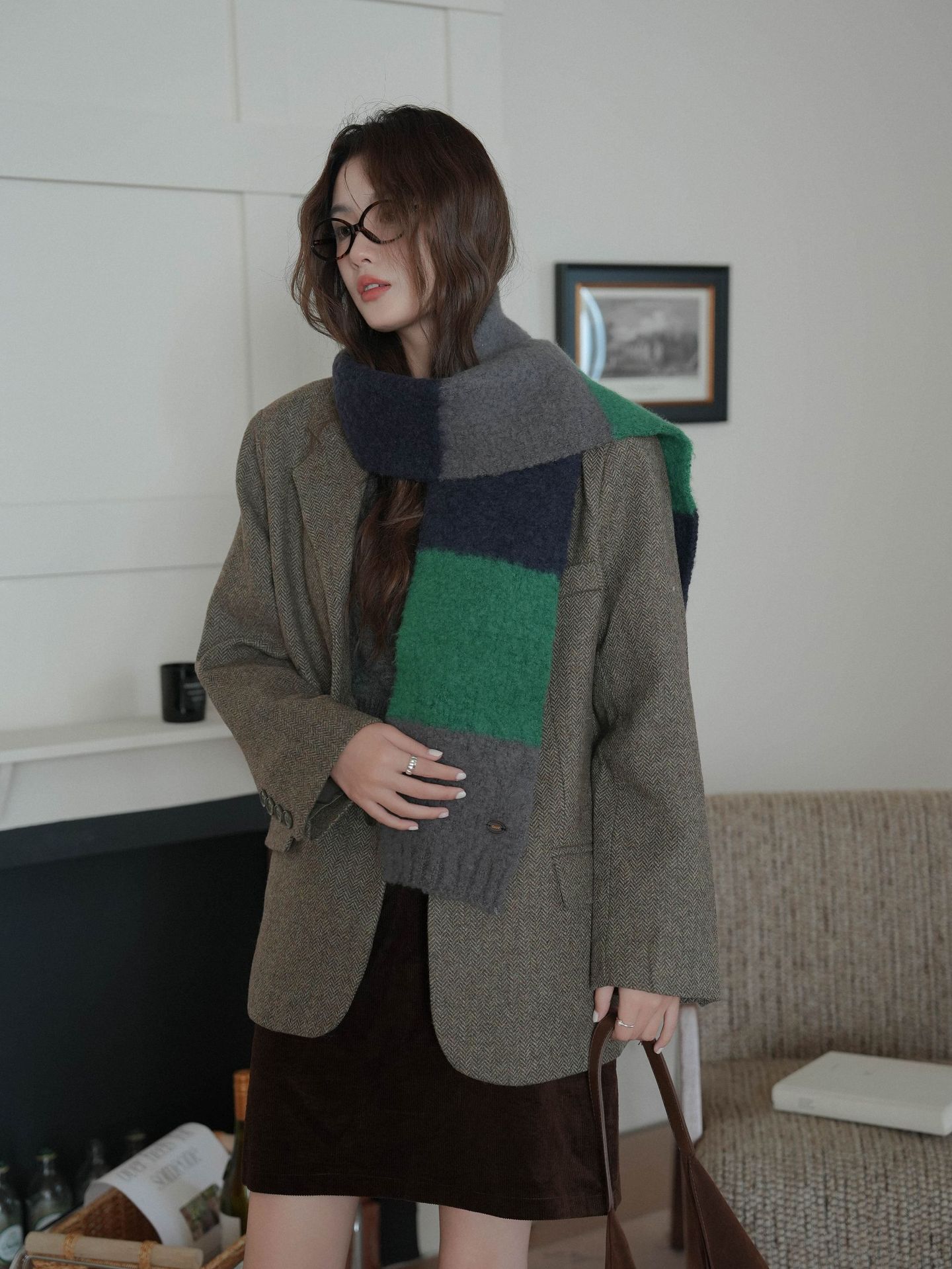 한국산 니트 울 따뜻한 겨울 컬러블록 인기 울 스카프 다용도 액세서리