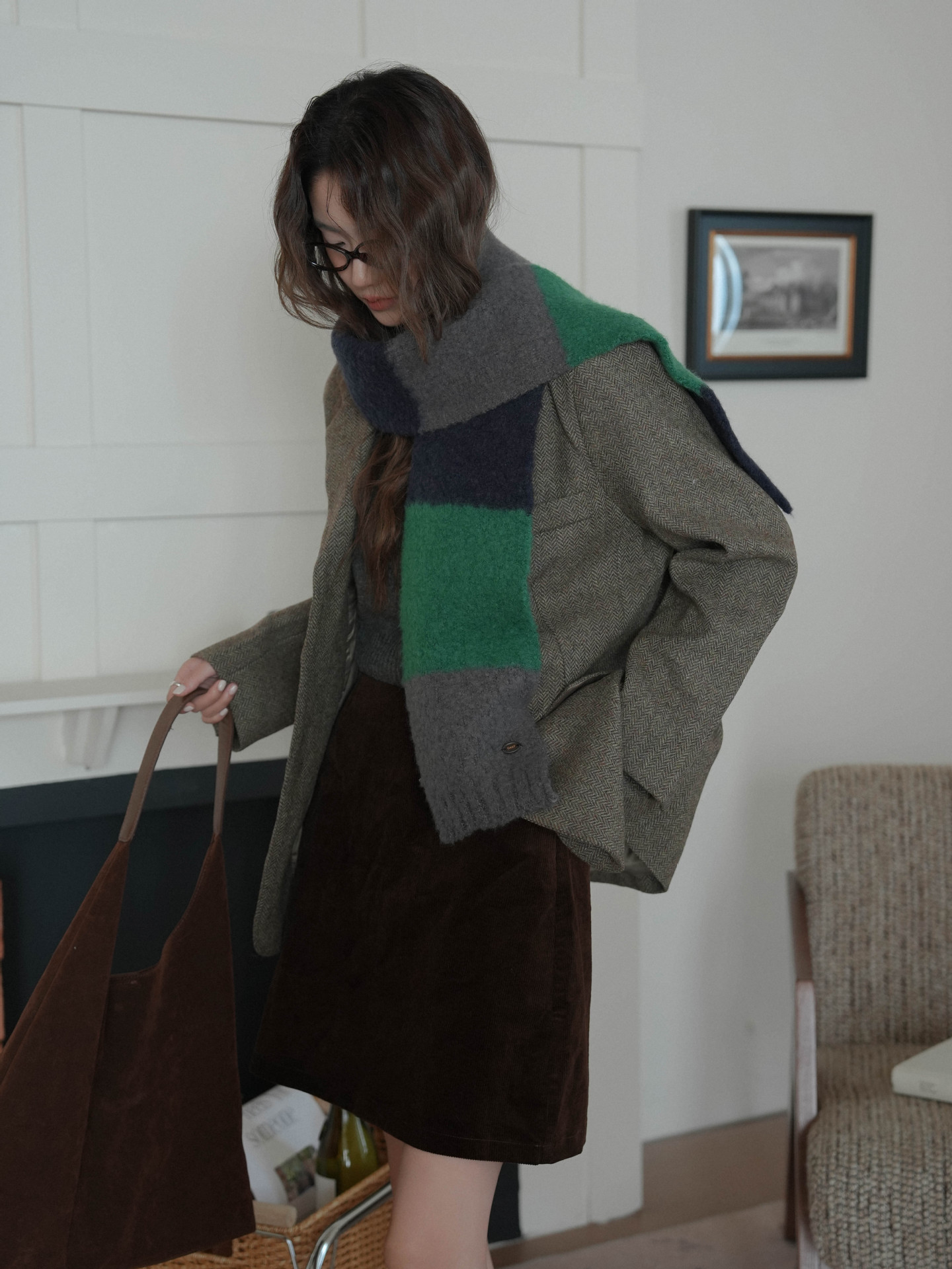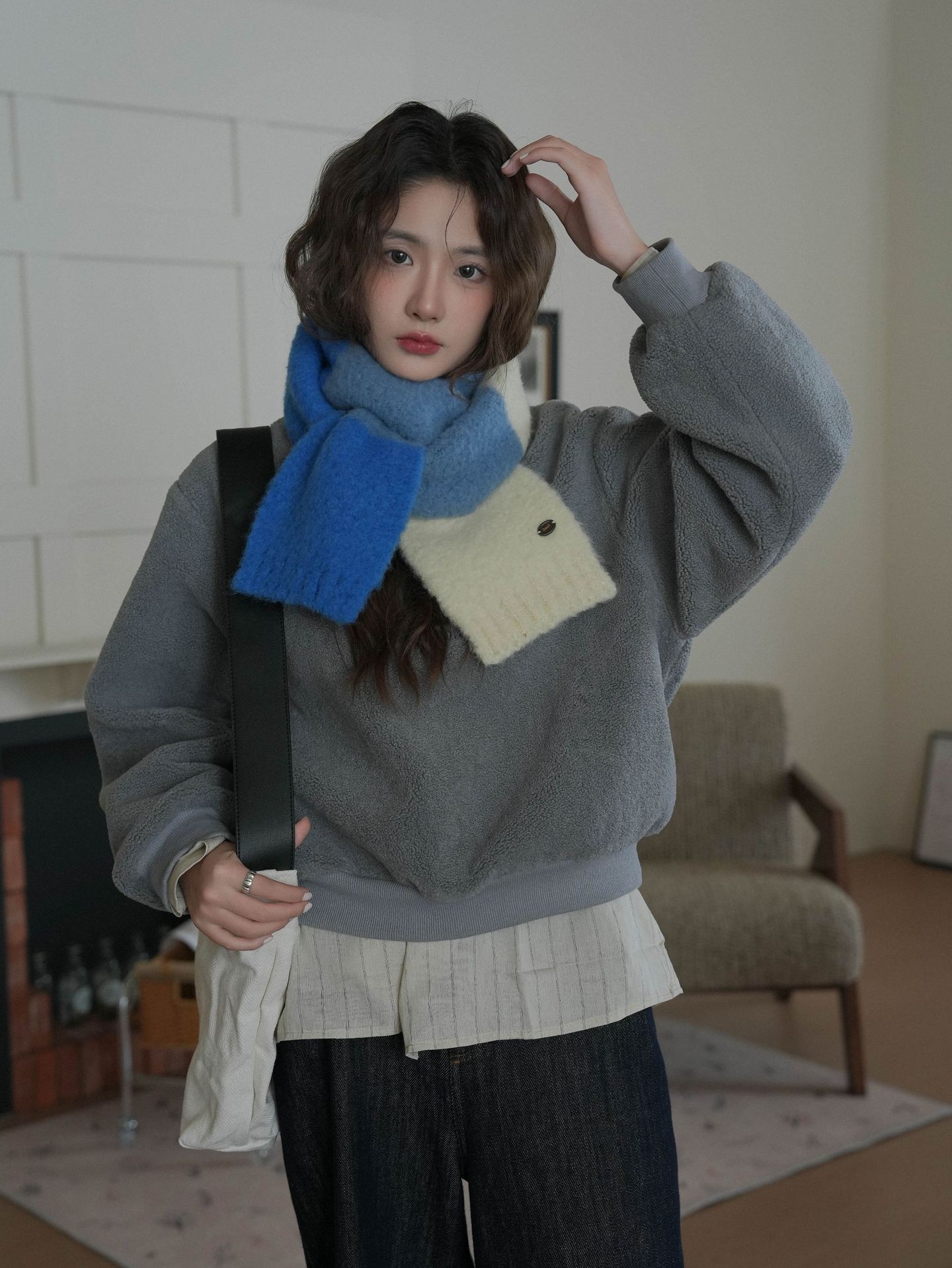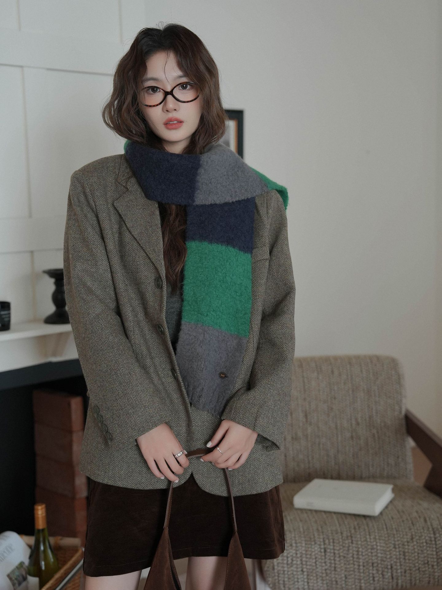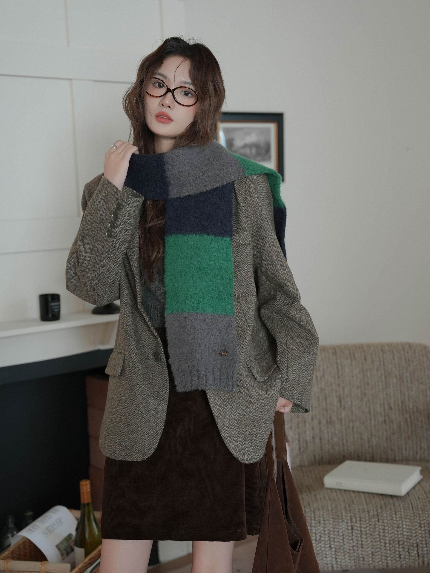 한국산 니트 울 따뜻한 겨울 컬러블록 인기 울 스카프 다용도 액세서리
