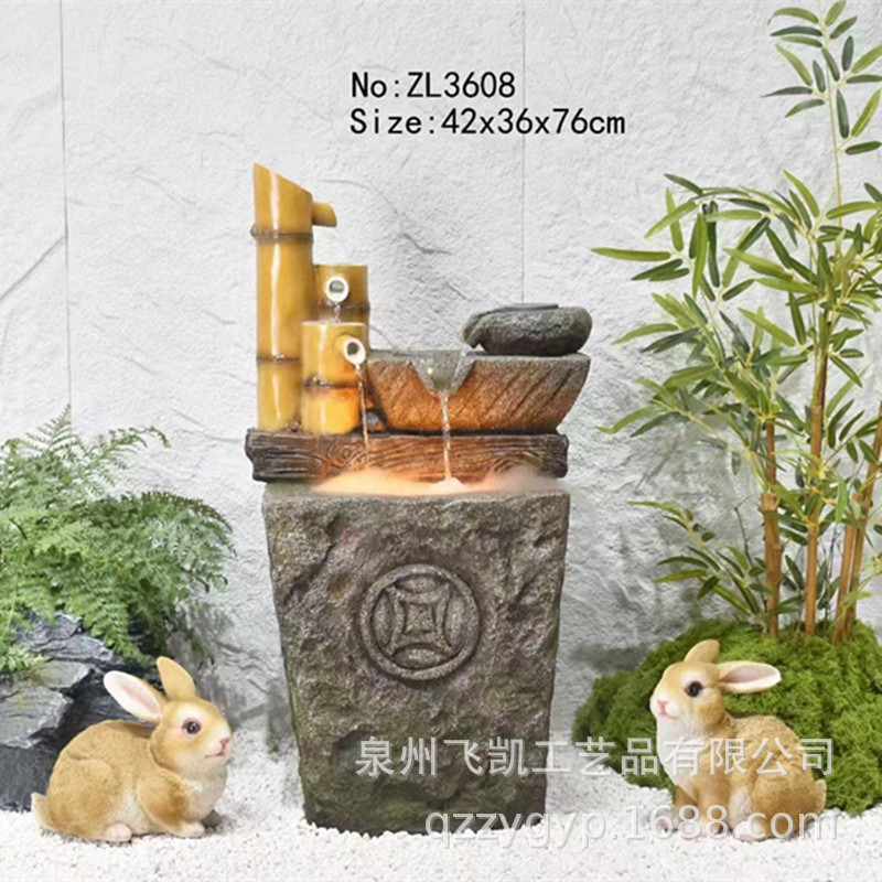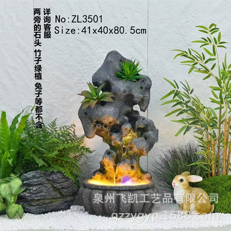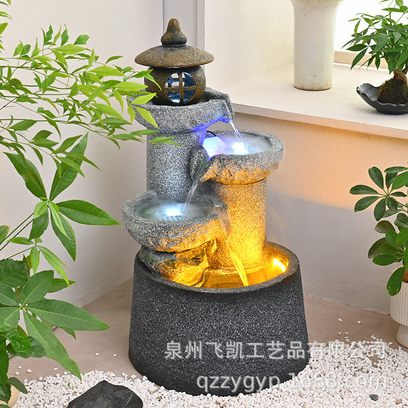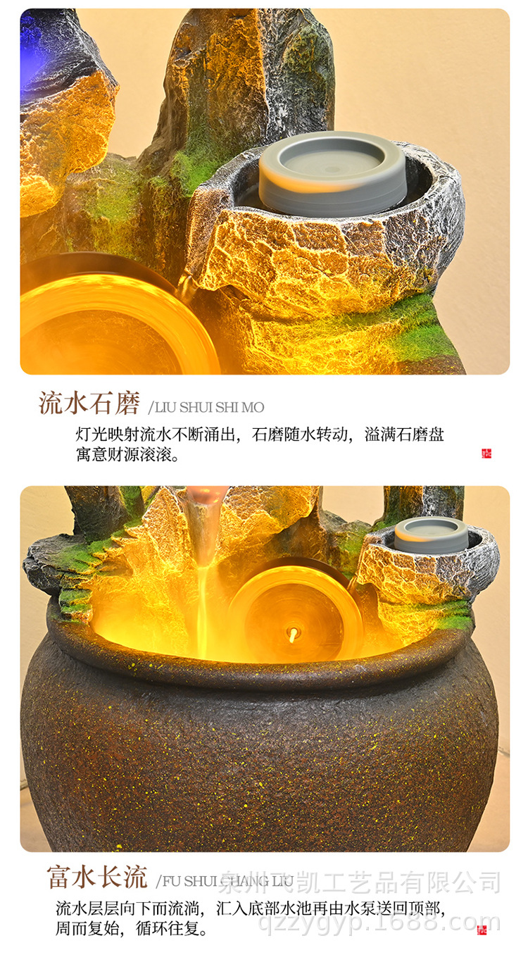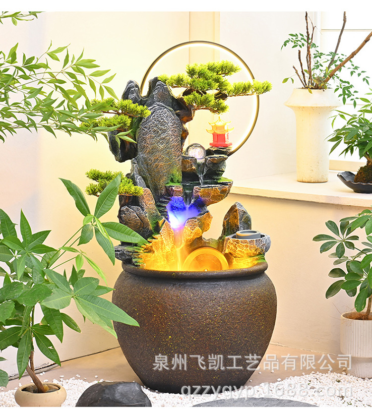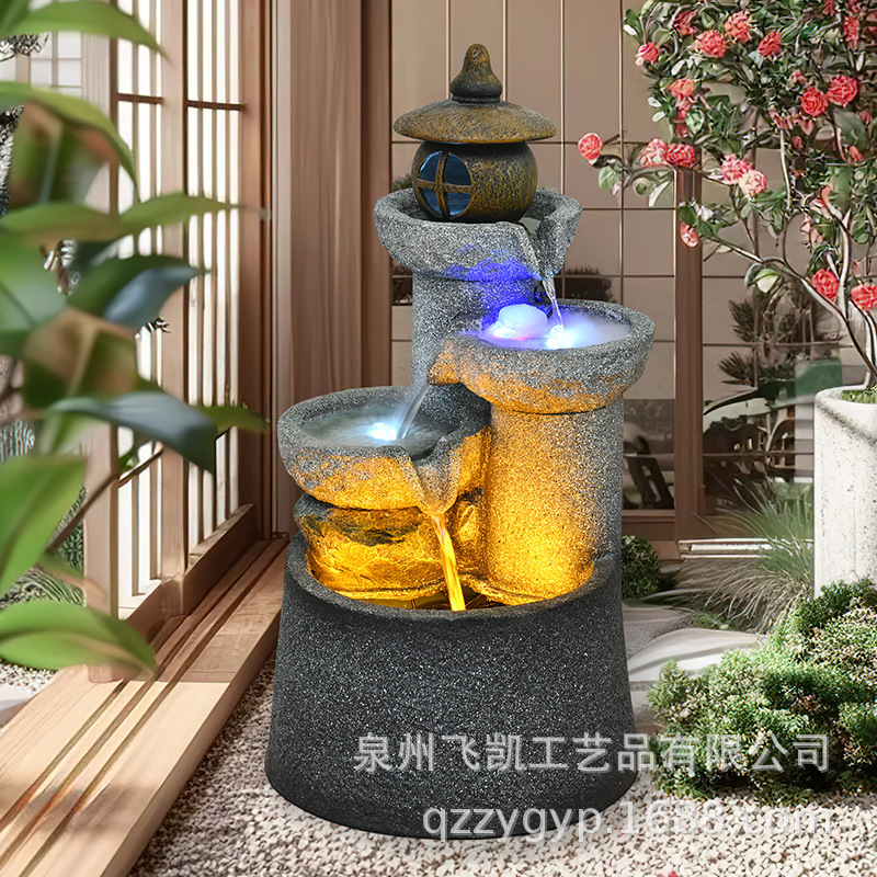 암석 분수 조롱박 흐르는 물 장식품 순환 물 탱크 거실 사무실 행운 착륙 장식 풍경 선물