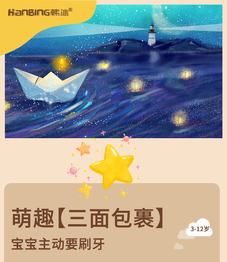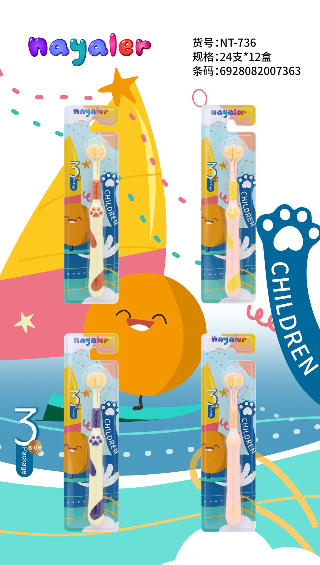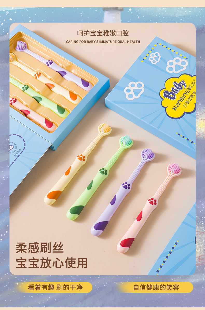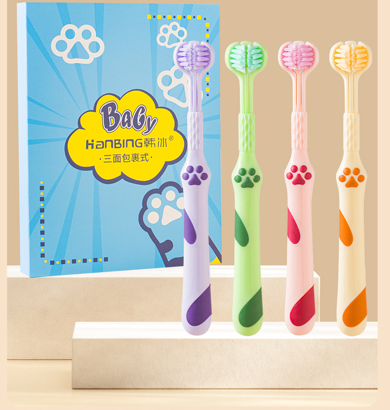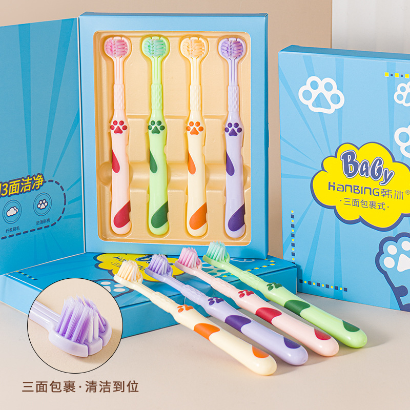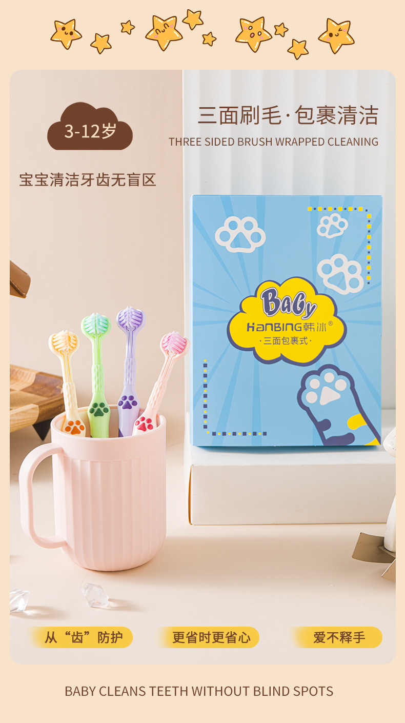 [라이브바이브레이션 타오바오 핫모델] 3~12세 어린이를 위한 캣클로 삼면포장한 한빙 어린이 칫솔