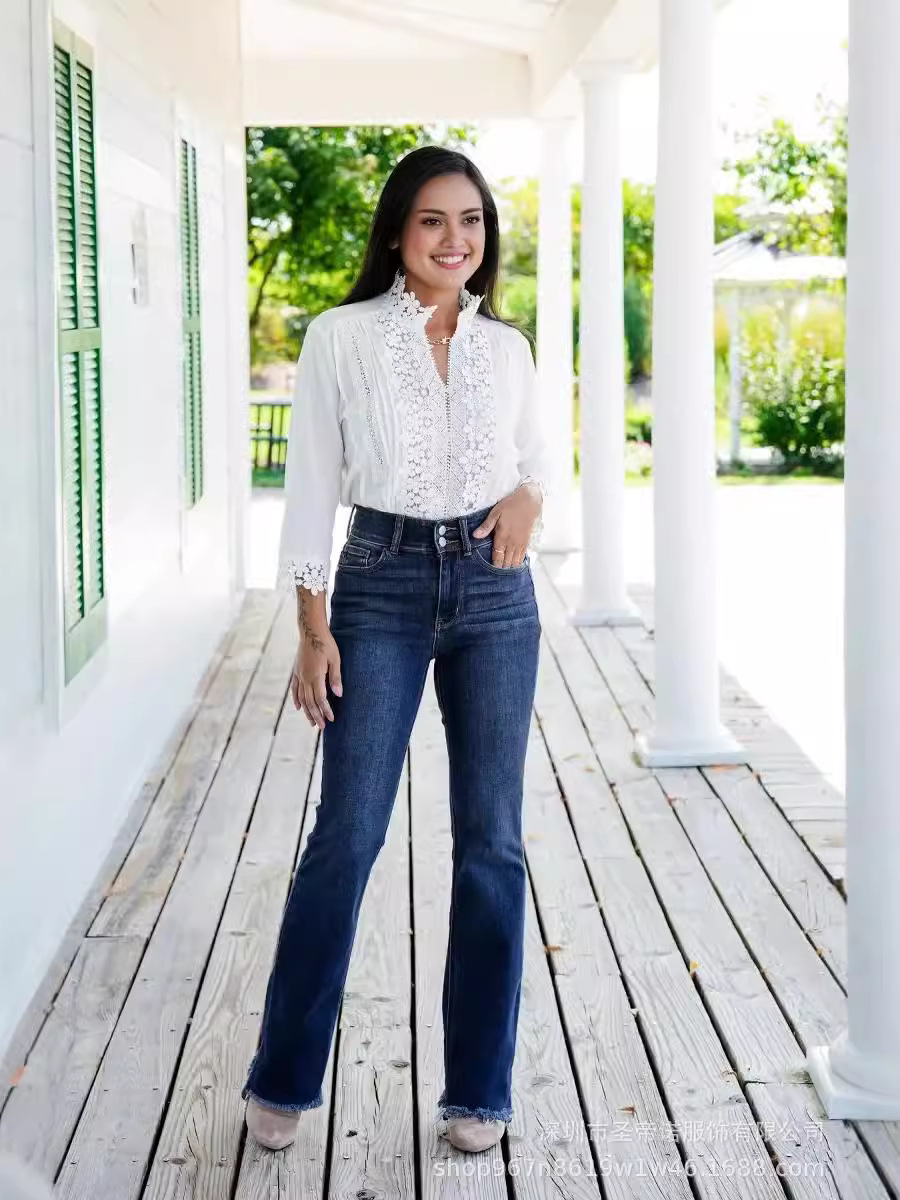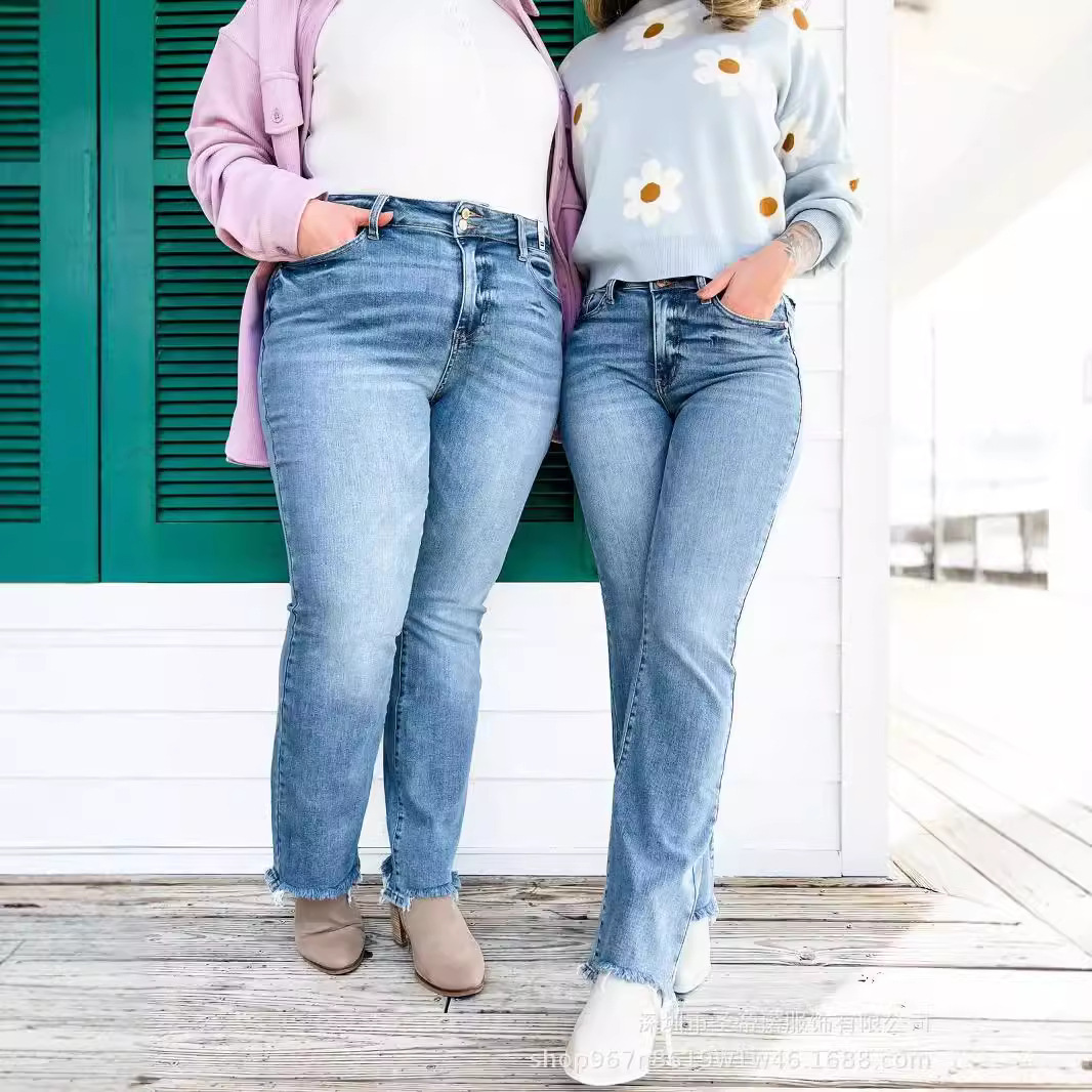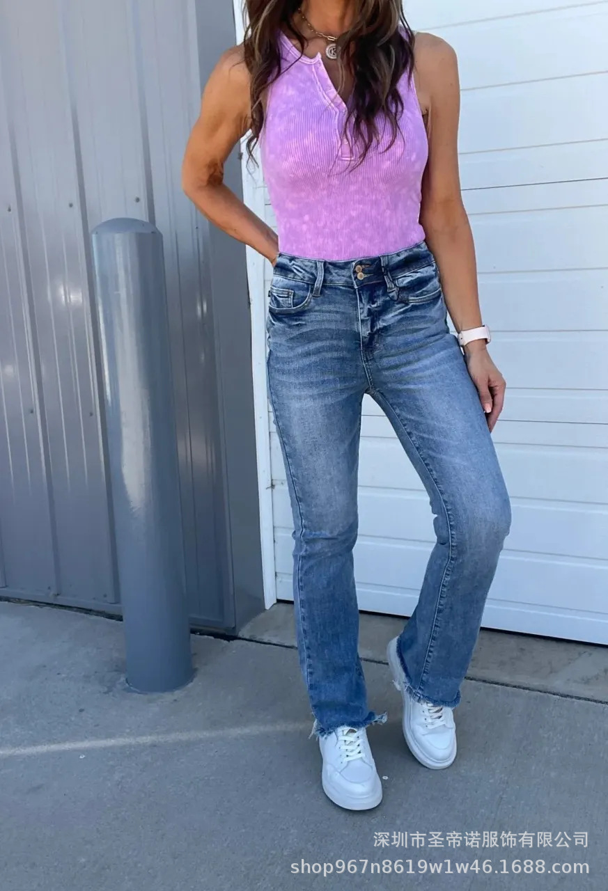 2024 새로운 유럽과 미국의 아마존 레트로 패션 편안한 더블 버튼 착용 가장자리 슬림 힙 청바지