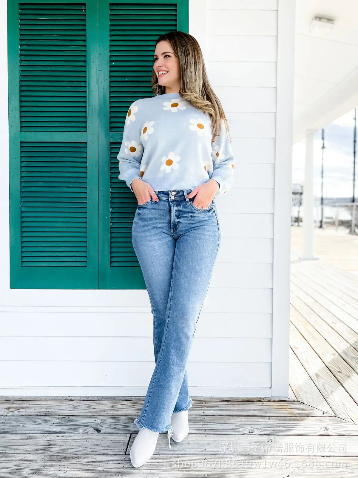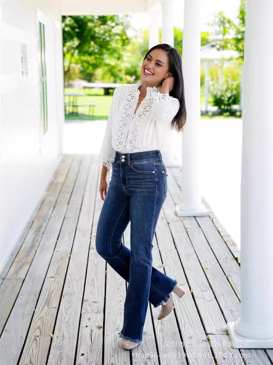 2024 새로운 유럽과 미국의 아마존 레트로 패션 편안한 더블 버튼 착용 가장자리 슬림 힙 청바지스토어 가기