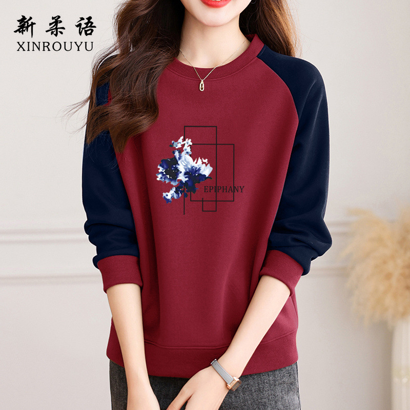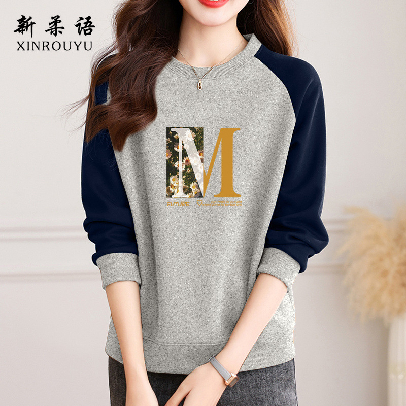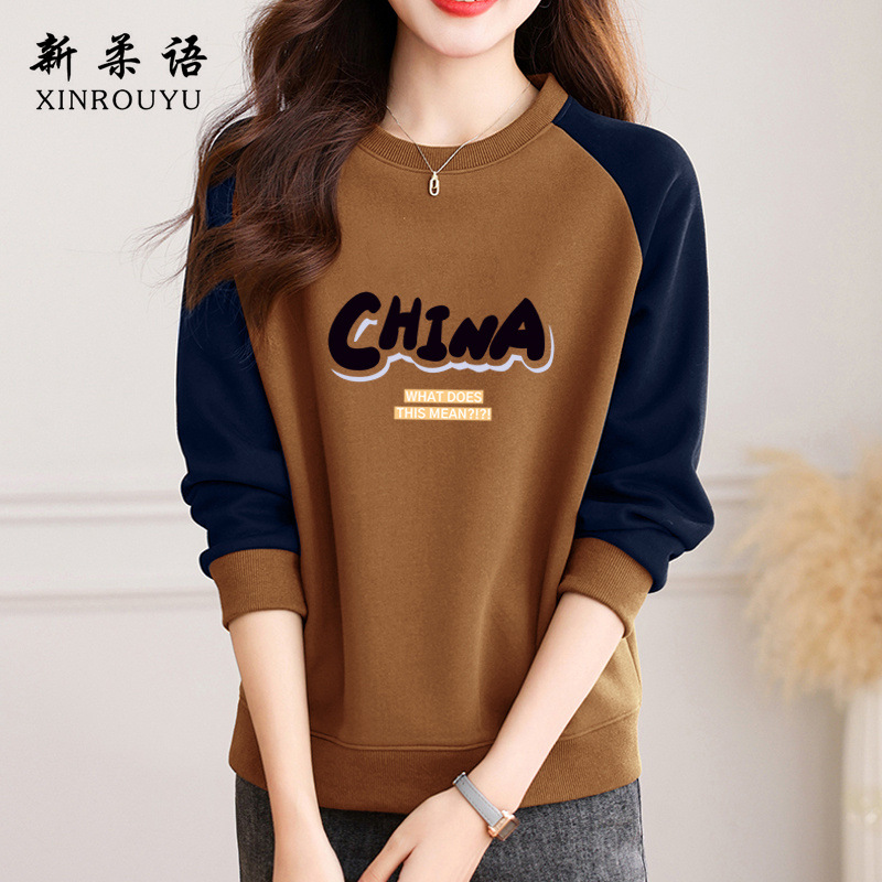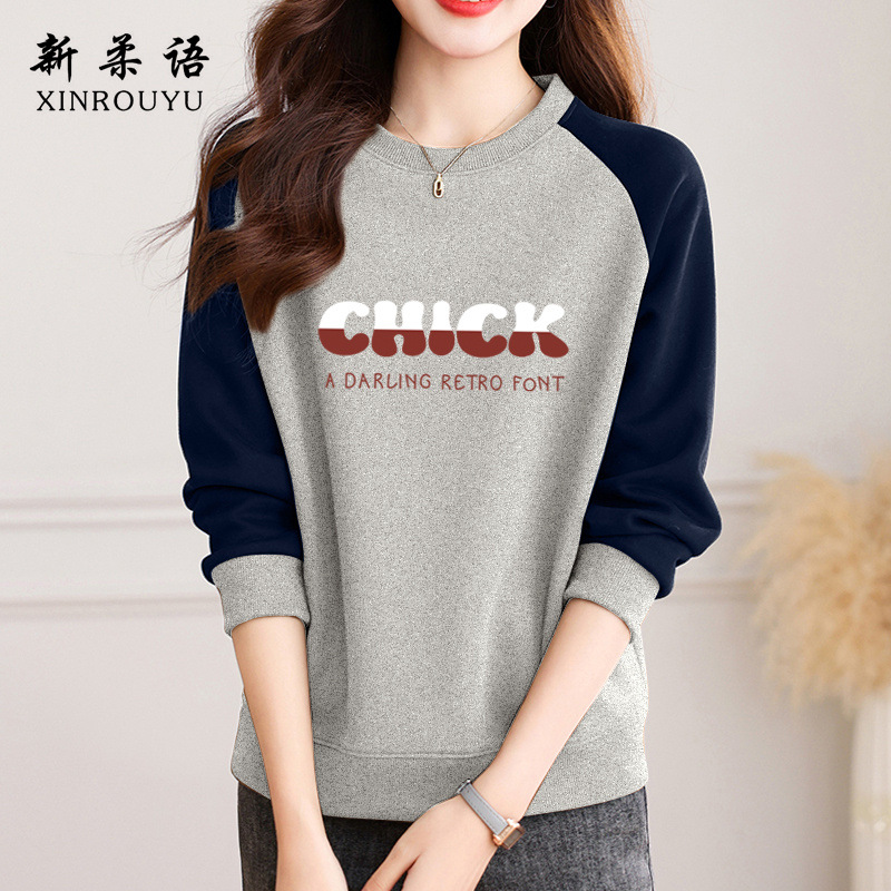 홍콩 스타일 세련된 크루 넥 땀 여성 봄 가을 겨울 라글란 슬리브 틈새 디자인 센스 루즈 아메리칸 스타일 레트로 무디 탑스토어 가기