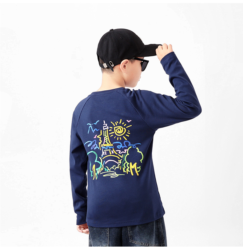 봄과 가을 한국 스타일 새로운 어린이 따뜻한 긴팔 티셔츠 중형 및 대형 어린이 면화 탑 소녀 바닥 셔츠 도매스토어 가기