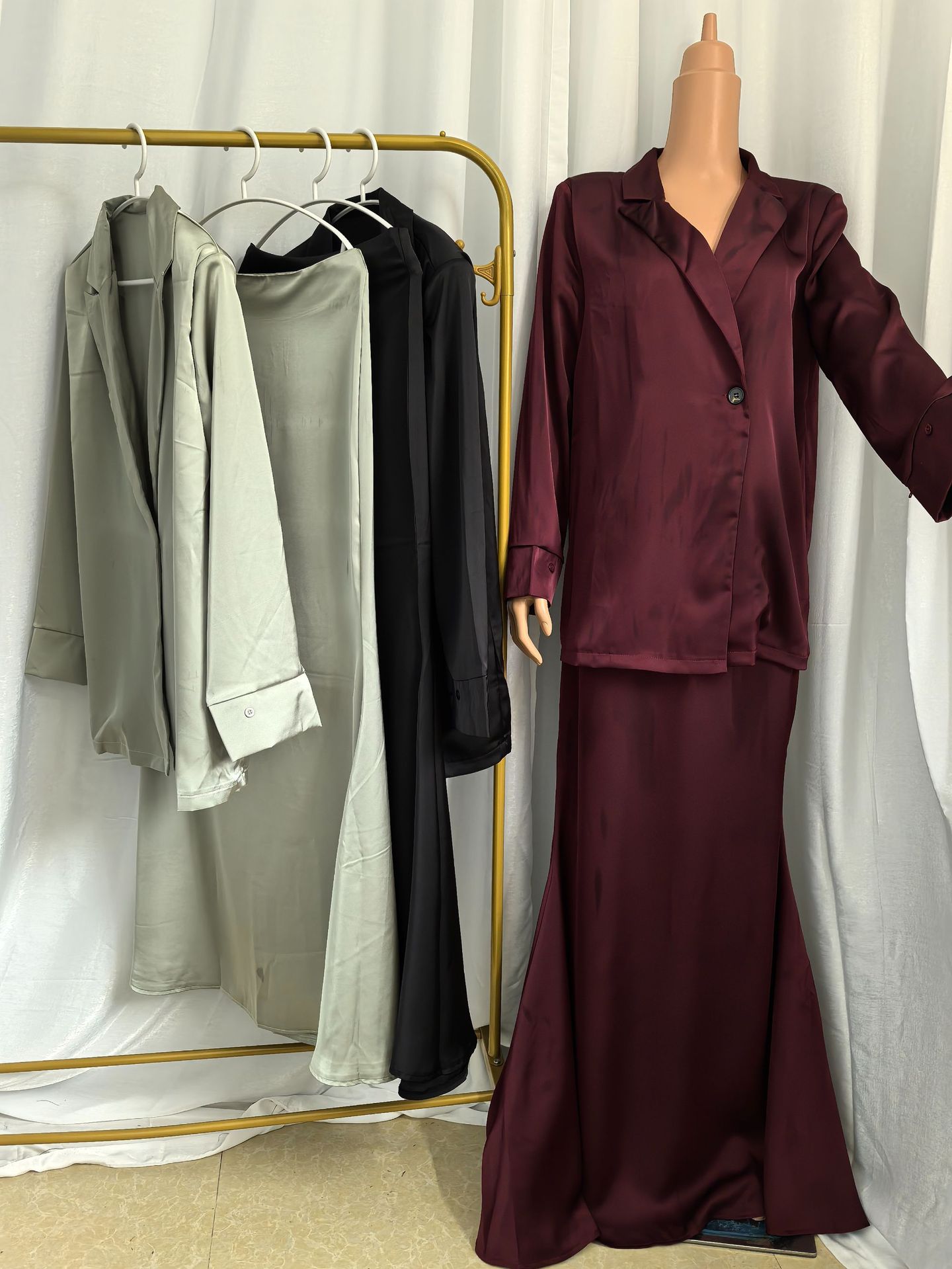 중동 아랍 정장 두바이 이슬람 새틴 셔츠 재킷 2025 봄 새 스커트