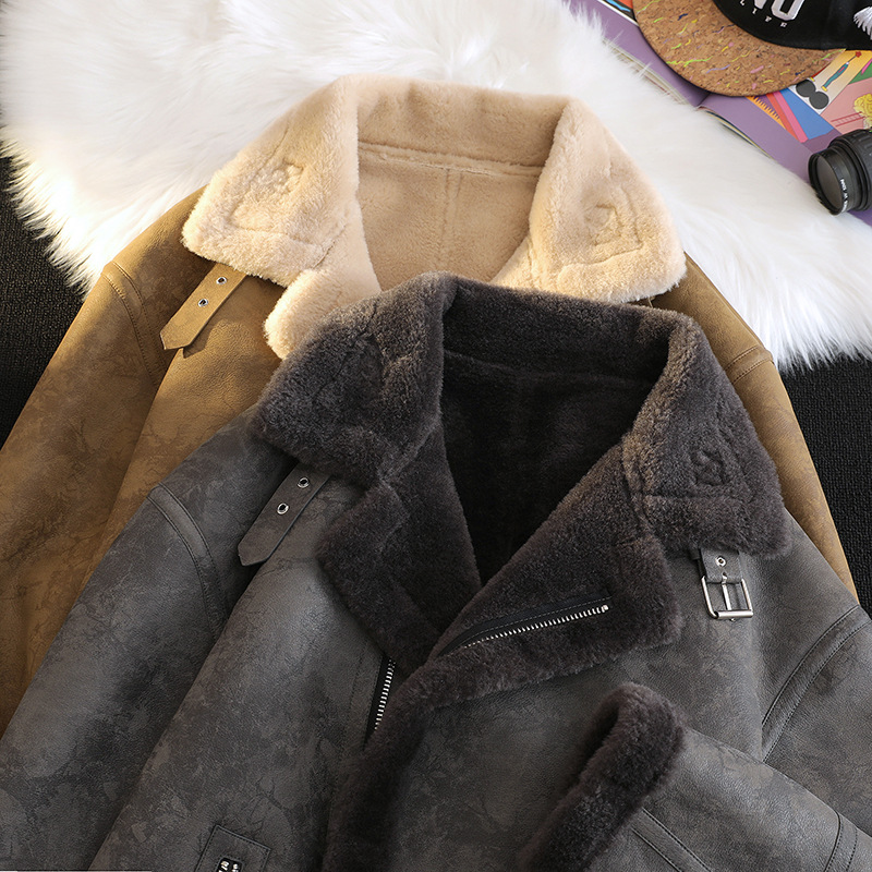 2024 겨울 새로운 남성 플러스 사이즈 가죽 재킷 캐주얼 느슨한 패션 모피 하나 기모 두꺼운 재킷스토어 가기