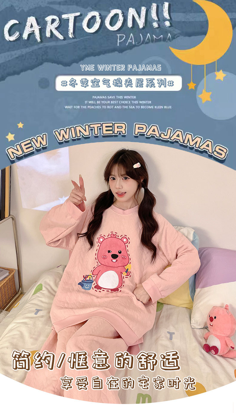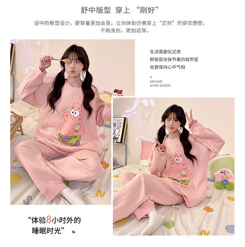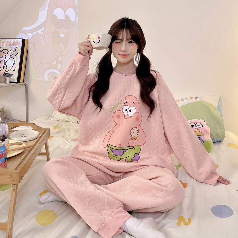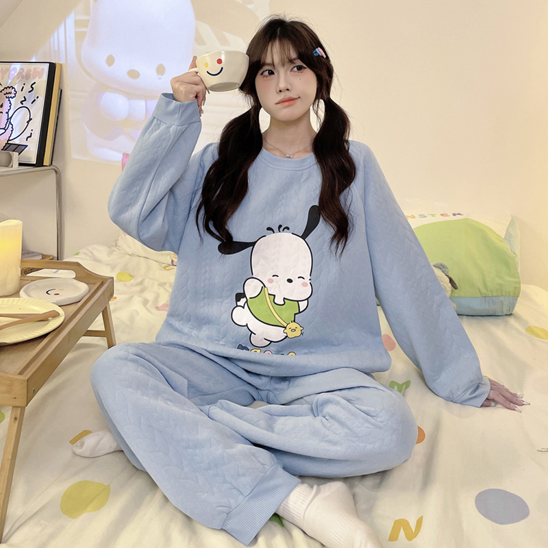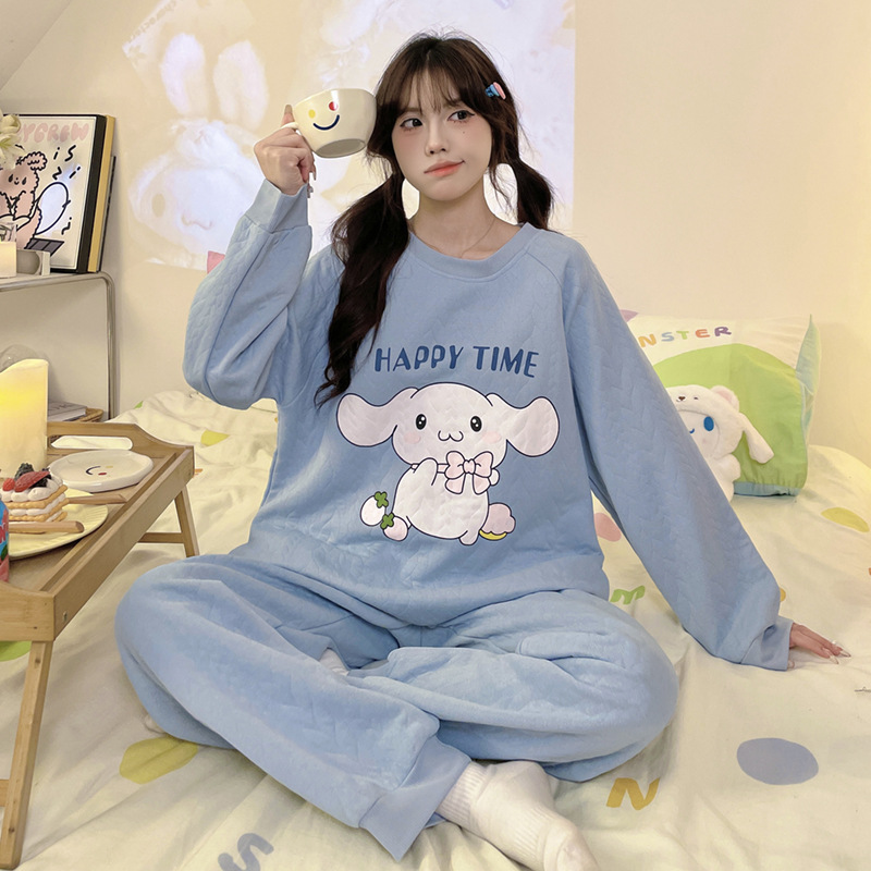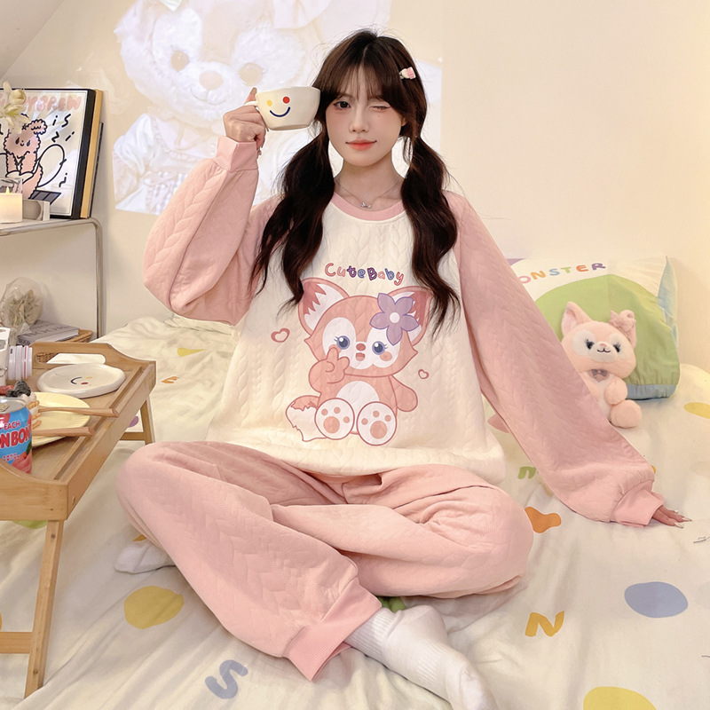 잠옷 여성의 가을과 겨울 인터 레이어 에어면 긴 소매 만화 달콤한 여자 중학생 18 세 소녀 홈 의류 세트스토어 가기