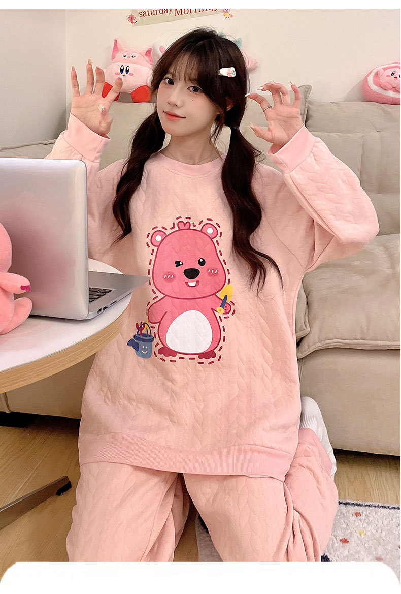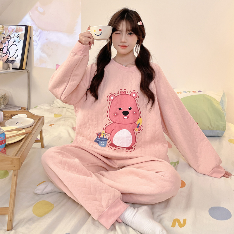 잠옷 여성의 가을과 겨울 인터 레이어 에어면 긴 소매 만화 달콤한 여자 중학생 18 세 소녀 홈 의류 세트