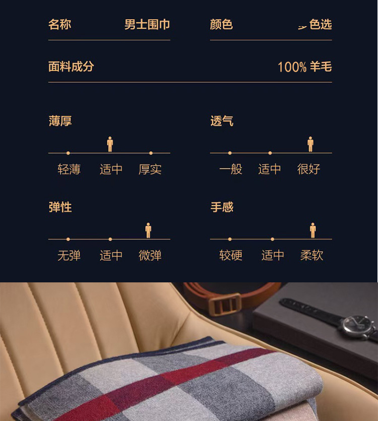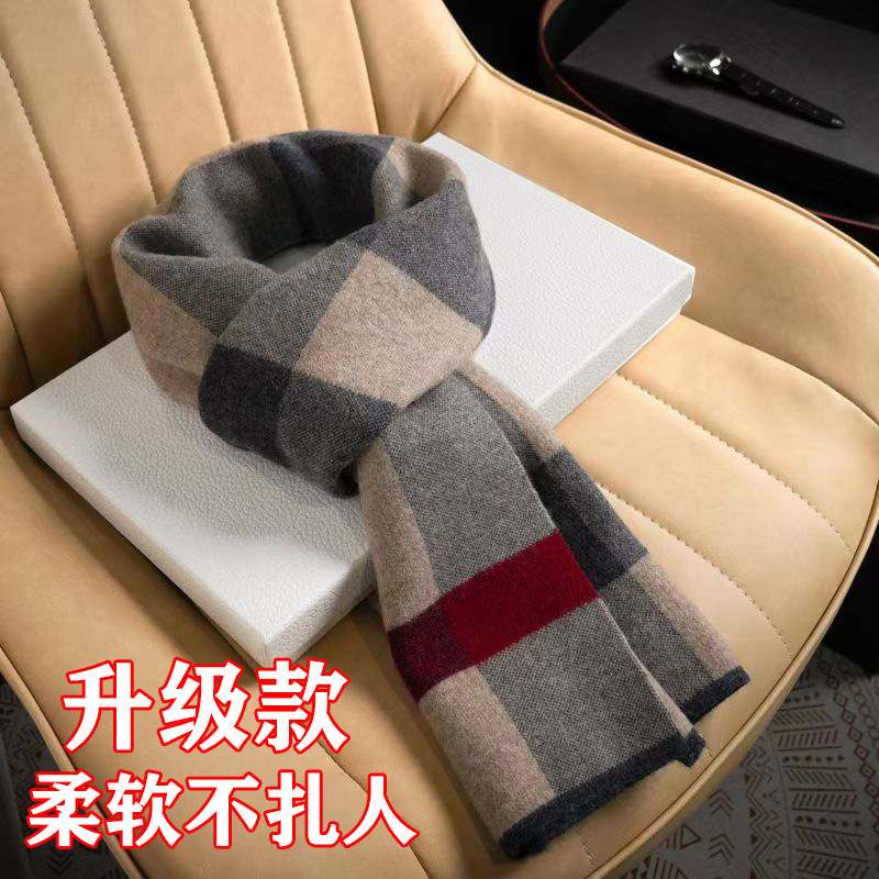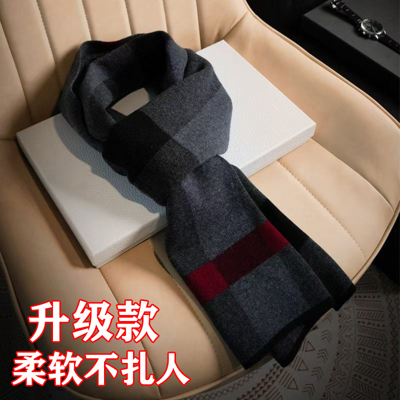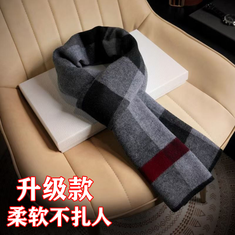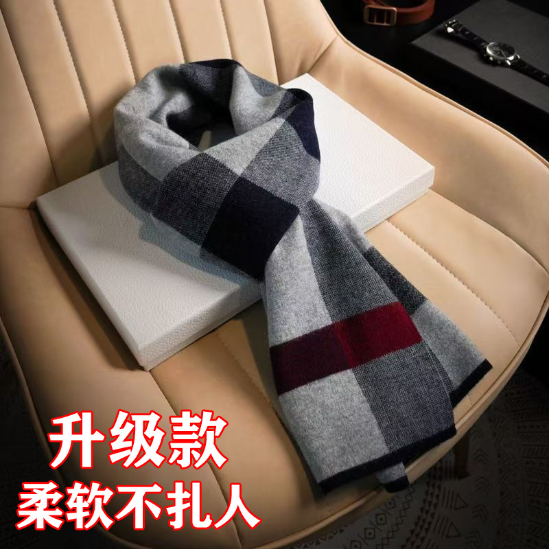 순수한 양모 남자의 스카프 겨울 격자 무늬 모든 경기 아빠의 생일 선물을위한 따뜻한 니트 스카프 선물 상자스토어 가기