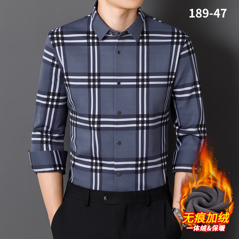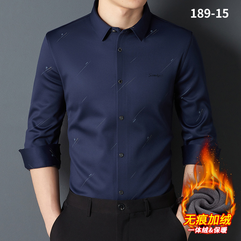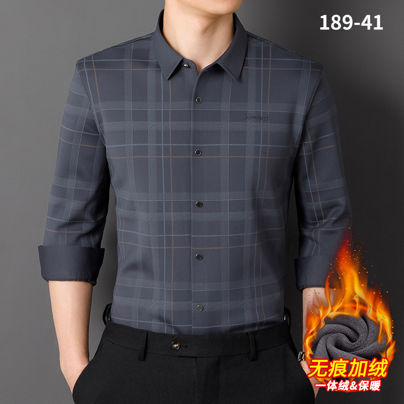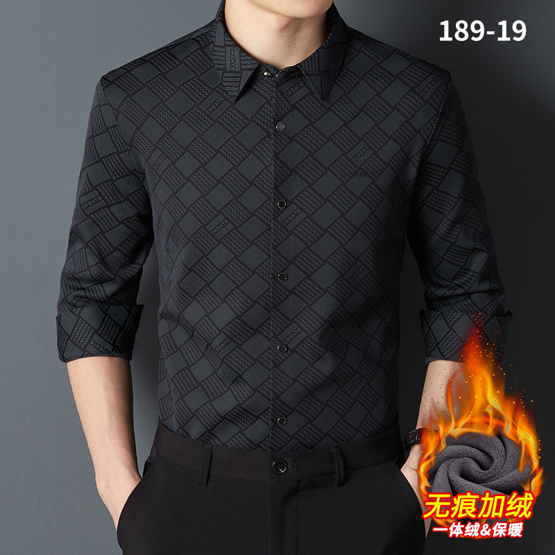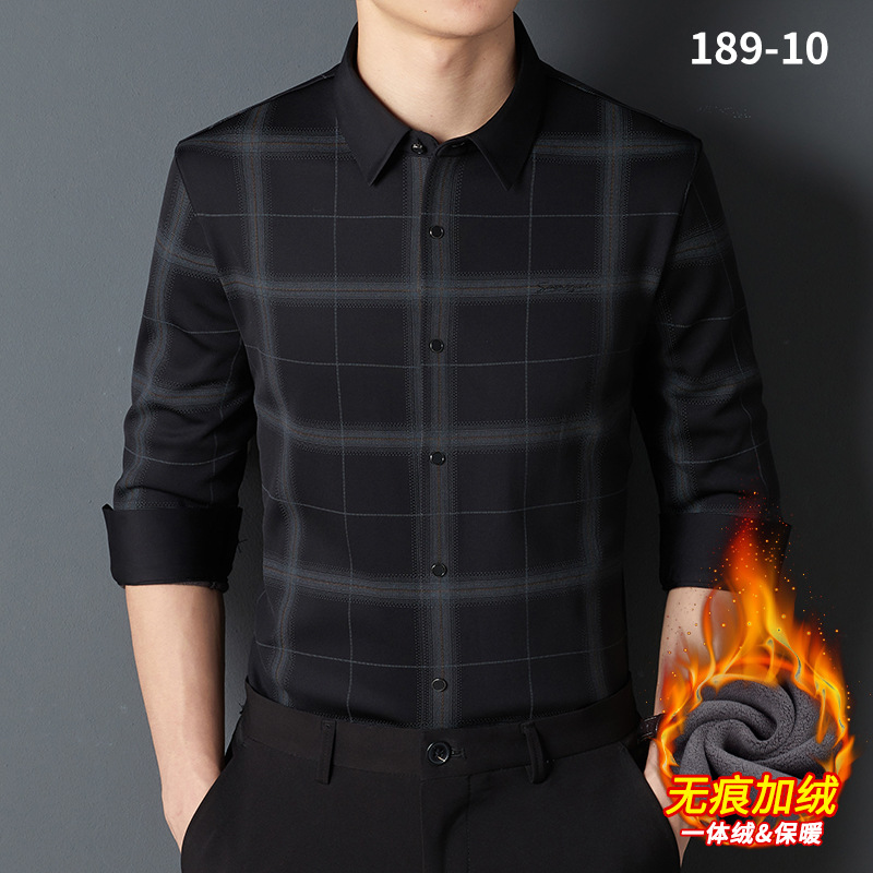 하이 엔드 남성 청소년 트렌디한 기모 두꺼운 하이 엔드 셔츠 긴 소매 가을 및 겨울 비즈니스 캐주얼 패션 아빠 셔츠 트렌디스토어 가기