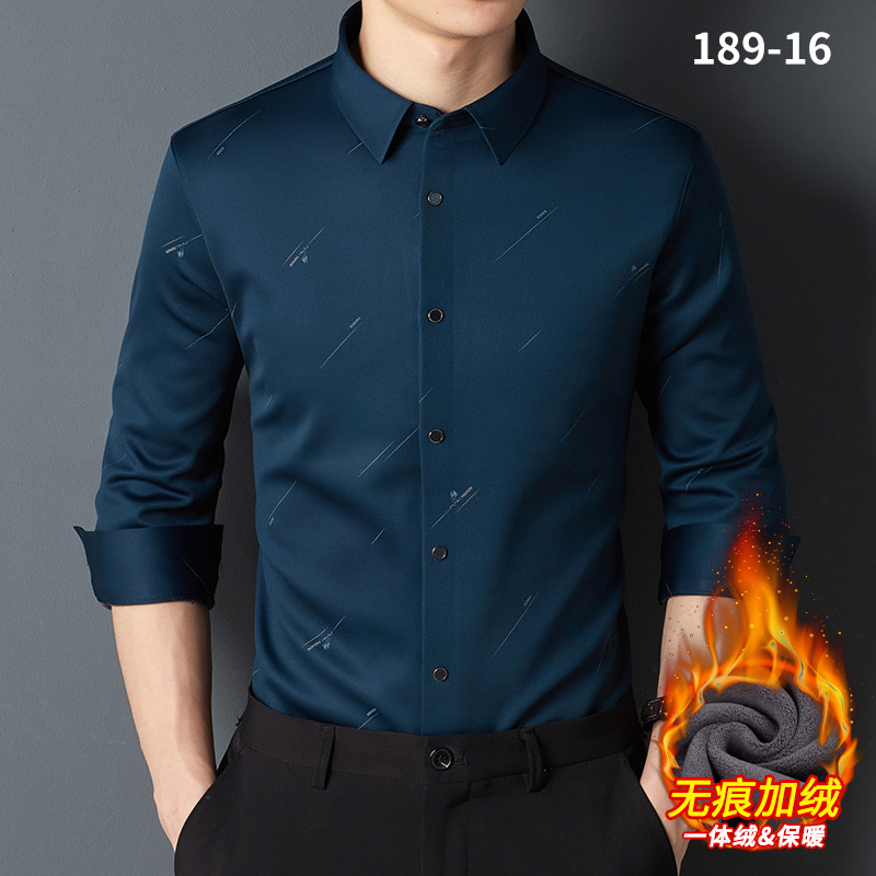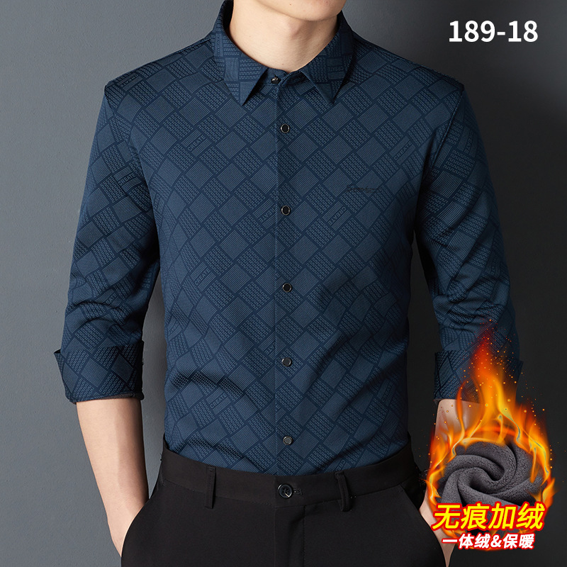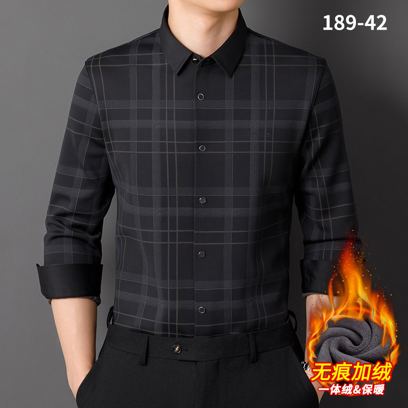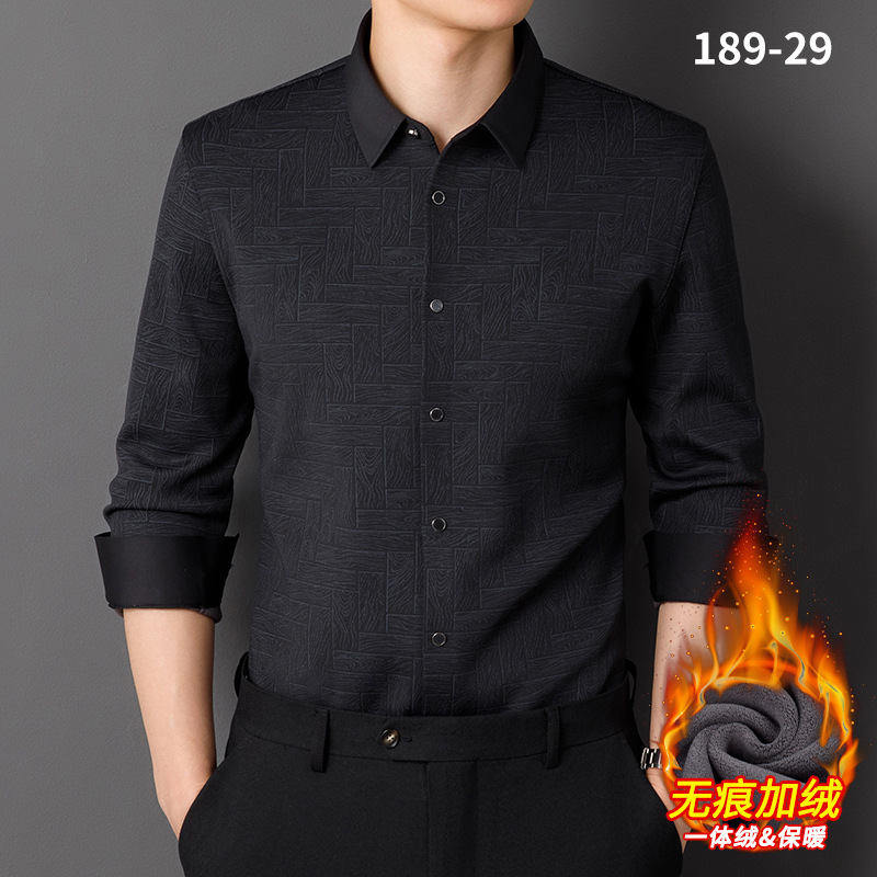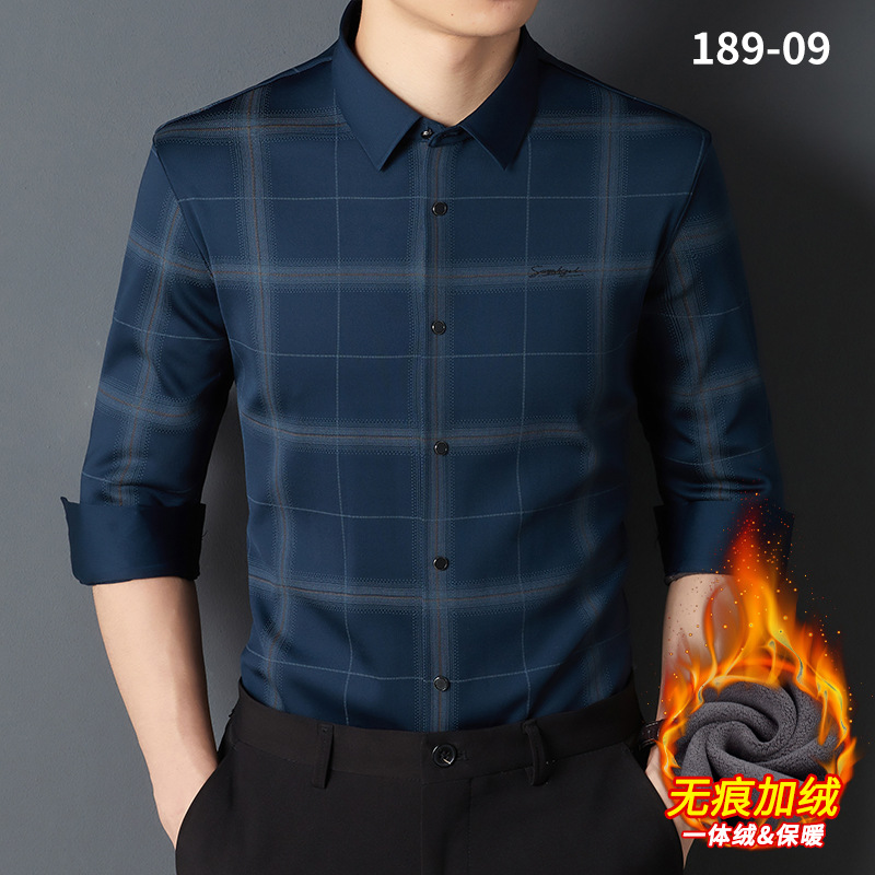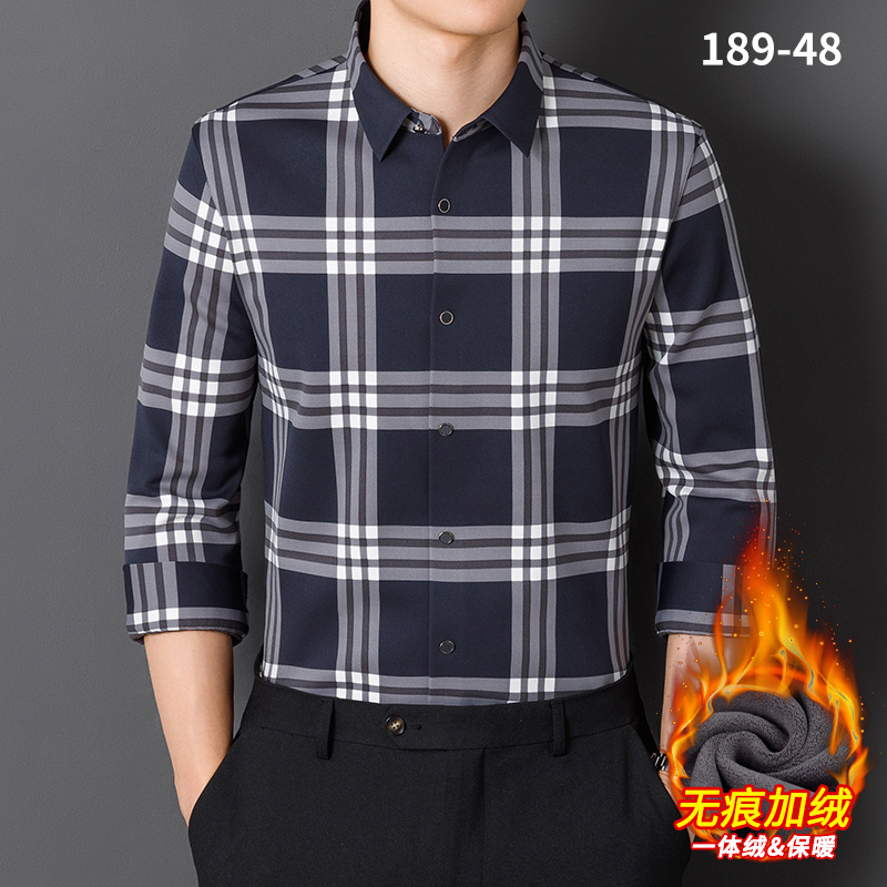 하이 엔드 남성 청소년 트렌디한 기모 두꺼운 하이 엔드 셔츠 긴 소매 가을 및 겨울 비즈니스 캐주얼 패션 아빠 셔츠 트렌디스토어 가기