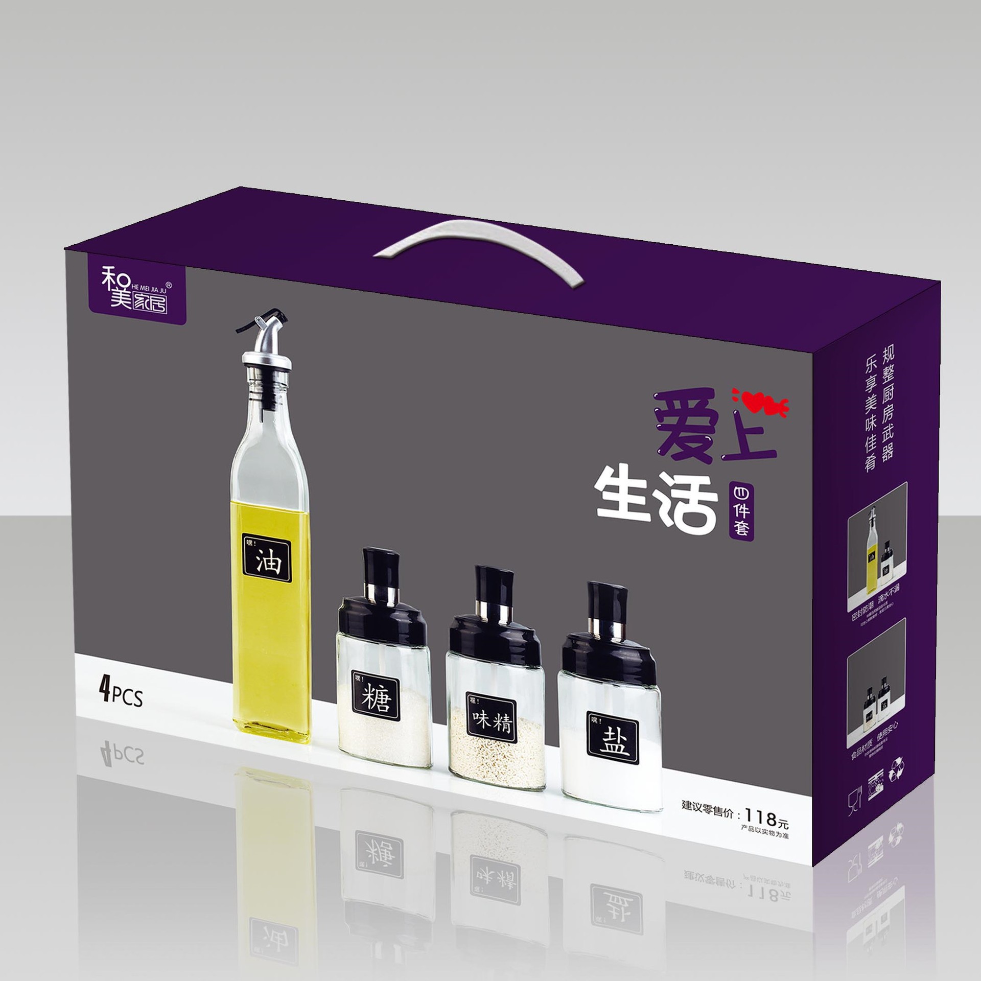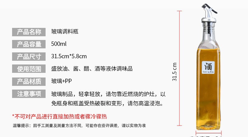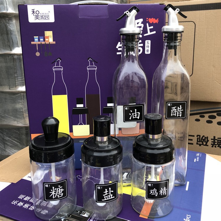 Hemei 가정용 제품 유리 오일 포트 라이프 시리즈 5 조각 유리 창조적 인 오일 병 주방 조미료 병과 사랑에 빠지다스토어 가기