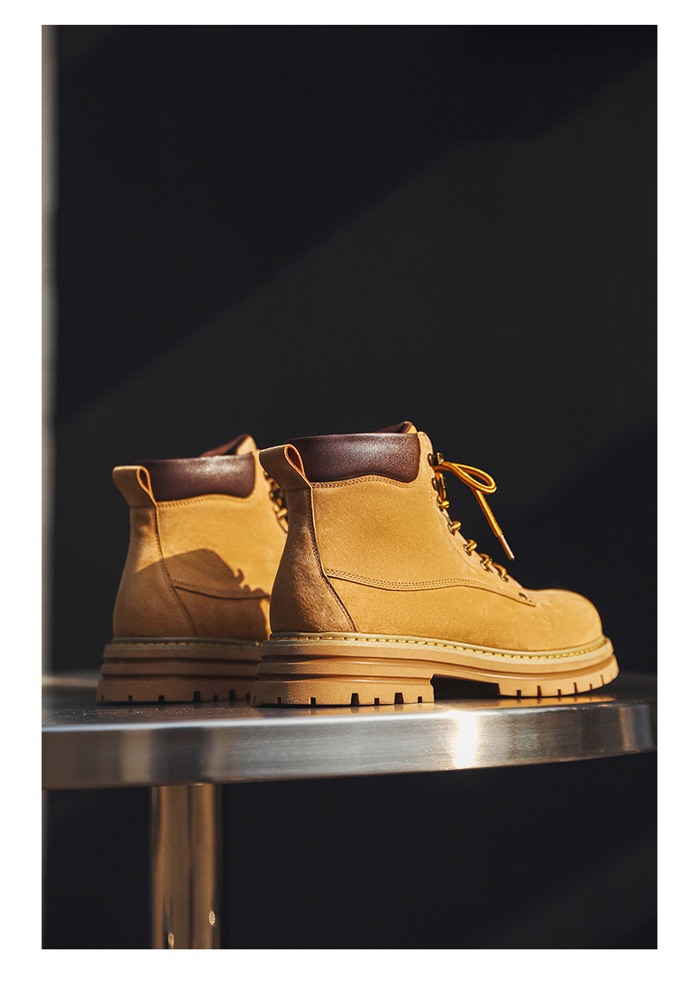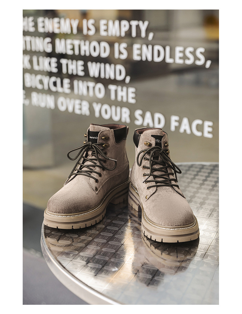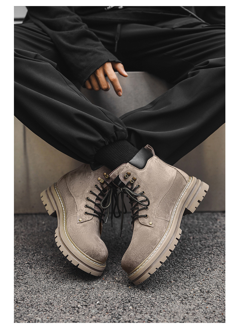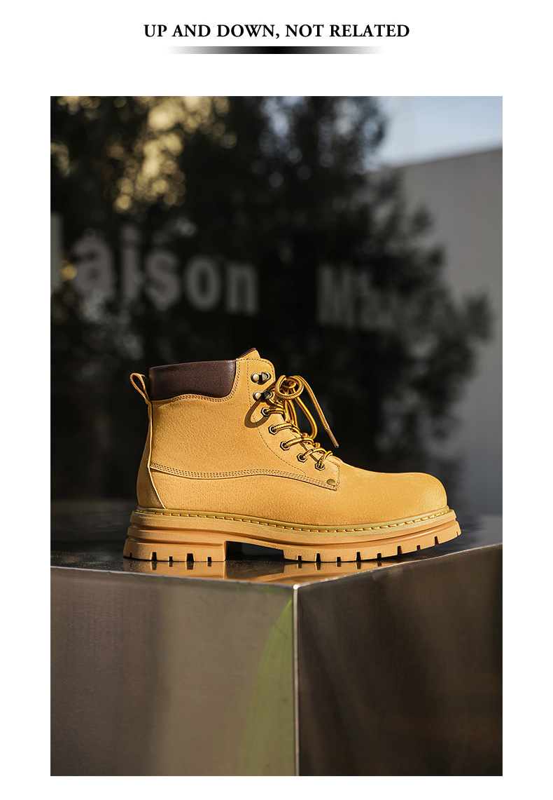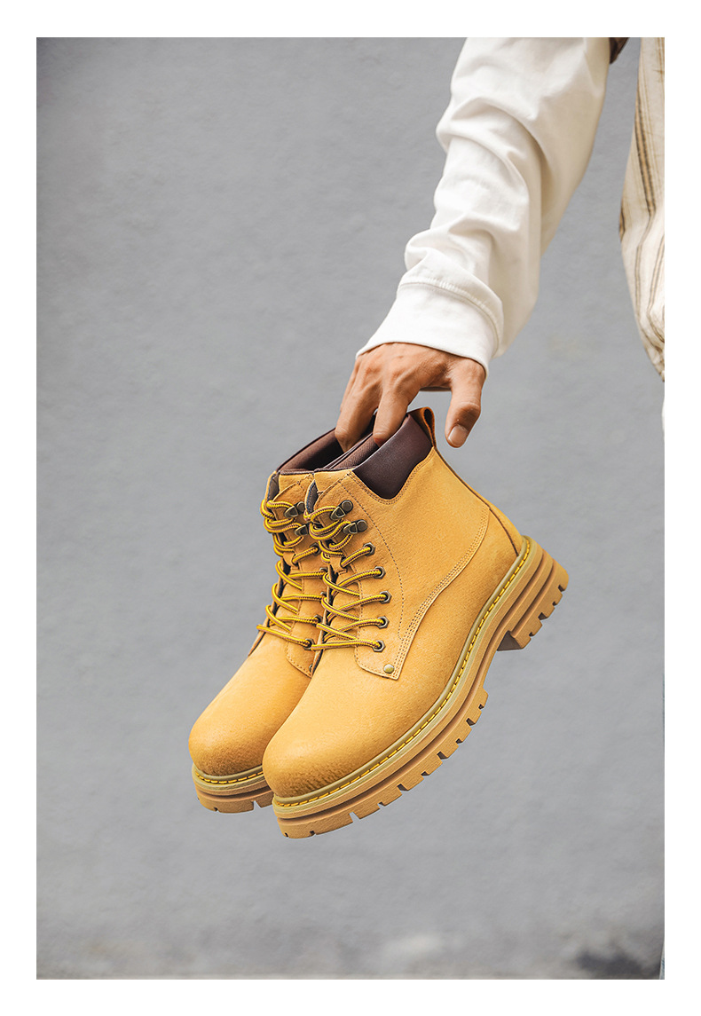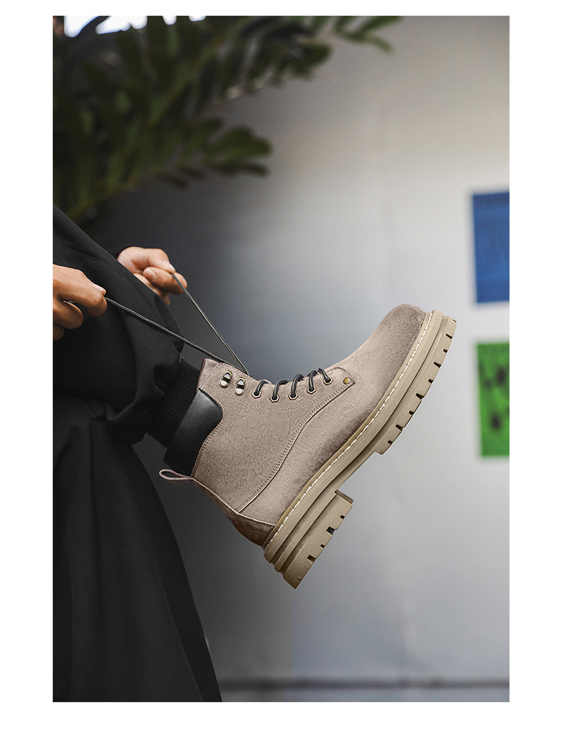 남성과 여성을위한 두꺼운 밑창 높이 증가 대황 부츠 가을 새로운 마틴 부츠 캐주얼 등산 발 차기 범블비 드레스 부츠