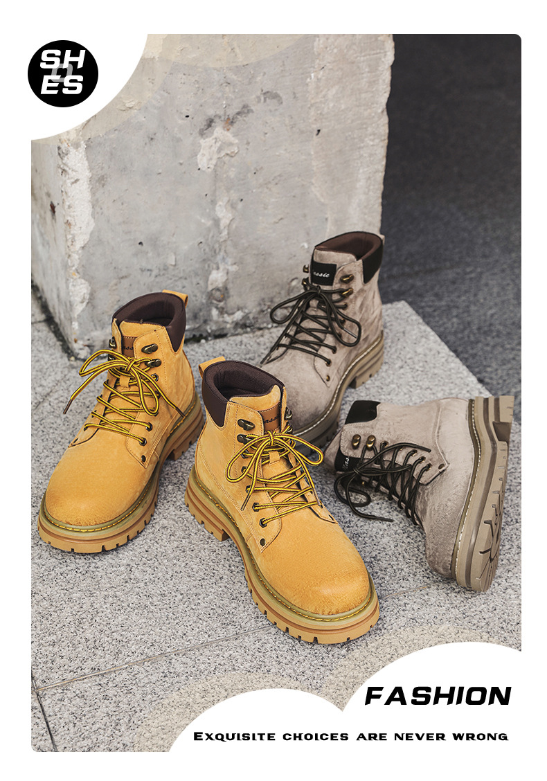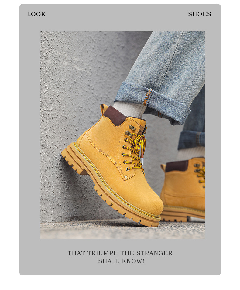 남성과 여성을위한 두꺼운 밑창 높이 증가 대황 부츠 가을 새로운 마틴 부츠 캐주얼 등산 발 차기 범블비 드레스 부츠스토어 가기