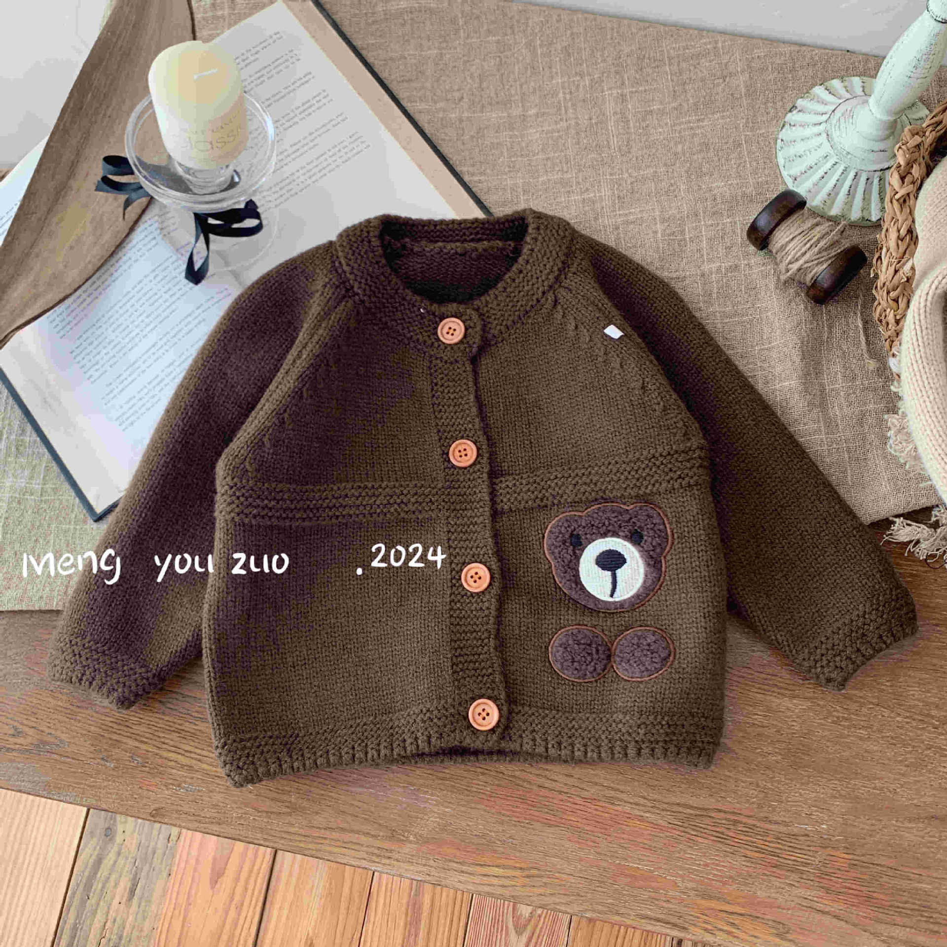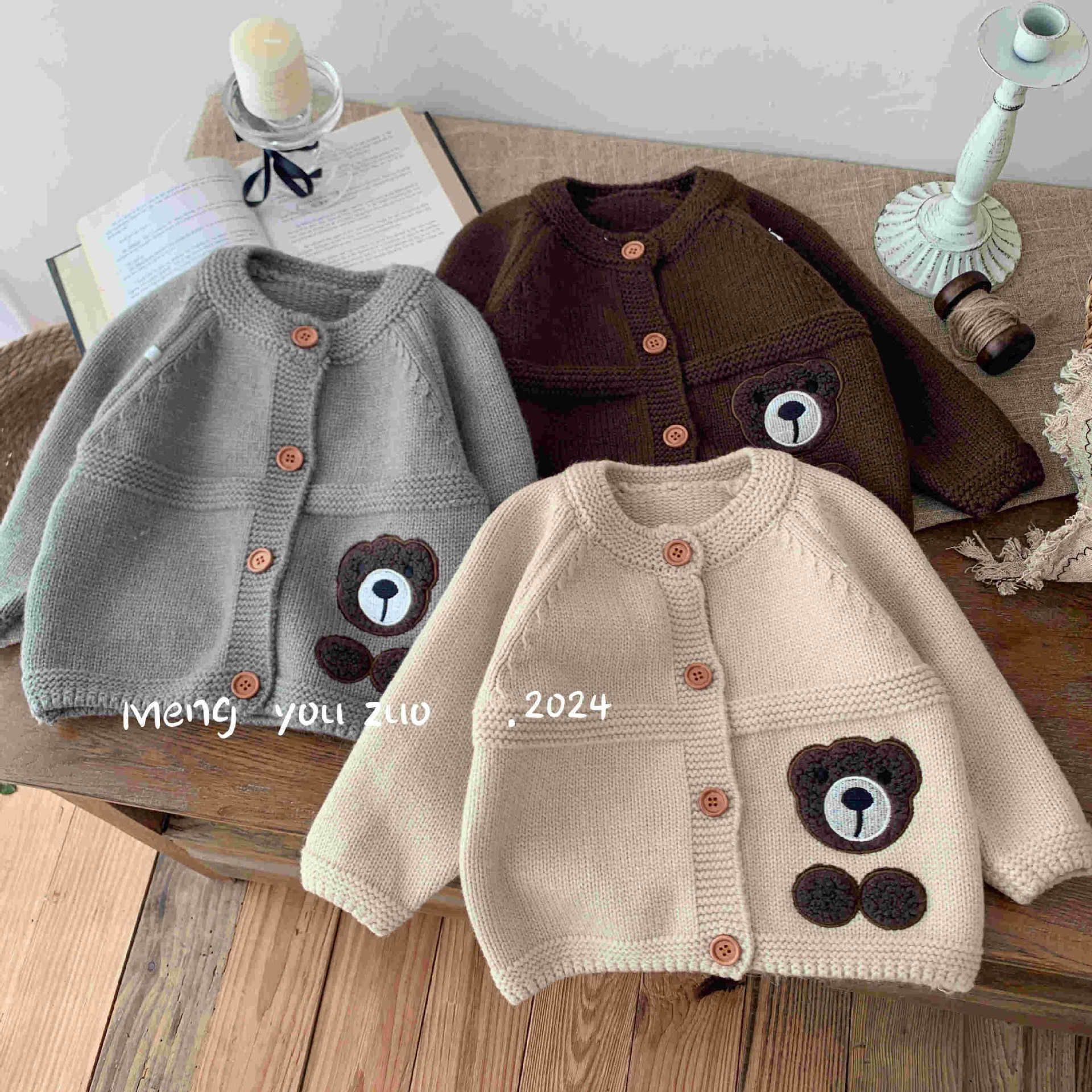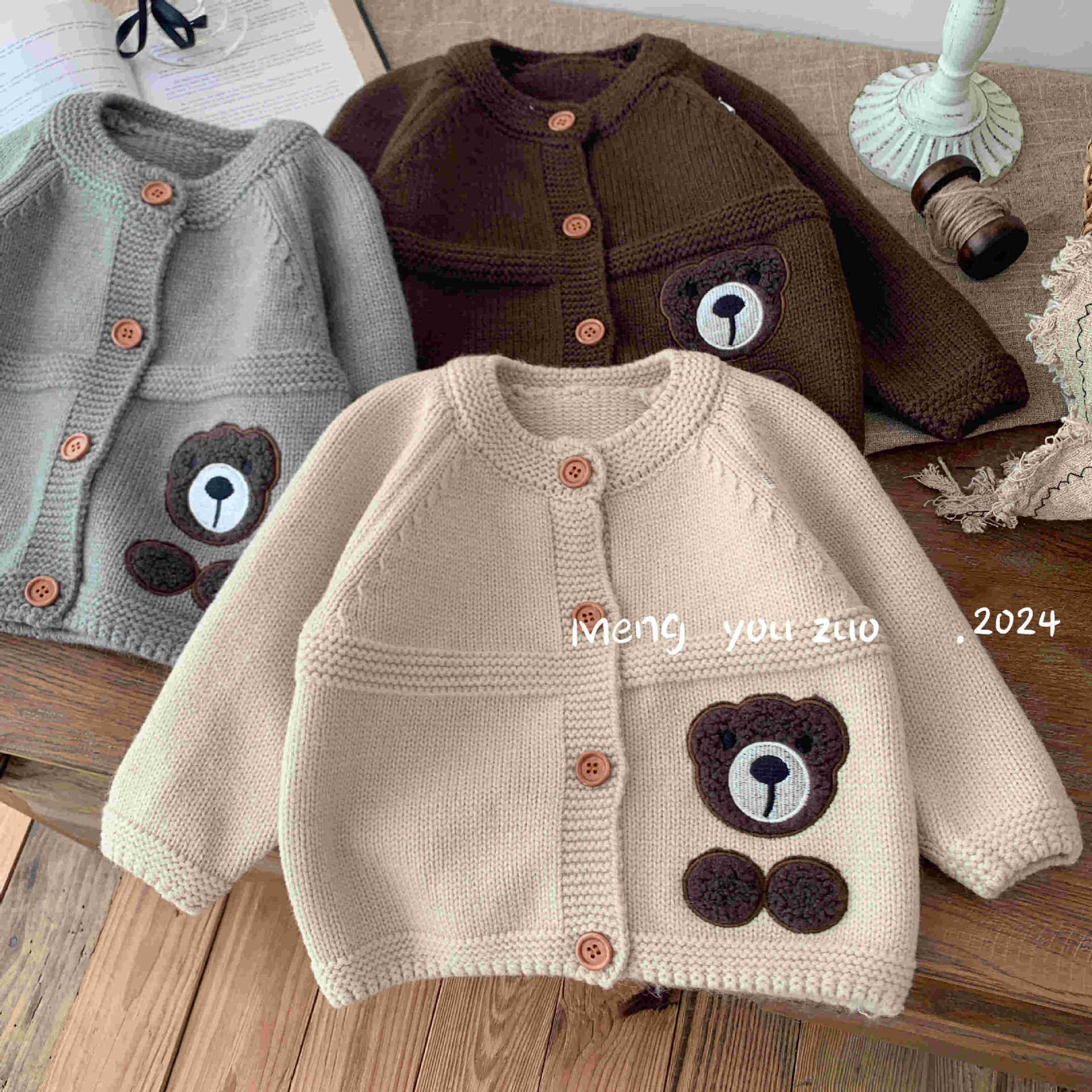 (직배송) 아동 니트 스웨터 긴팔 가디건 남아 여아 만화 곰 다크톤 아동복 유아동