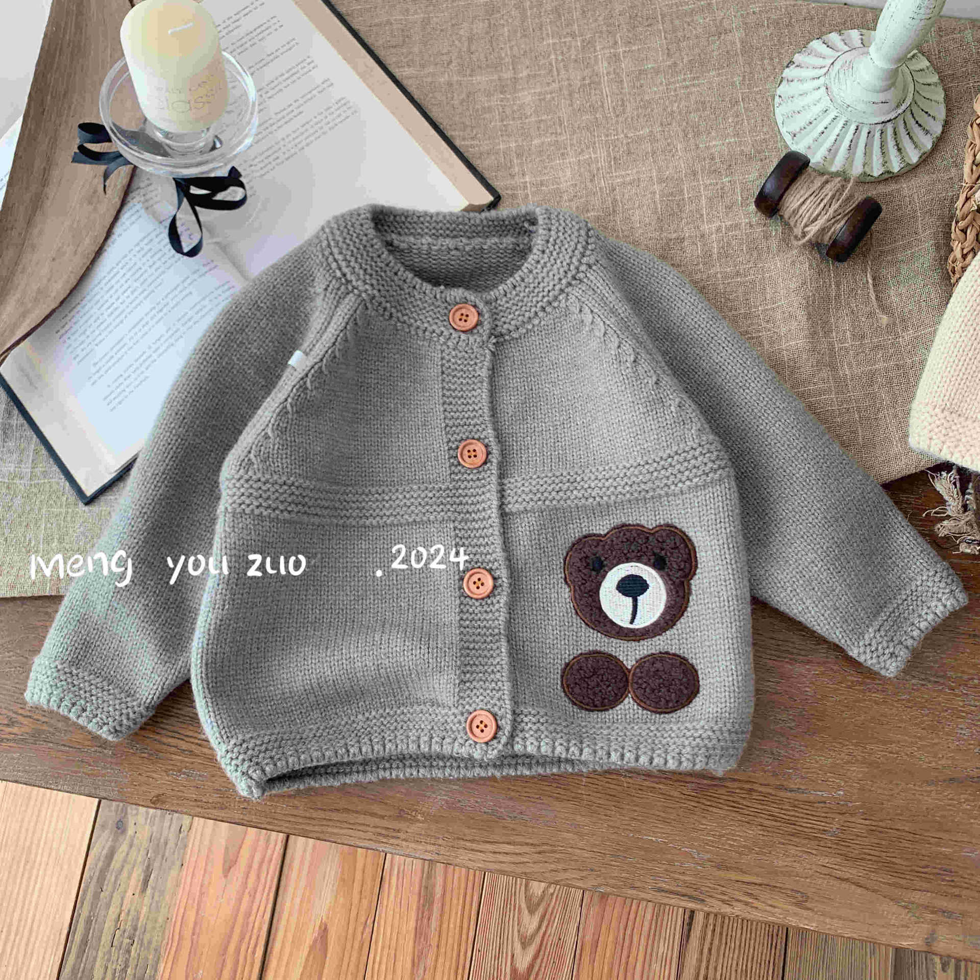(직배송) 아동 니트 스웨터 긴팔 가디건 남아 여아 만화 곰 다크톤 아동복 유아동스토어 가기