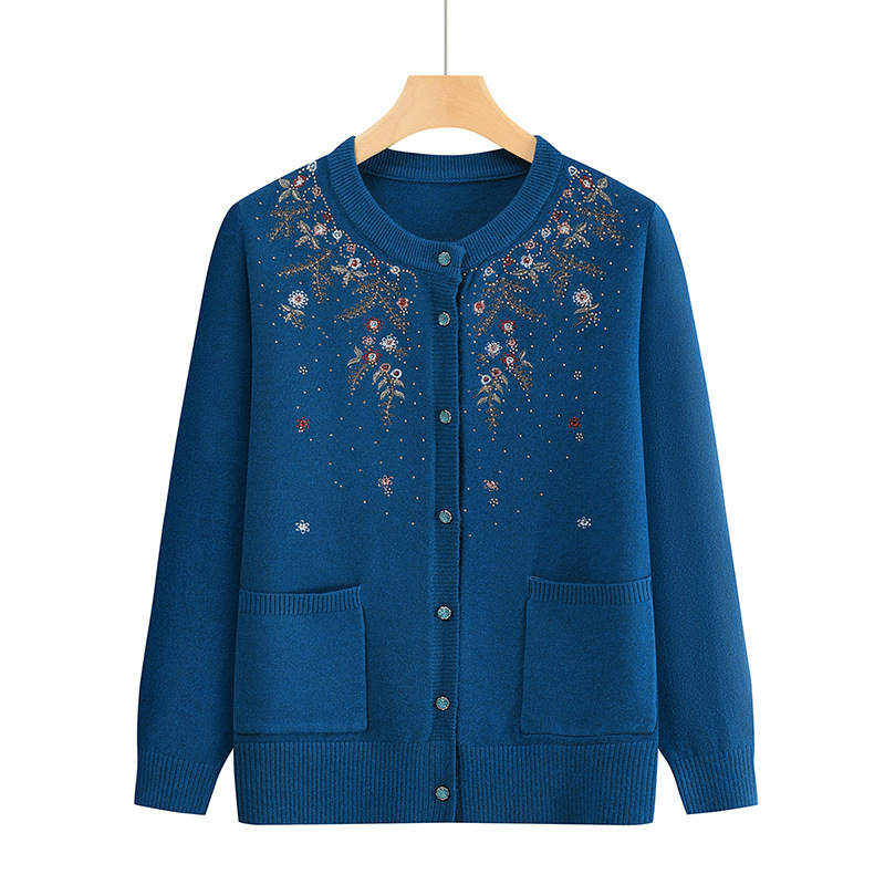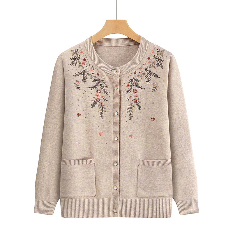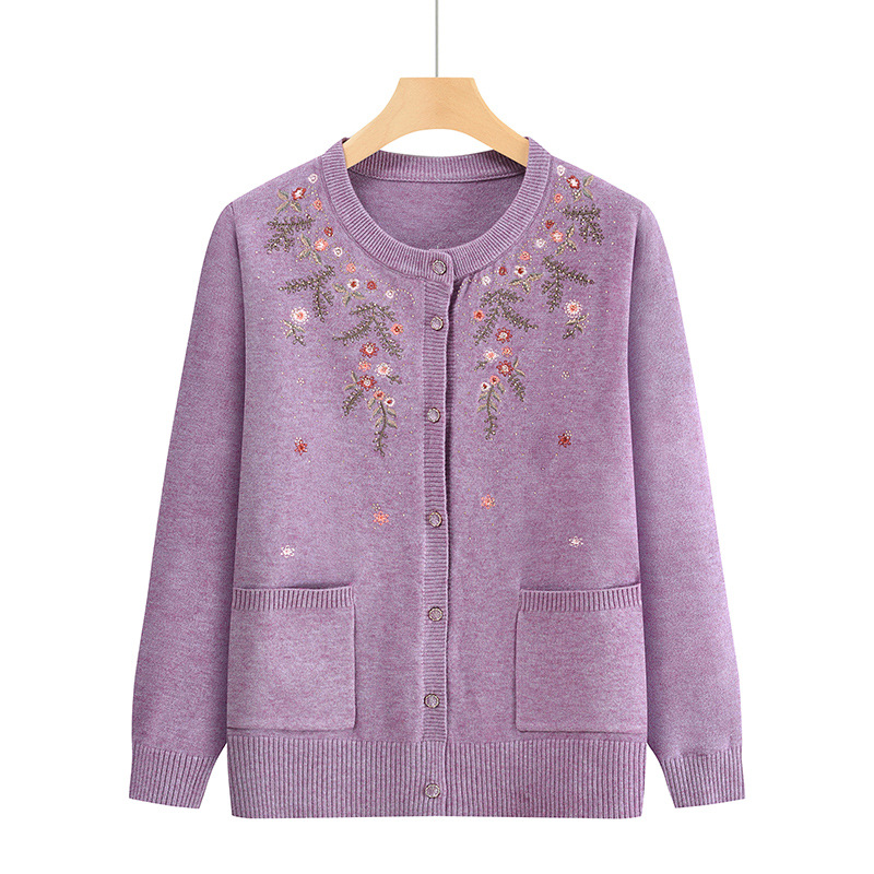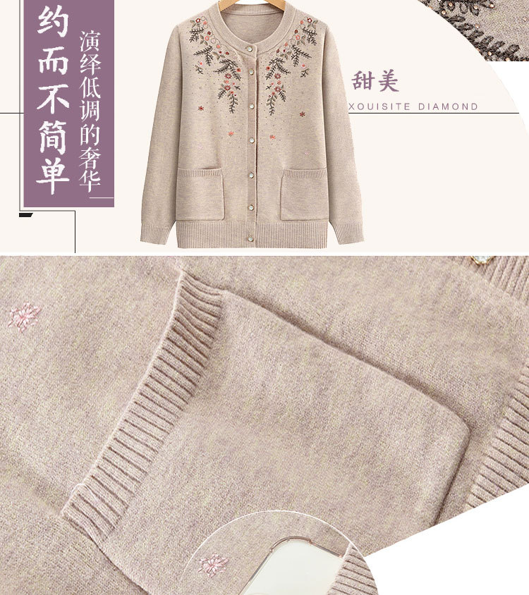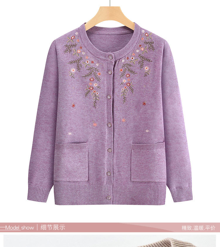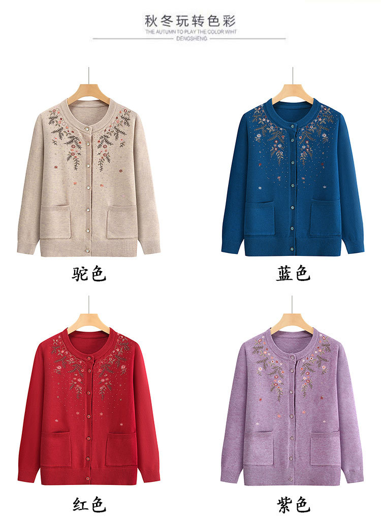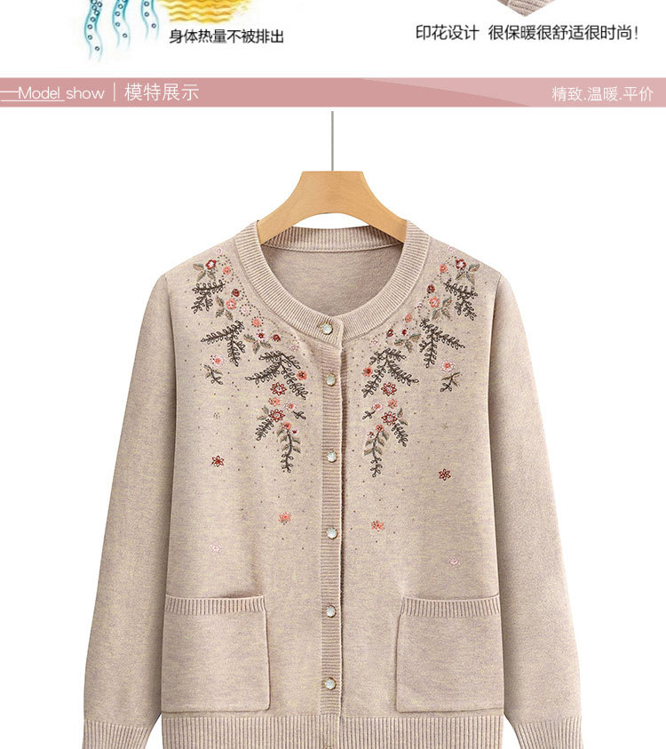 중년 어머니의 가을과 겨울 니트 카디건 올드 레이디 스웨터 라운드 넥 인쇄 느슨한 캐주얼 편안한 여성용 스웨터