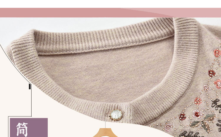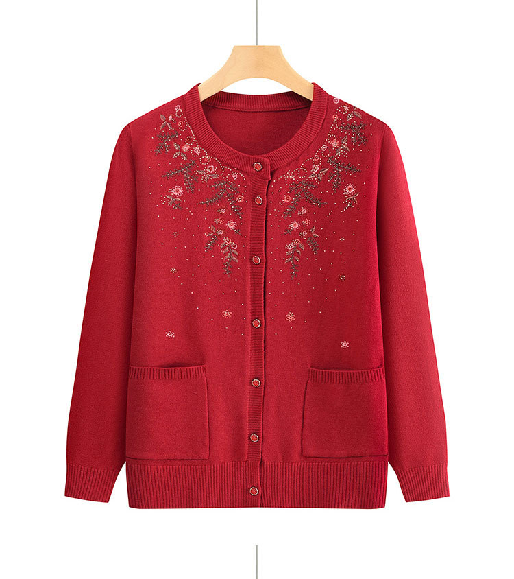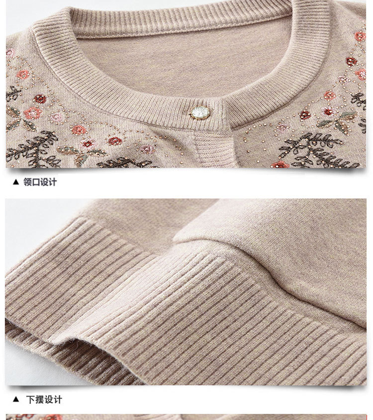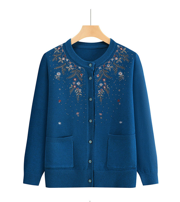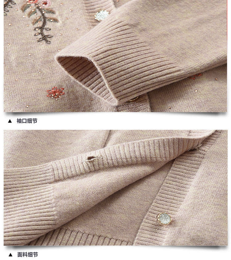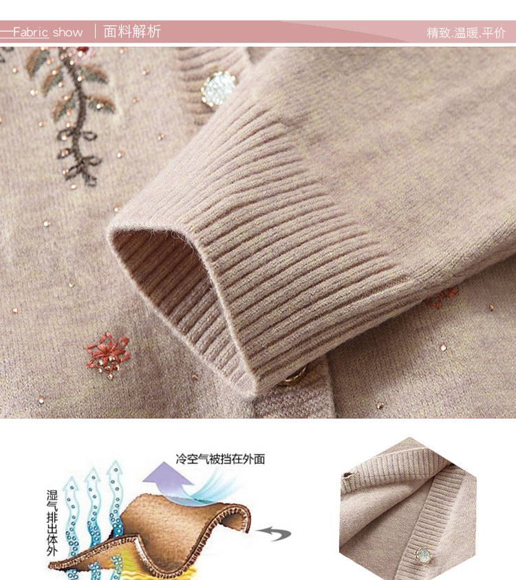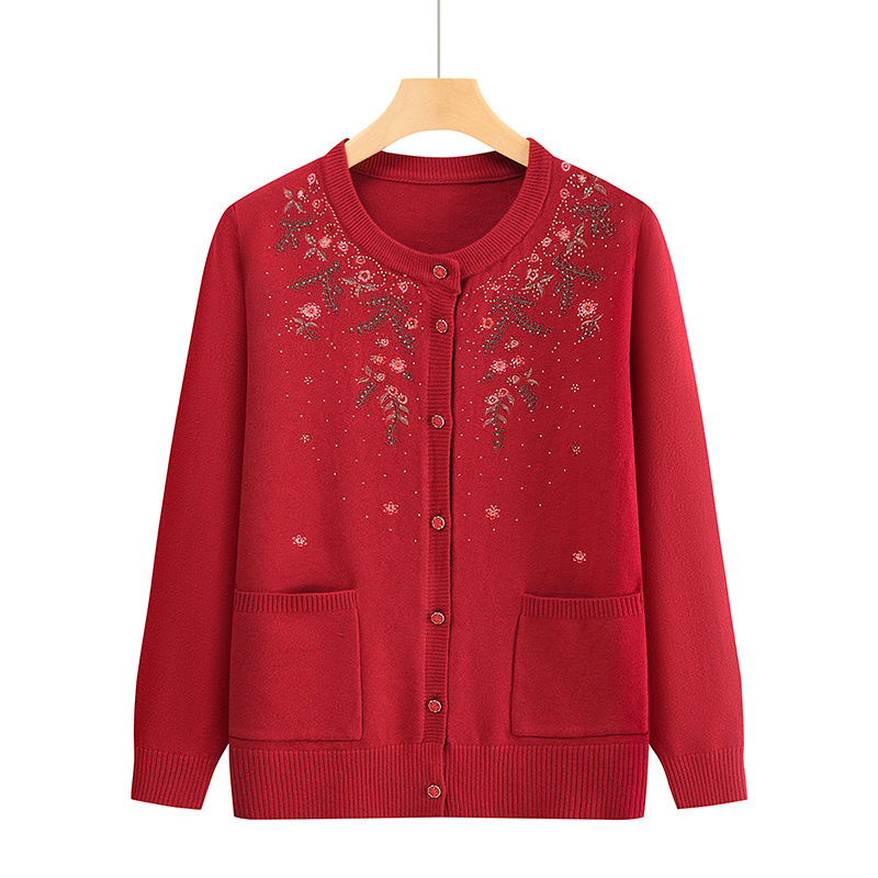 중년 어머니의 가을과 겨울 니트 카디건 올드 레이디 스웨터 라운드 넥 인쇄 느슨한 캐주얼 편안한 여성용 스웨터