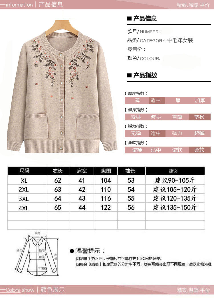 중년 어머니의 가을과 겨울 니트 카디건 올드 레이디 스웨터 라운드 넥 인쇄 느슨한 캐주얼 편안한 여성용 스웨터스토어 가기