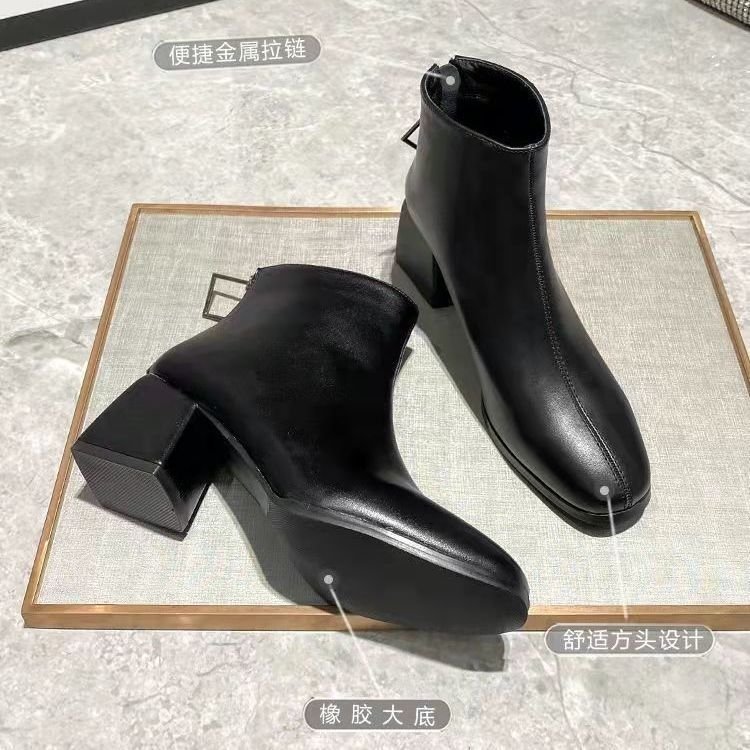 인기있는 편안한 올 매치 마틴 부츠 여자 2024 가을 및 겨울 새로운 도착 두꺼운 힐 짧은 부츠 유행 우아한 얇은 부츠 여성 트렌디스토어 가기