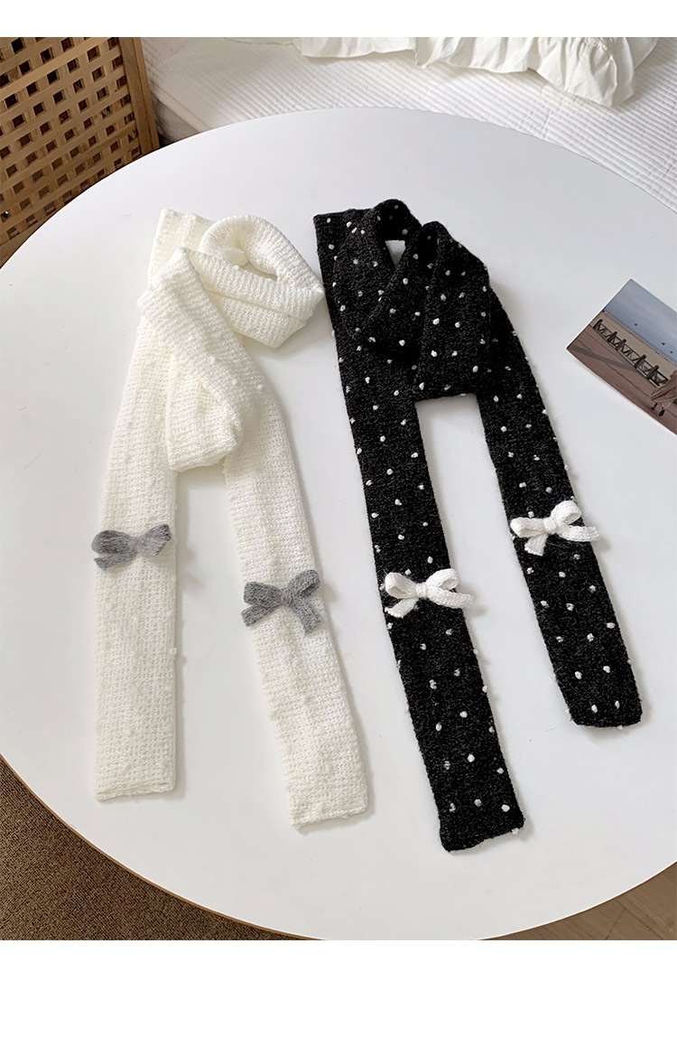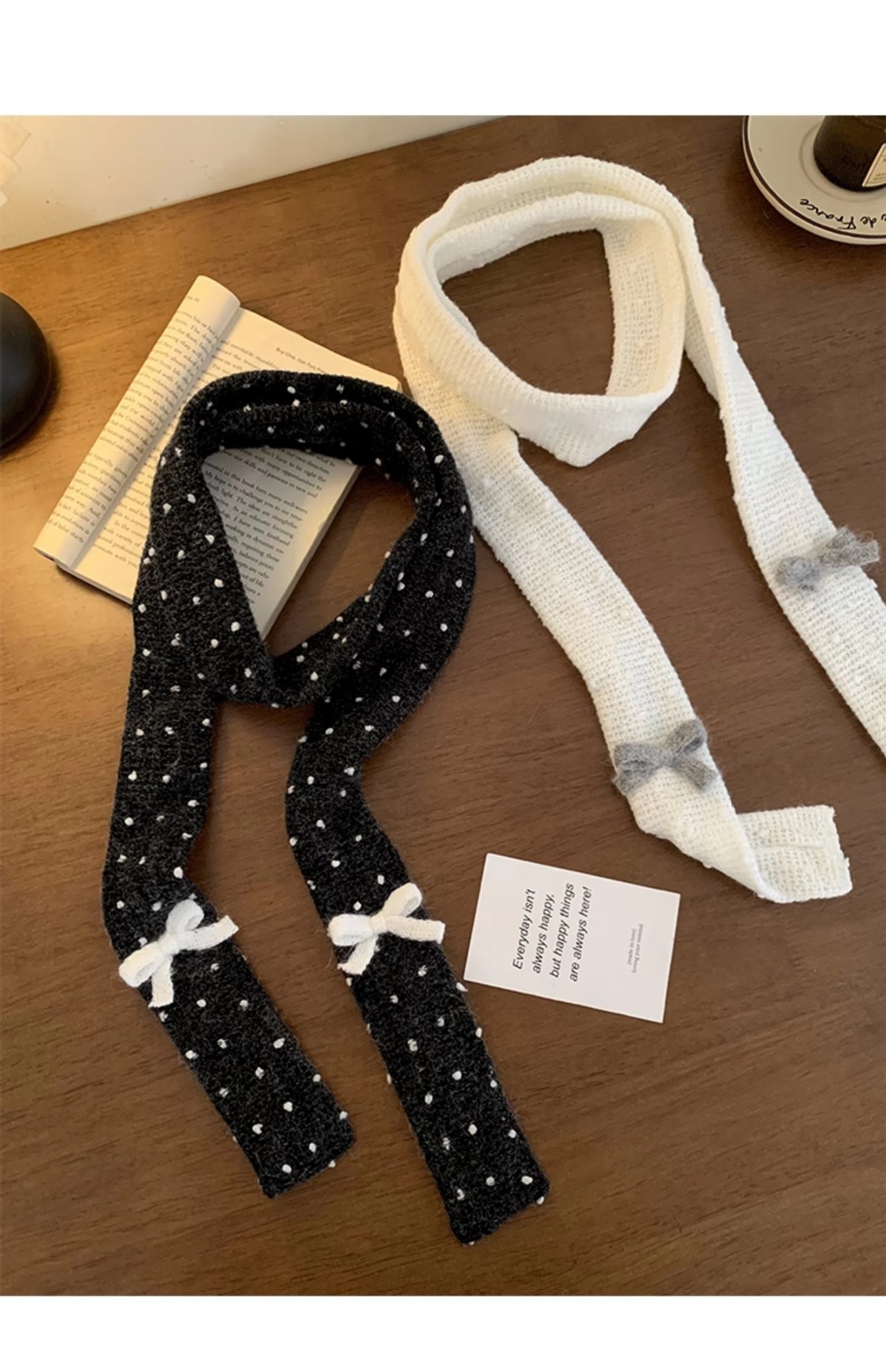 한국 스타일 달콤한 활 폴카 도트 스카프 여성의 가을과 겨울 빈티지 패션 올매치 울 목 보호 좁은 버전 얇은 스카프