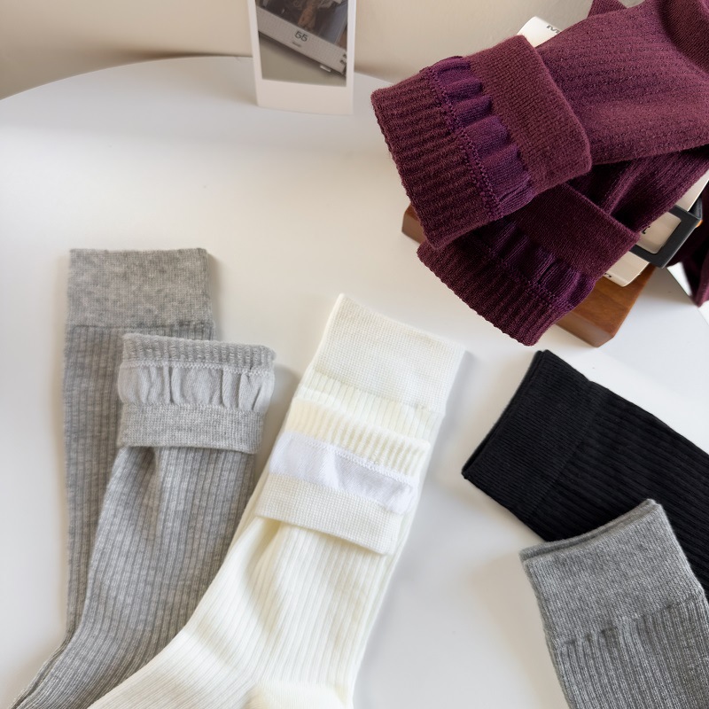 Ankola 빨간색 양말 가을과 겨울 여성 양말 튜브 면화 긴 튜브 스타킹 흑백 회색 일본 풀 풀 풀 양말 도매