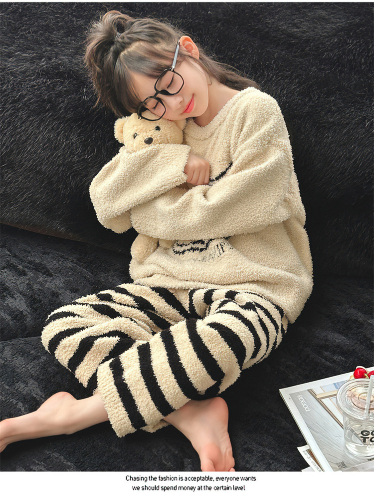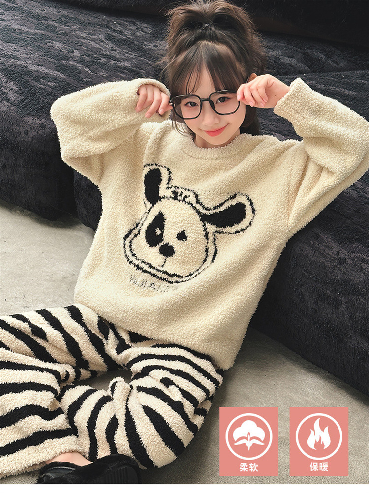 여아용 반벨벳 홈웨어 잠옷 세트 2025 신상 큰 아이들용 한국 스타일 만화 플러스 벨벳 보온 투피스 겨울 세트스토어 가기
