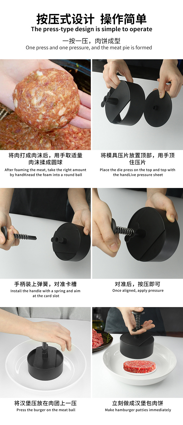 국경 간 새로운 ABS 플라스틱 햄버거 고기 프레스 주방 라운드 프레스 고기 프레스 가정용 고기 파이 프레스 금형