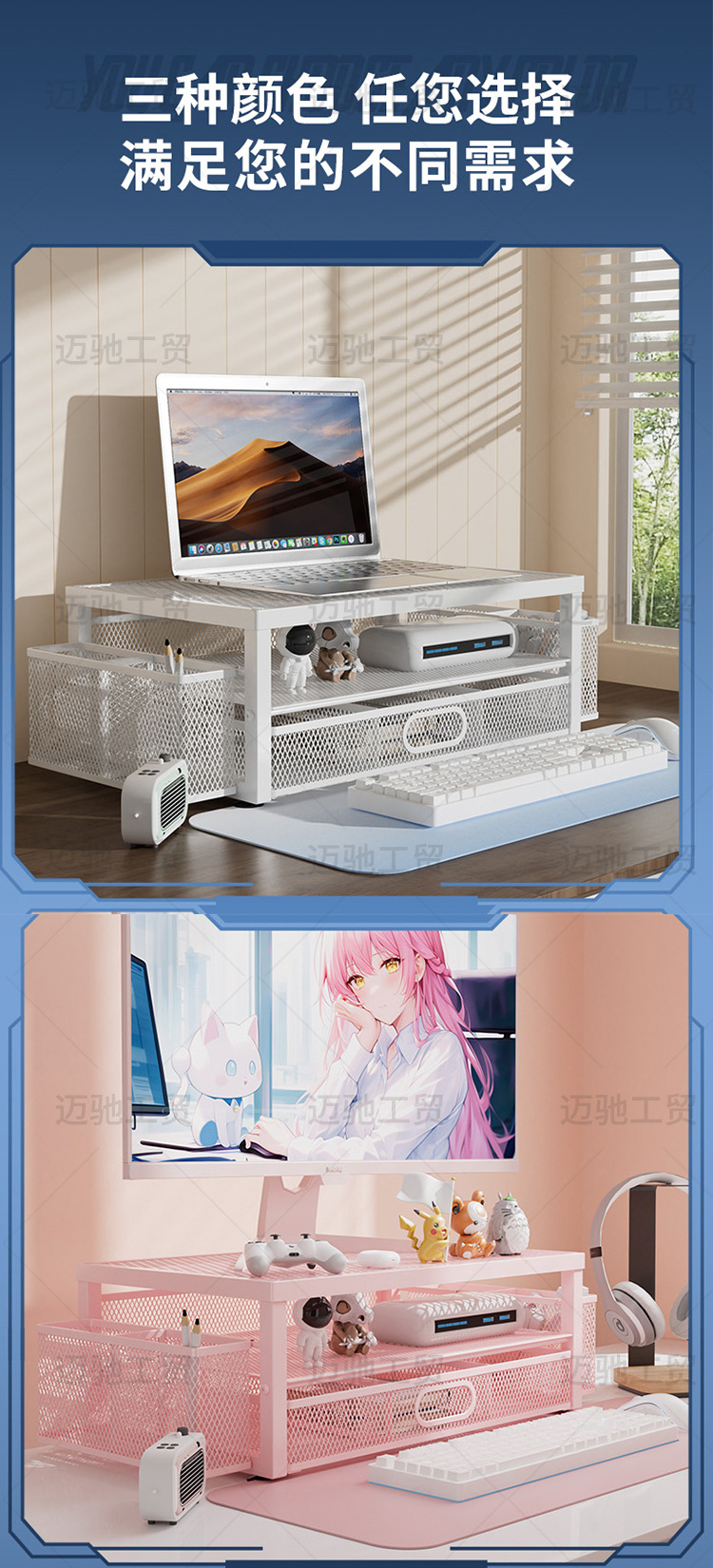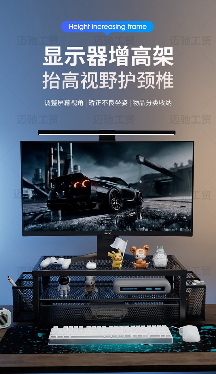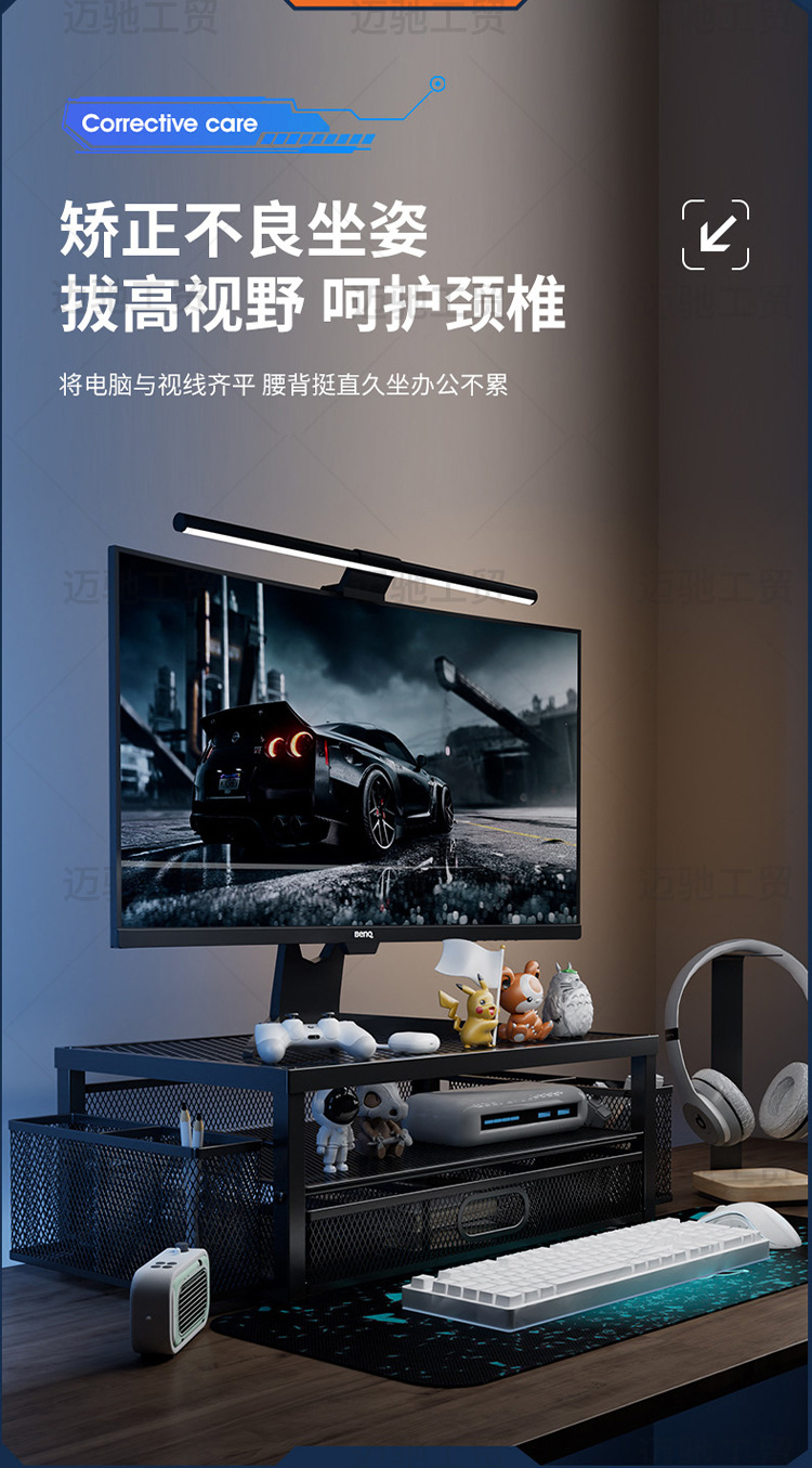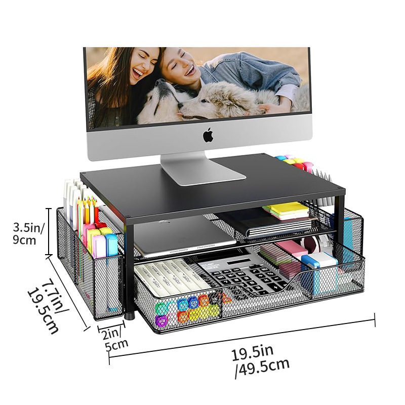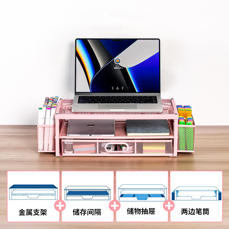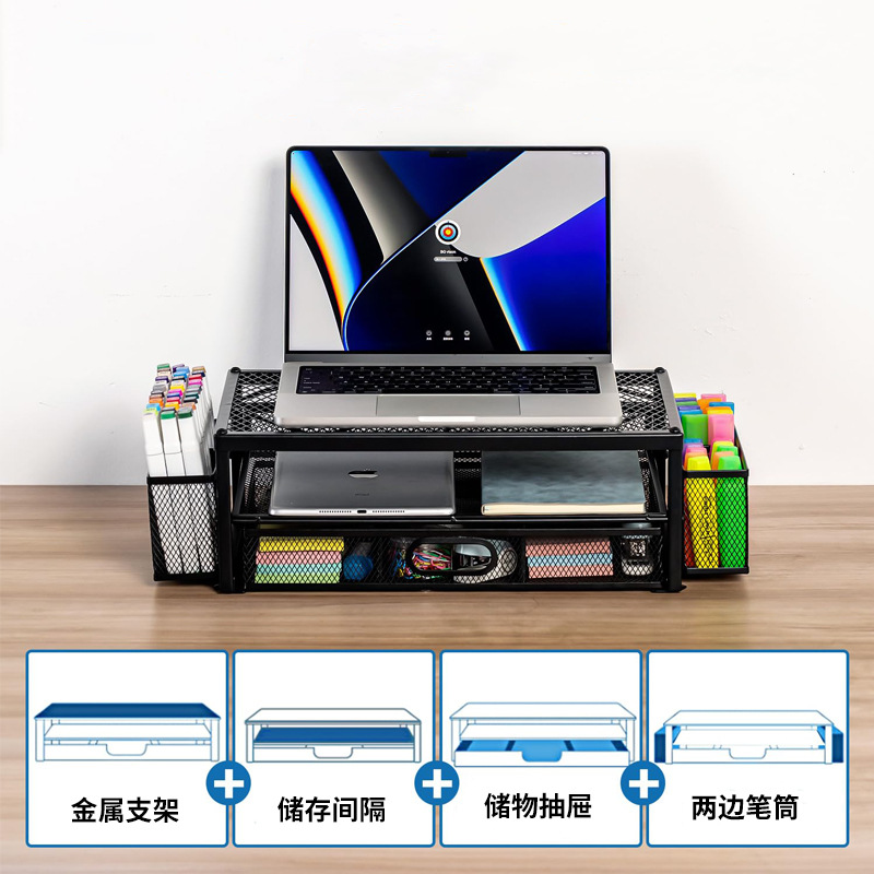 컴퓨터 높이 조절 스탠드 사무실 다층 데스크탑 모니터 스탠드 높이 조절 베이스 데스크탑 서랍 수납 선반스토어 가기