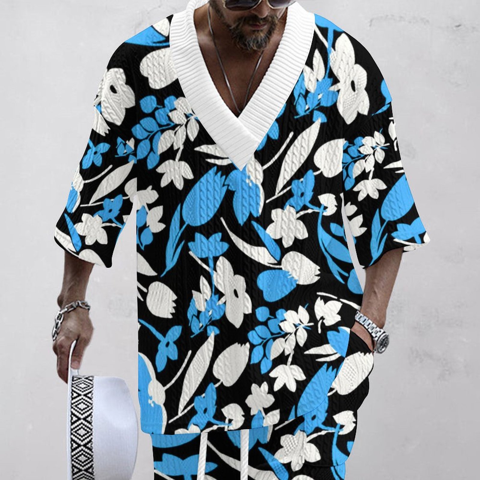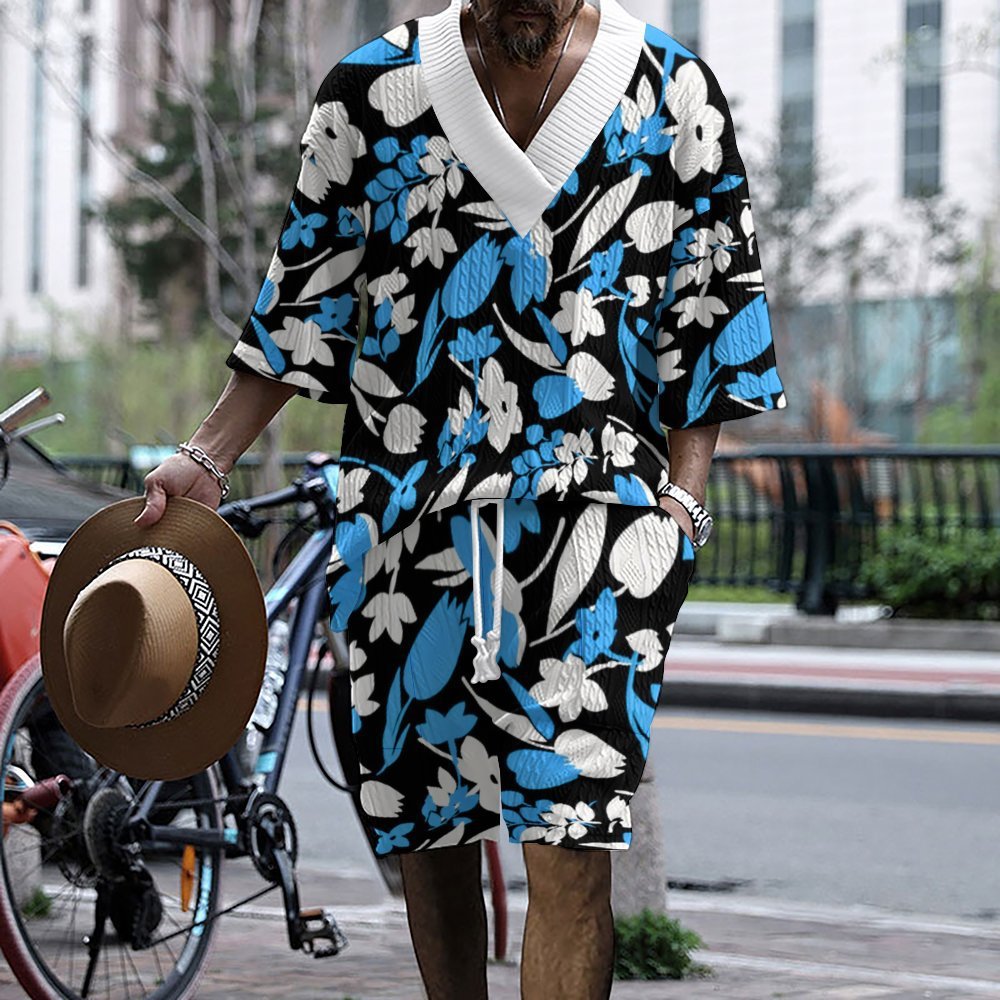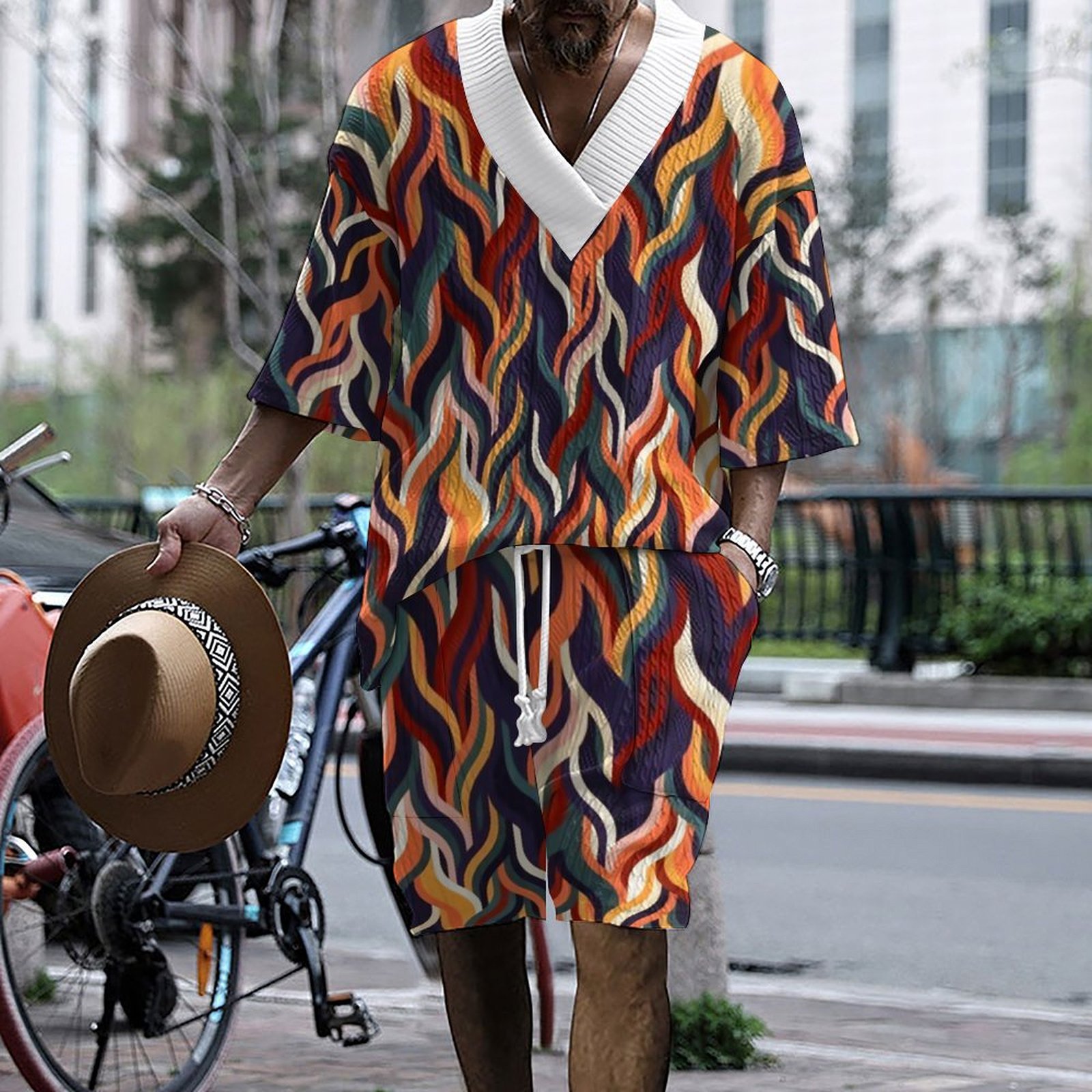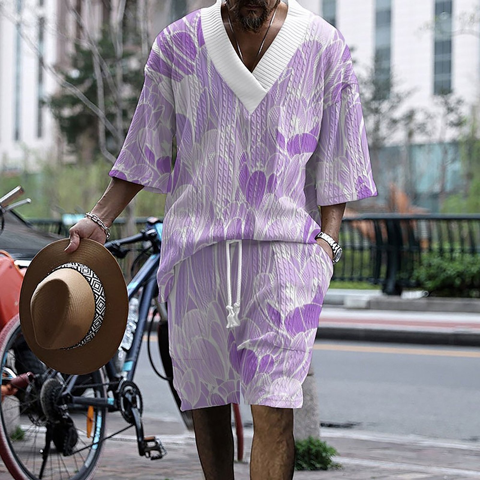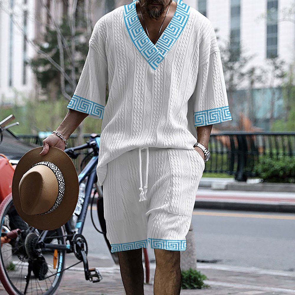 국경 간 아마존 트렌디 기술 격자 무늬 반팔 남성 세트 특대 어깨 해변 느슨한 여름