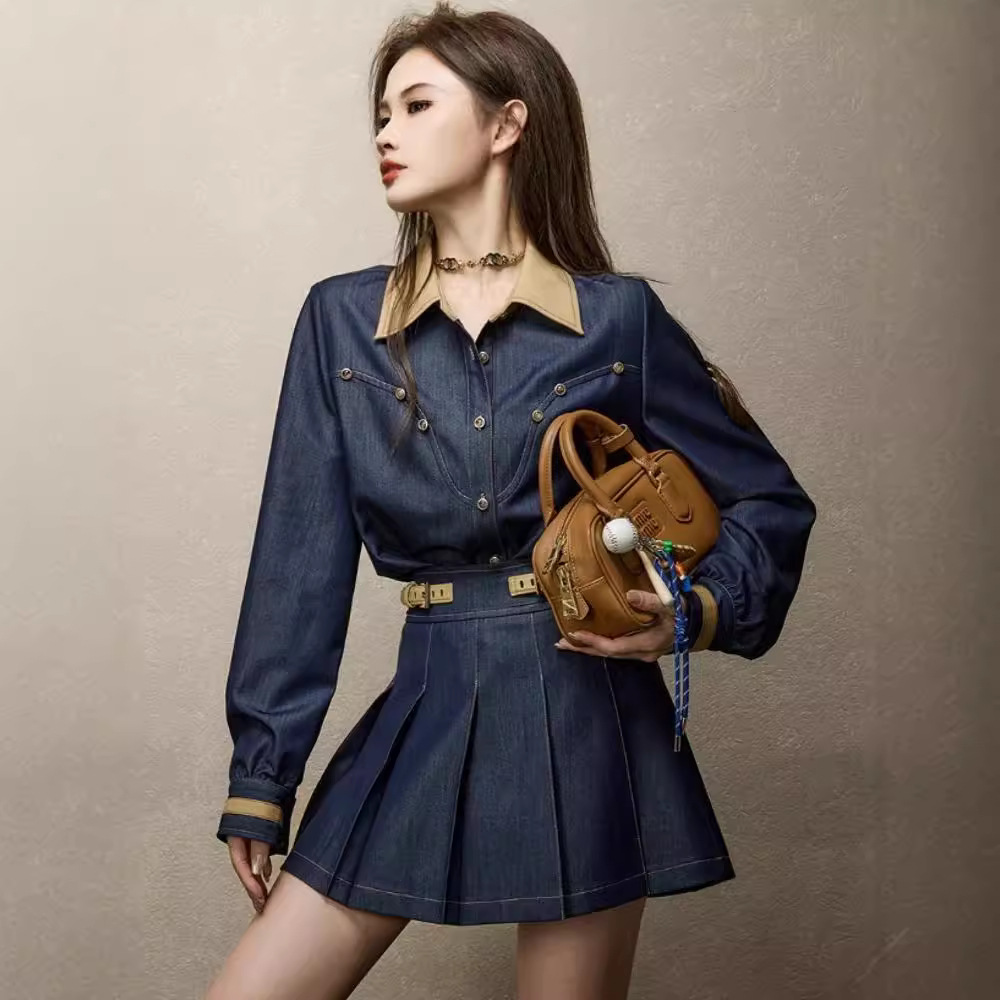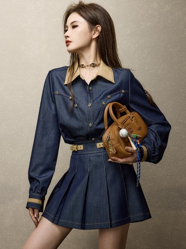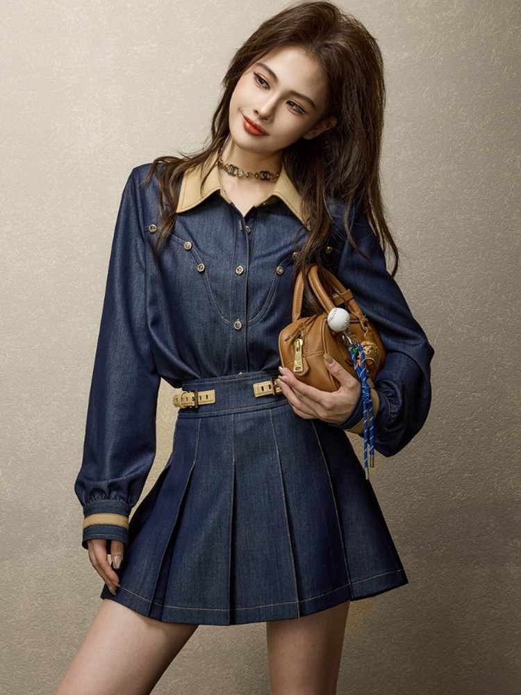 하이 엔드 디자인 올 매치 슬리밍 주름 치마 짧은 치마 가을과 겨울 새로운 청소년 소녀 데님 스커트 트렌디 한 짧은 치마스토어 가기
