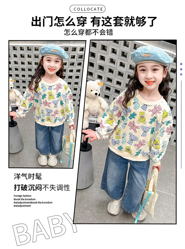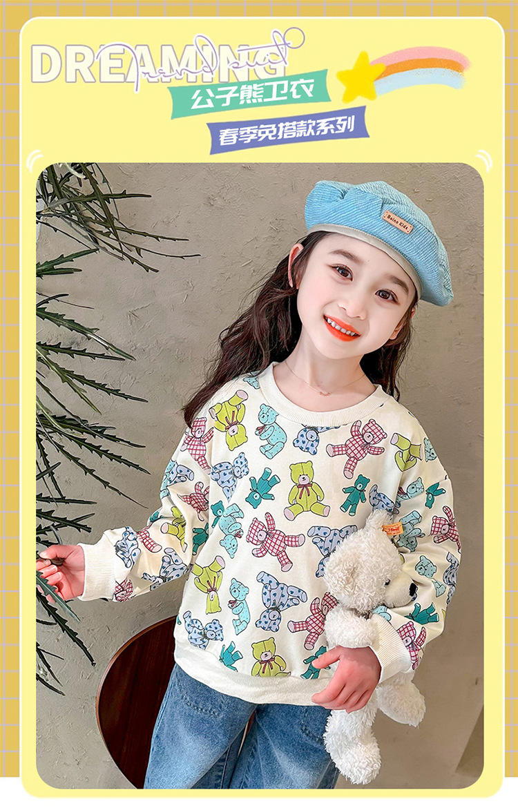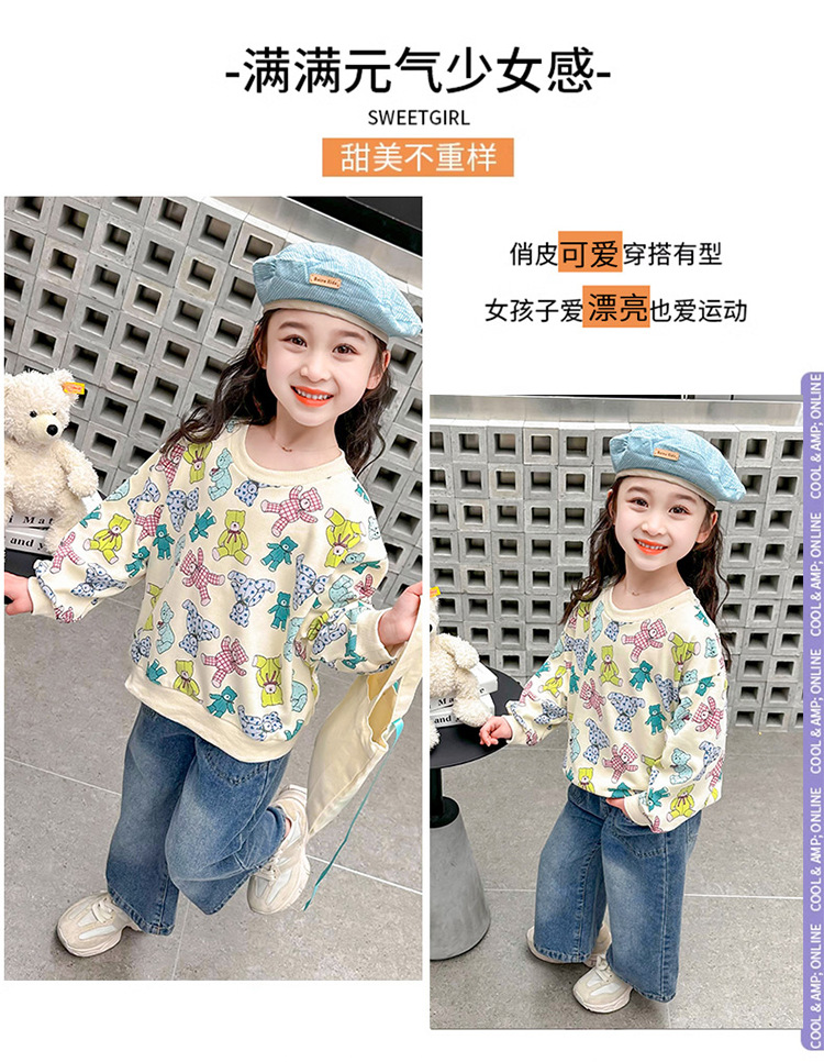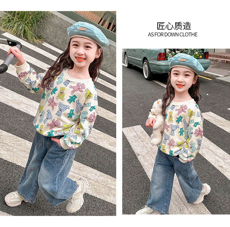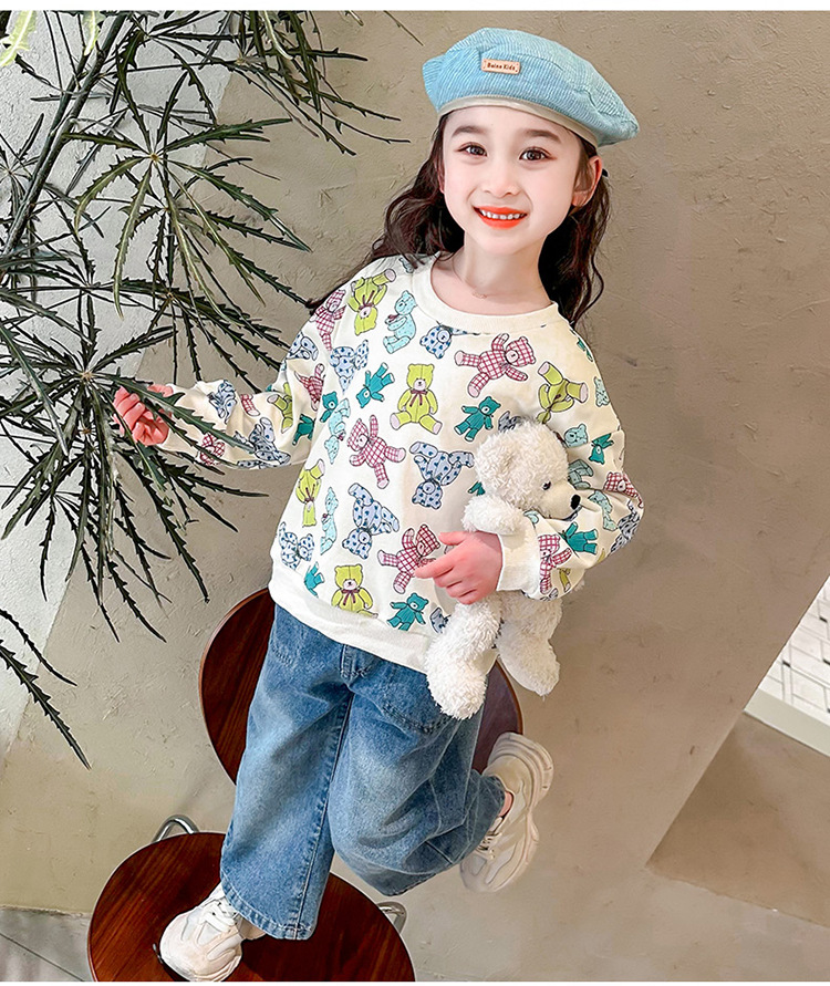 2024 년 아동복 여성용 보물 가을 가을 새 아기 소녀의 운동복베이스 만화 풀오버 베어 긴 소매 탑스토어 가기